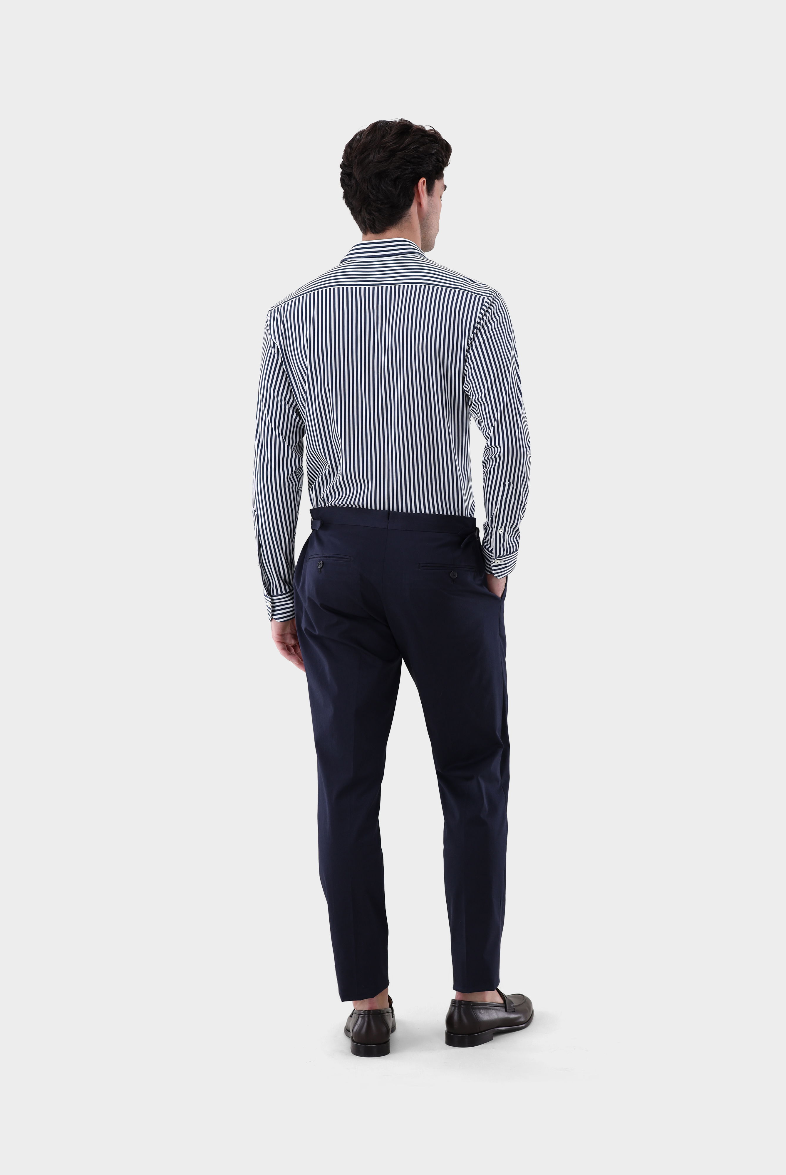 Look aus Jerseyhemd aus Schweizer Baumwolle mit Streifendruck