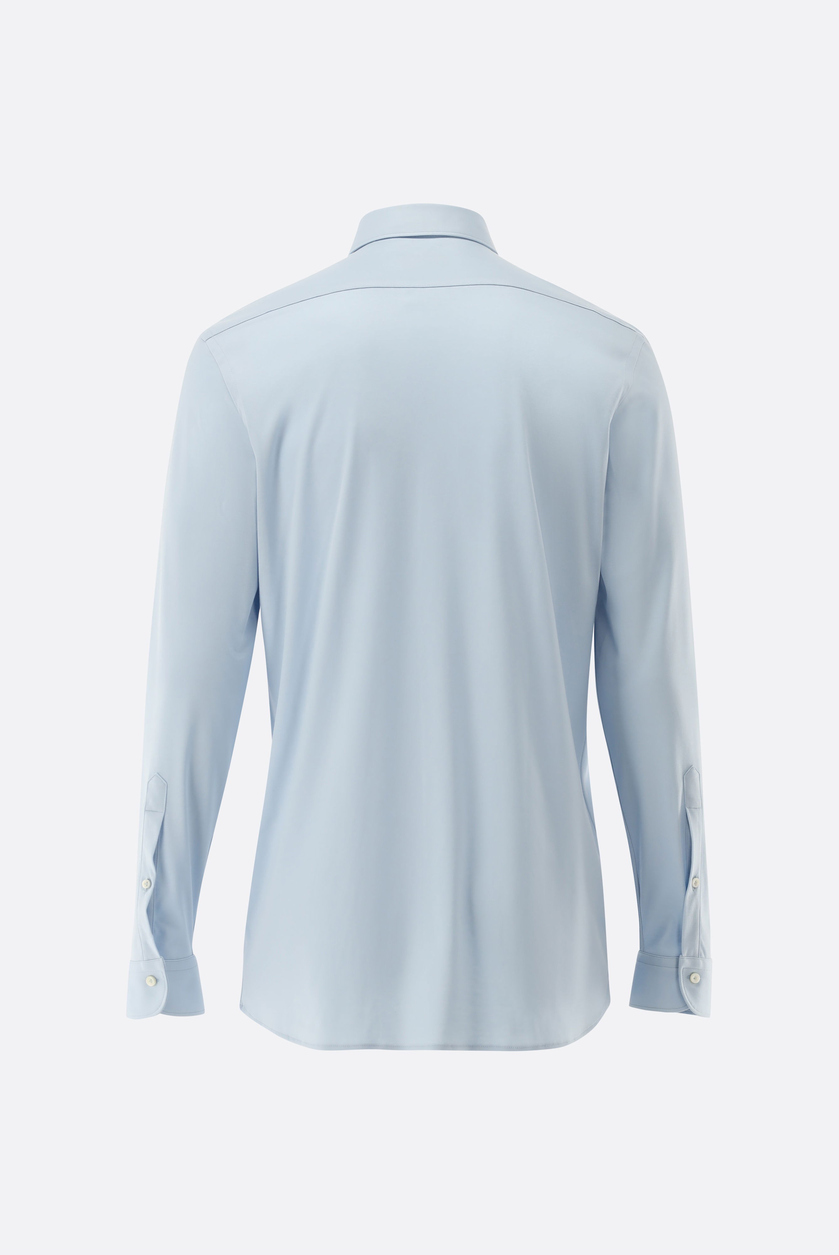 Hemd aus Swiss Cotton Jersey. Die Swiss Cotton Jersey Qualität, gefertigt aus besonders hochwertigem und weichem Interlock-Jersey mit Natural-Stretch, sorgt für ein luxuriöses Tragegefühl. Die glänzende Optik, eine französische Knopfleiste und Perlmuttknöpfe vollenden den edlen Look.