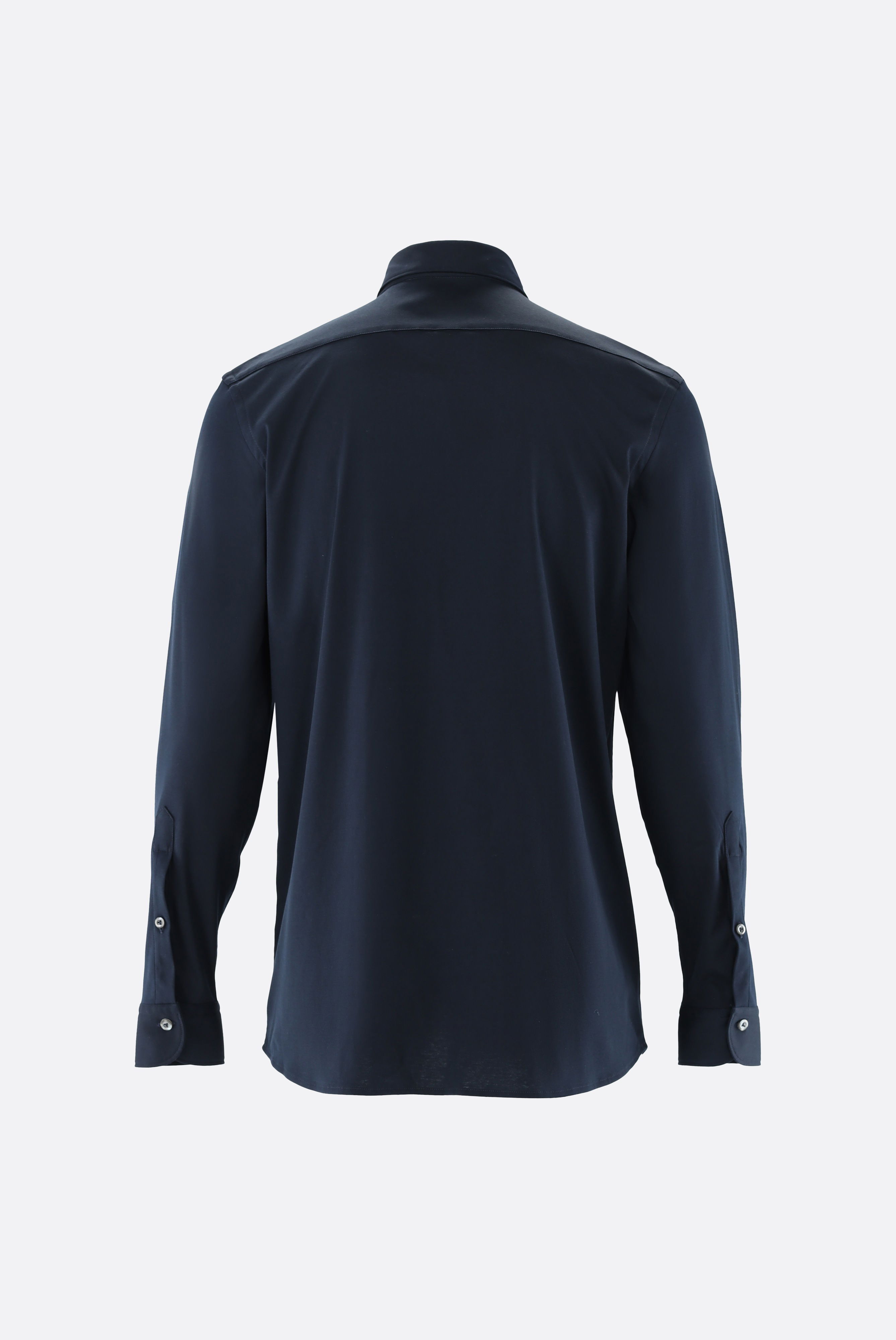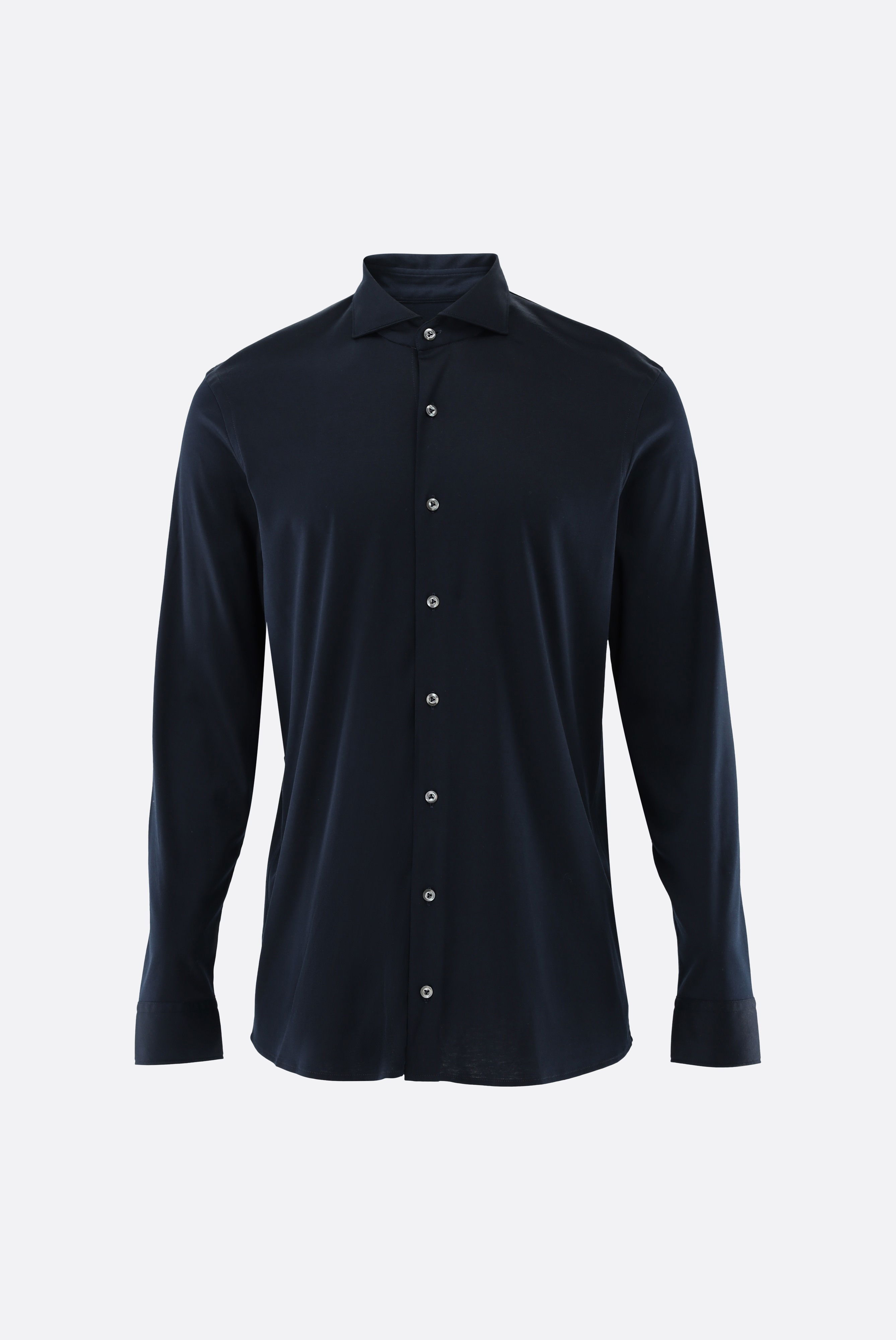Hemd aus Swiss Cotton Jersey. Die Swiss Cotton Jersey Qualität, gefertigt aus besonders hochwertigem und weichem Interlock-Jersey mit Natural-Stretch, sorgt für ein luxuriöses Tragegefühl. Die glänzende Optik, eine französische Knopfleiste und Perlmuttknöpfe vollenden den edlen Look.