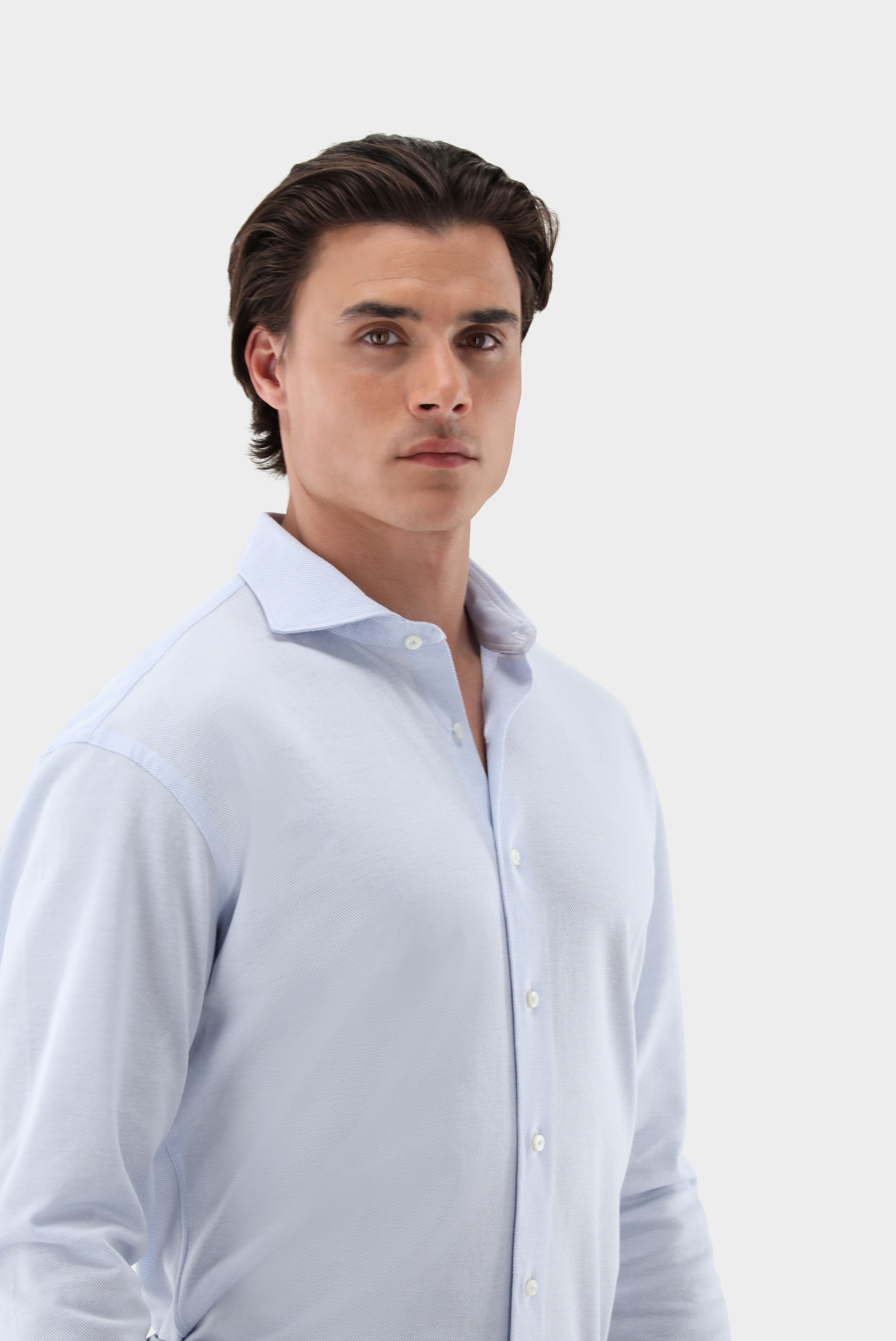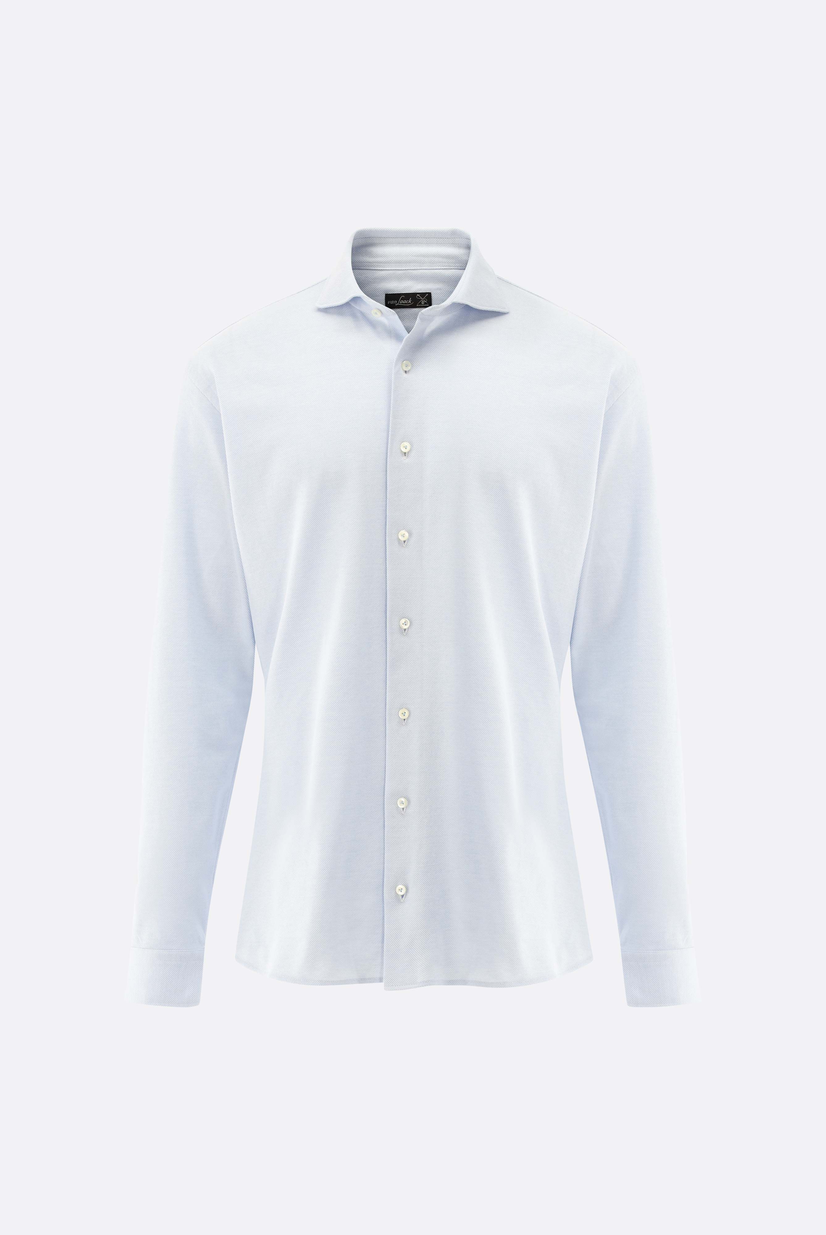Das Hemd aus Swiss Cotton Jersey bietet höchsten Tragekomfort und einen luxuriösen Look. Hergestellt aus hochwertigem und weichem Jersey mit Piqué Struktur mit Natural-Stretch sorgt die Swiss Cotton Jersey Qualität für ein angenehmes Tragegefühl. Die französische Knopfleiste und die Perlmuttknöpfe verleihen dem Hemd einen edlen Touch.