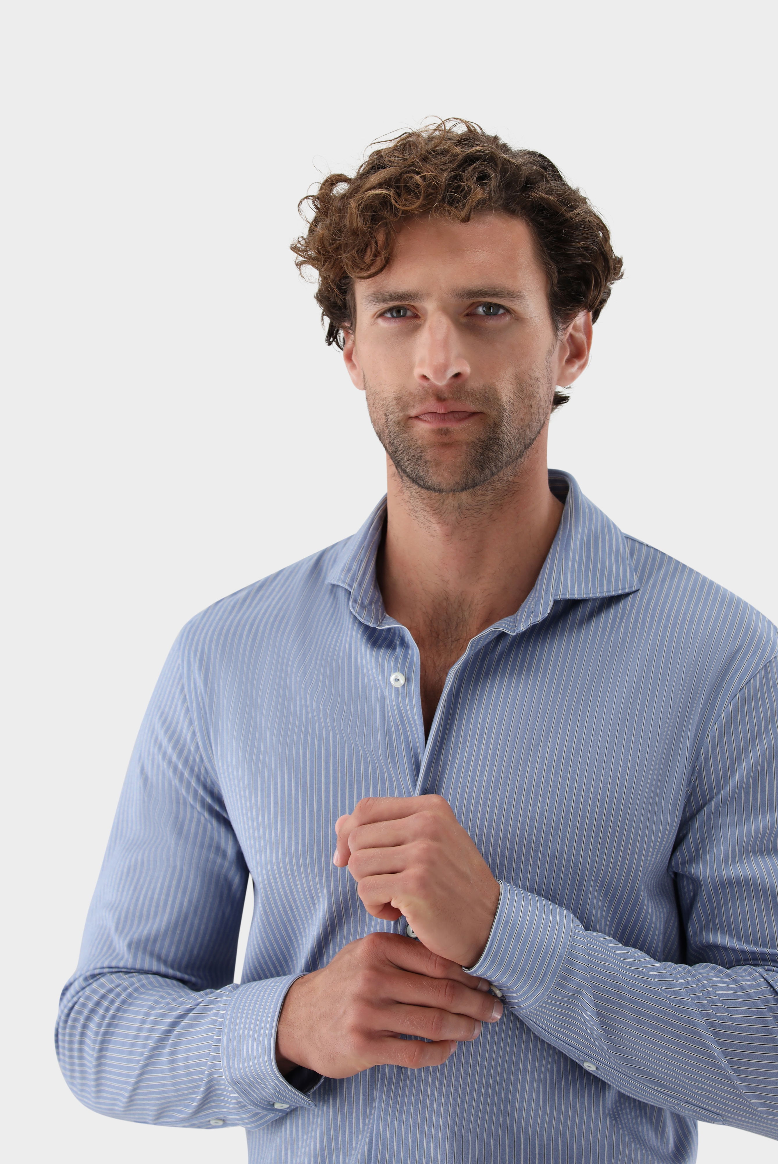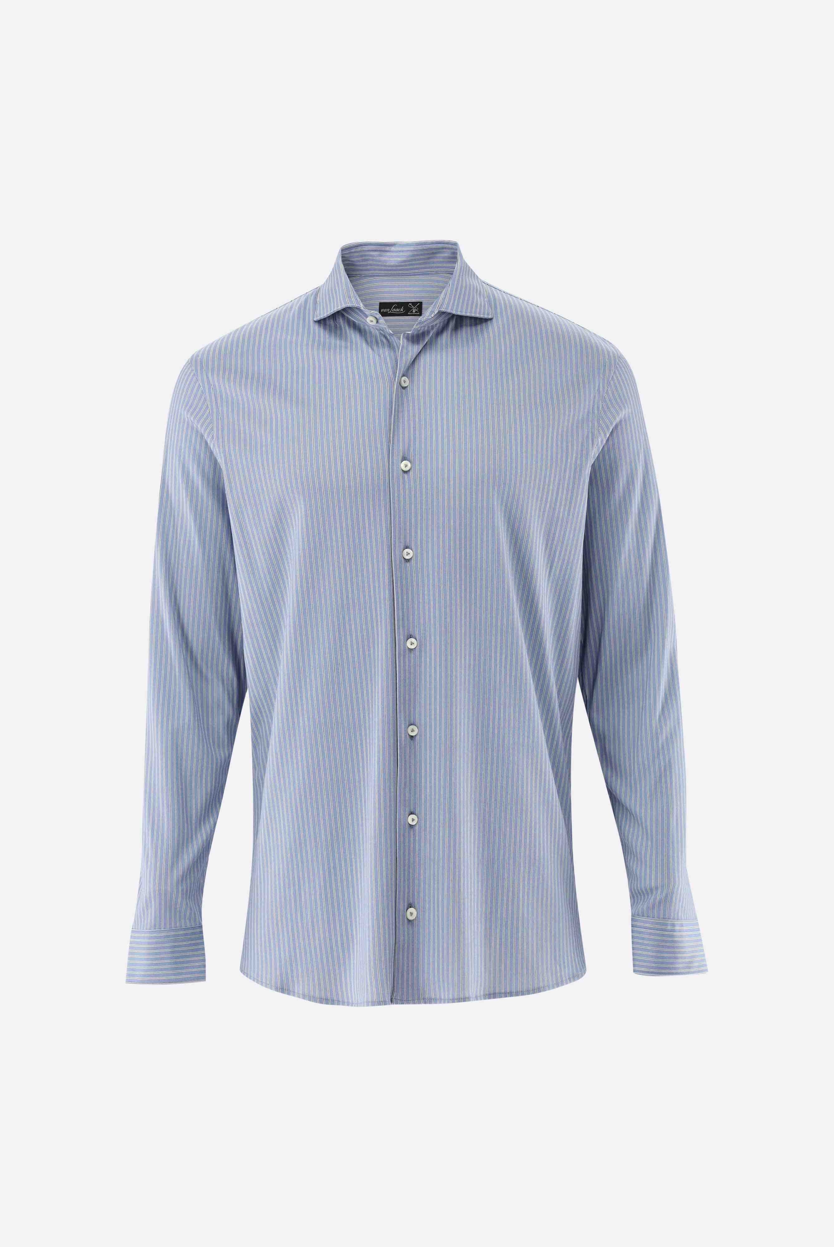 Das Hemd aus Swiss Cotton Jersey bietet höchsten Tragekomfort und einen luxuriösen Look. Hergestellt aus hochwertigem und weichem Interlock-Jersey mit Natural-Stretch sorgt die Swiss Cotton Jersey Qualität für ein angenehmes Tragegefühl. Die glänzende Optik, der edle Streifen-Druck, die französische Knopfleiste und die Perlmuttknöpfe verleihen dem Hemd einen edlen Touch. Die Jersey Qualität gibt dem Hemd eine natürliche Dehnbarkeit trotz reiner Baumwolle.