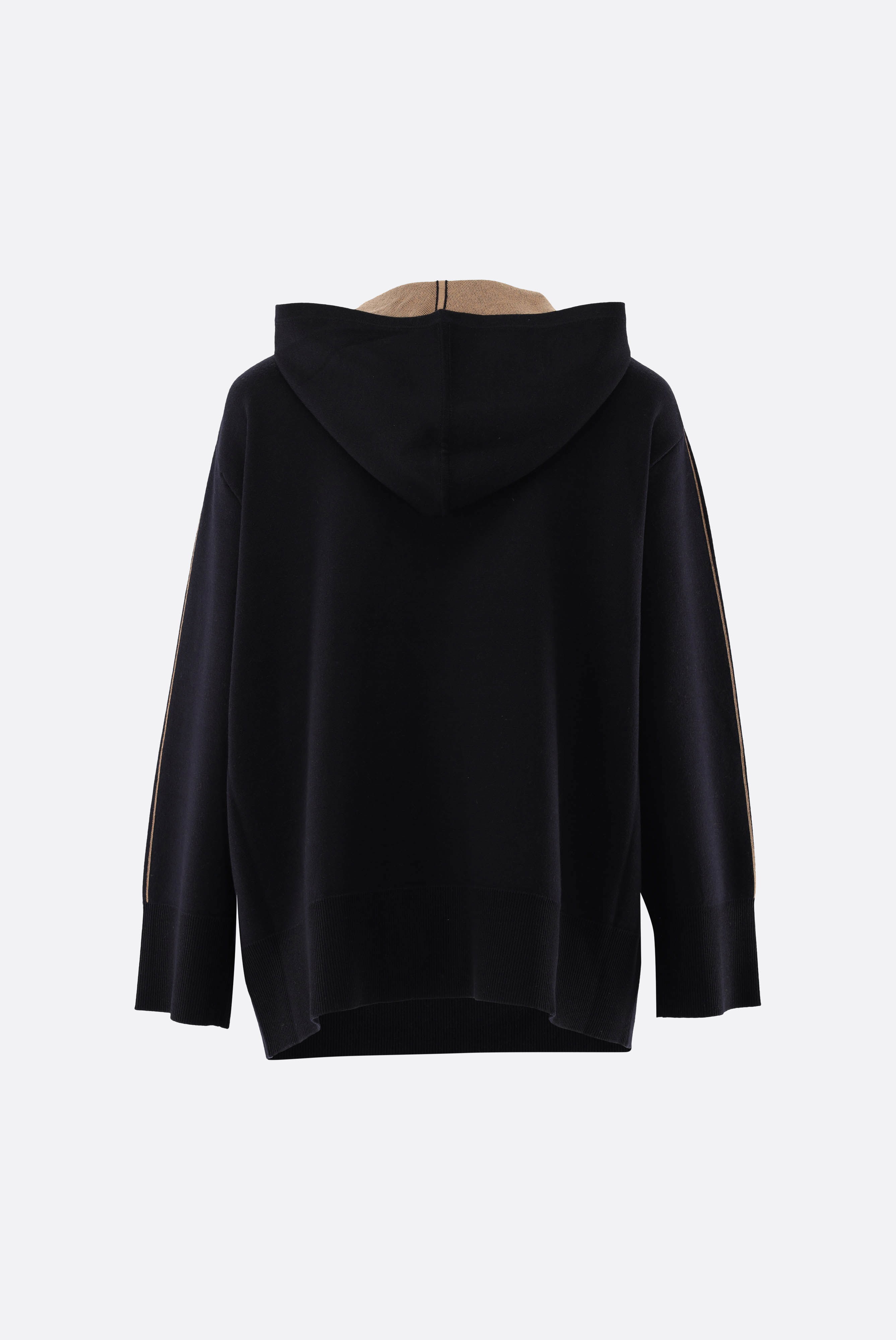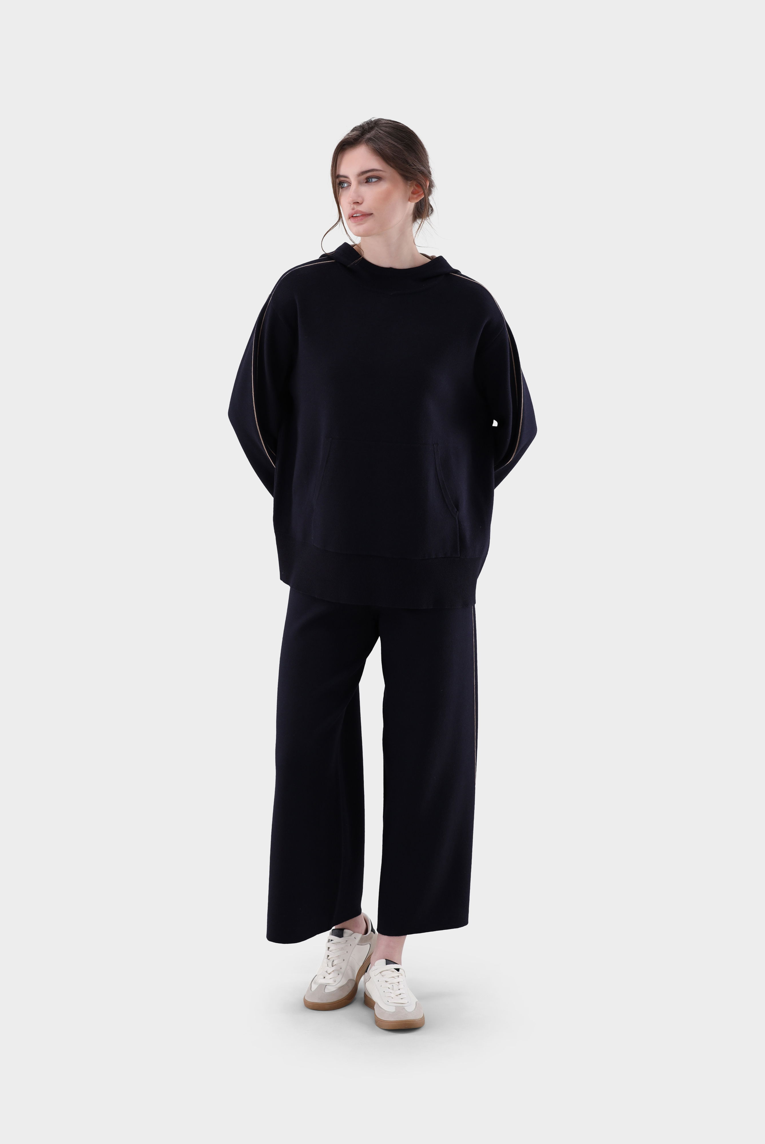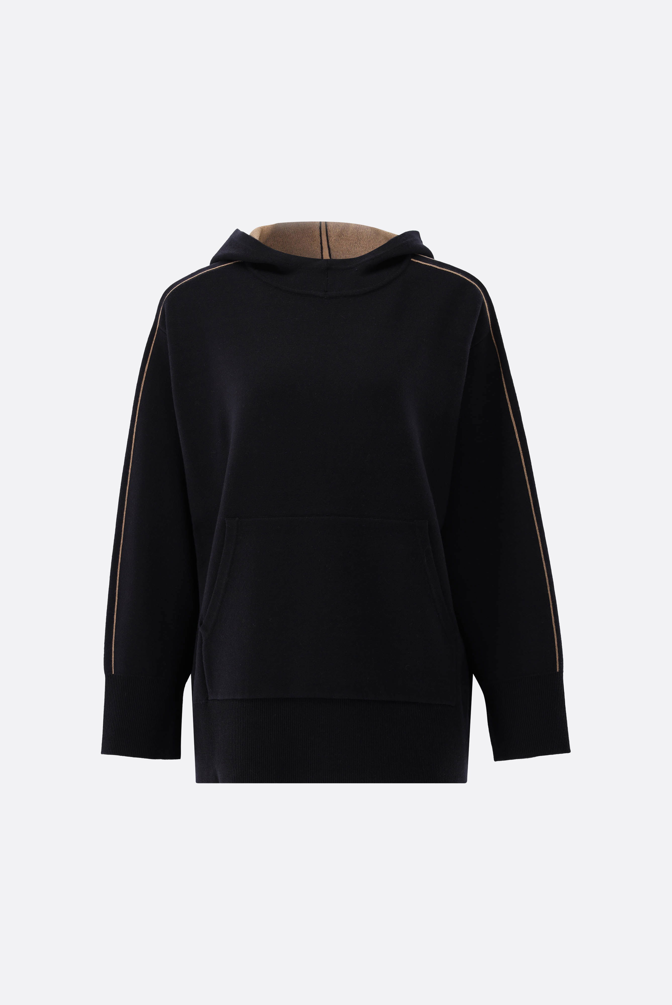 Dieser Kapuzenpullover überzeugt mit lockerer Passform und modernem Design. Überschnittene Schultern und lange Ärmel mit markanten Kontraststreifen verleihen dem Modell eine sportive Note. Die praktische Beuteltasche vorne unterstreicht den lässigen Look. Gefertigt aus einer hochwertigen Mischung aus Merinowolle, Seide und Pima-Baumwolle bietet der Doppelstrick außergewöhnliche Weichheit, Strapazierfähigkeit und hohen Tragekomfort. Ein vielseitiges Essential für stilvolle Freizeit- und Alltagsoutfits.