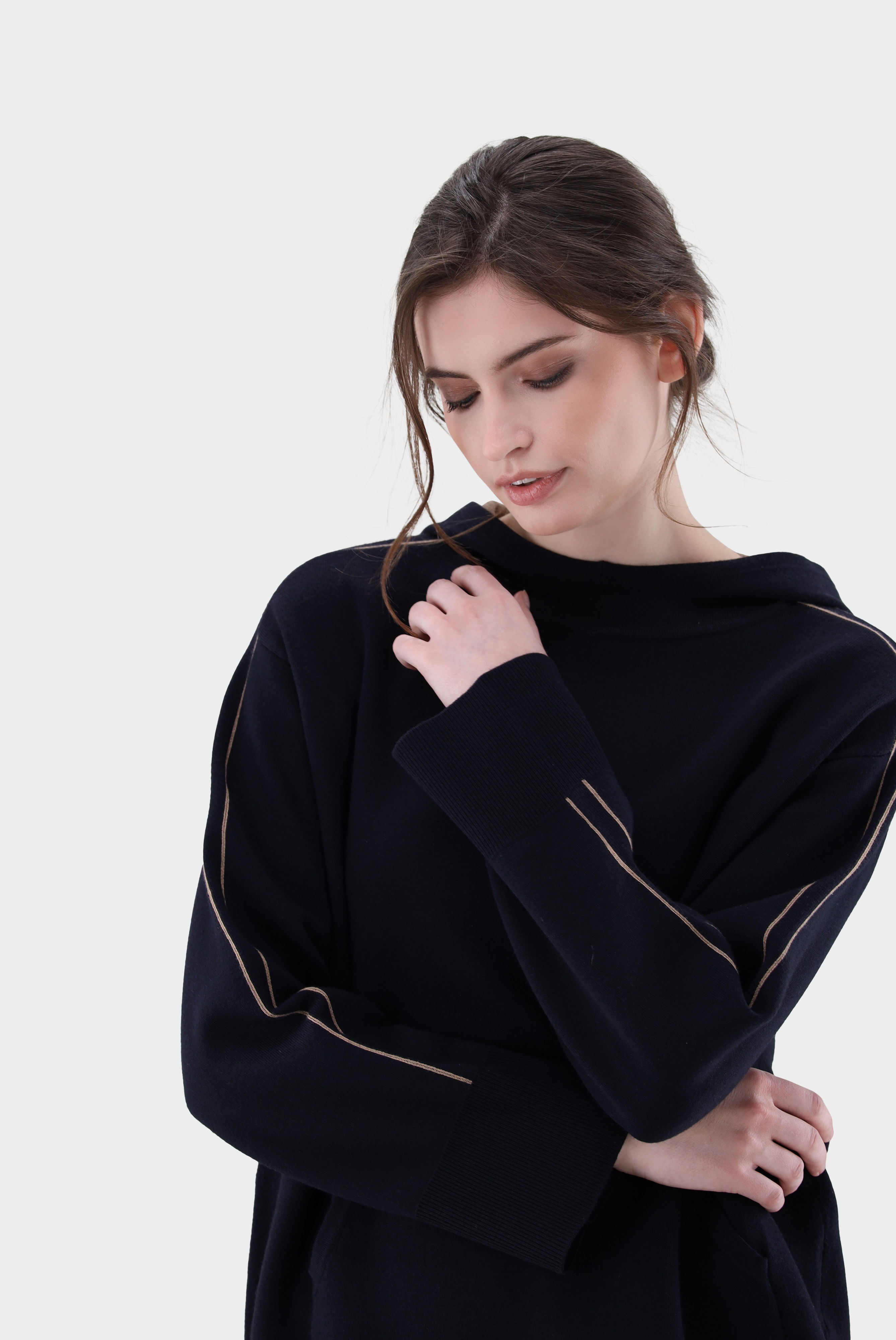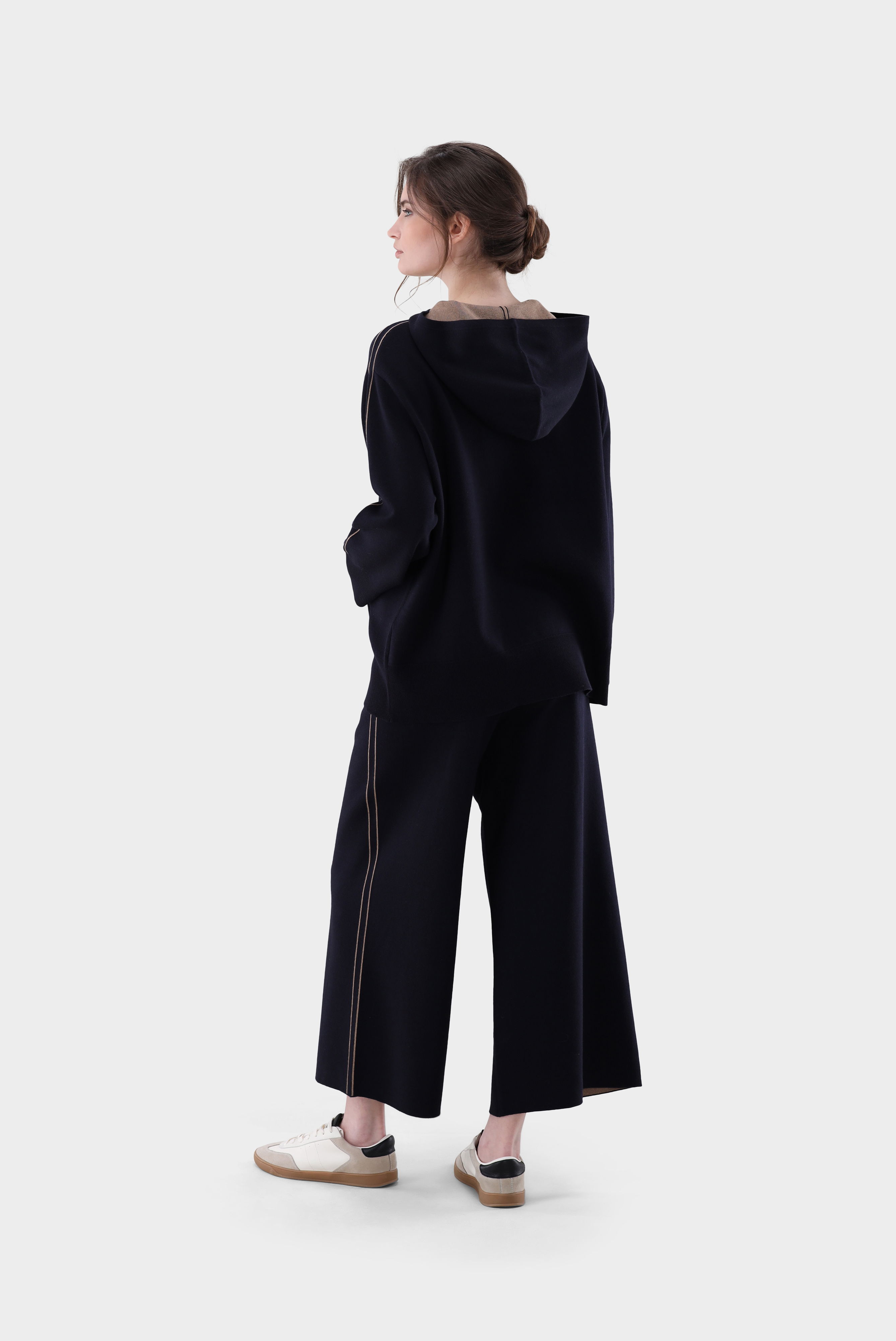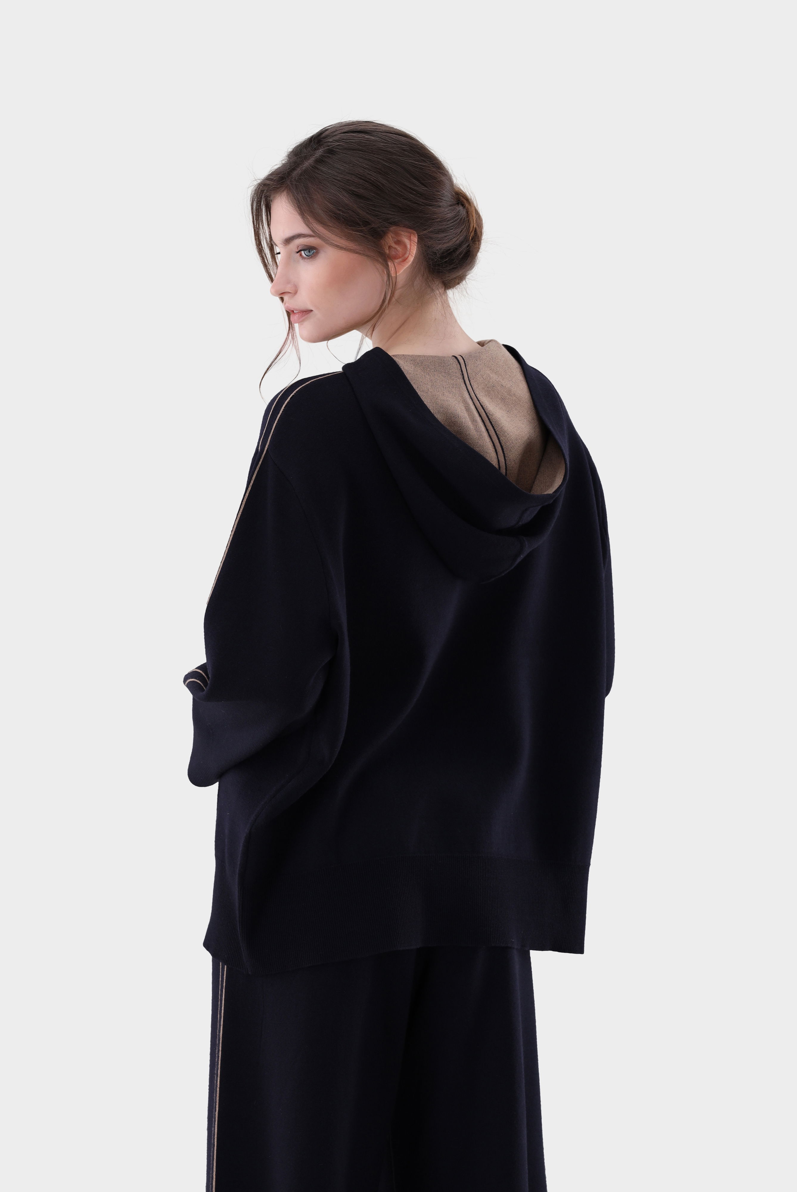 Dieser Kapuzenpullover überzeugt mit lockerer Passform und modernem Design. Überschnittene Schultern und lange Ärmel mit markanten Kontraststreifen verleihen dem Modell eine sportive Note. Die praktische Beuteltasche vorne unterstreicht den lässigen Look. Gefertigt aus einer hochwertigen Mischung aus Merinowolle, Seide und Pima-Baumwolle bietet der Doppelstrick außergewöhnliche Weichheit, Strapazierfähigkeit und hohen Tragekomfort. Ein vielseitiges Essential für stilvolle Freizeit- und Alltagsoutfits.