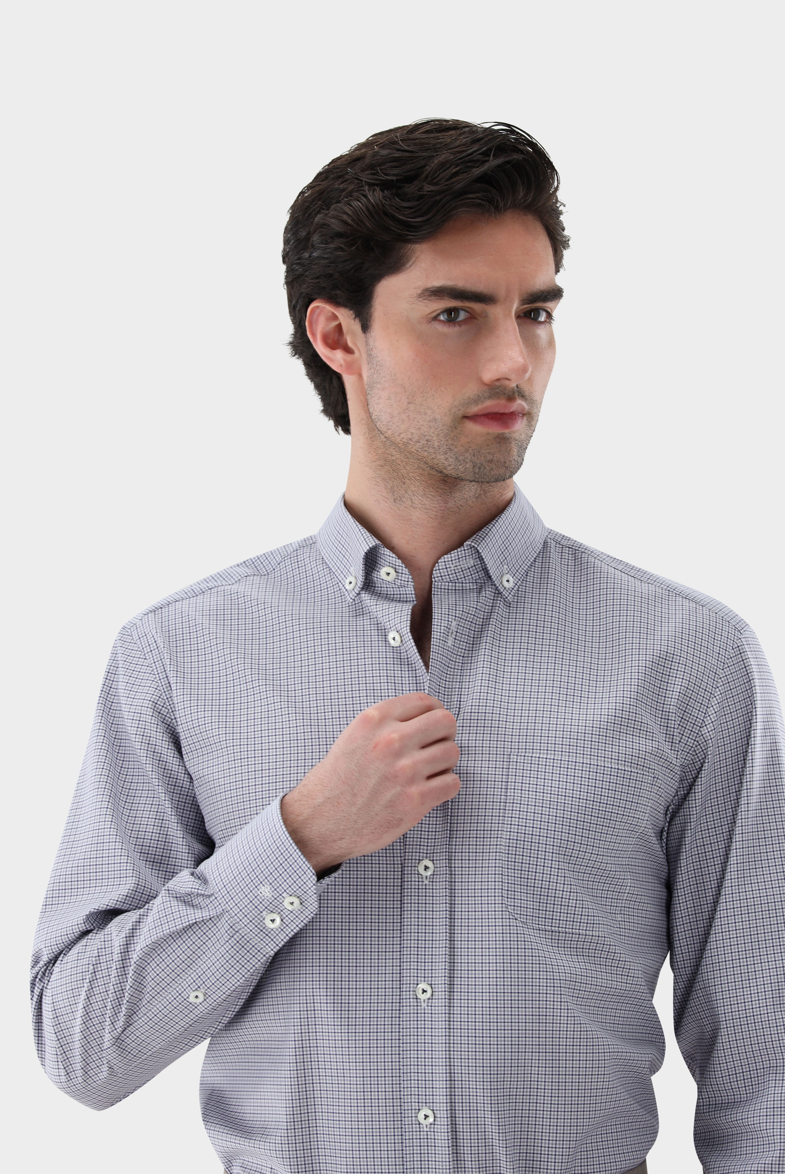 Dieses klein karierte Button-Down-Hemd aus feinem Baumwoll-Twill überzeugt durch seine hochwertige Verarbeitung und angenehmen Tragekomfort. Der Stoff ist Teil der „Perfect Look“-Kollektion und zeichnet sich dadurch aus, dass er kaum knittert und sich durch Körperwärme zusätzlich glättet – für ein dauerhaft gepflegtes Erscheinungsbild. Die Comfort-Fit-Passform sorgt für Bewegungsfreiheit, während edle Perlmuttknöpfe das Design stilvoll abrunden. Ideal für Business- und Smart-Casual-Looks.