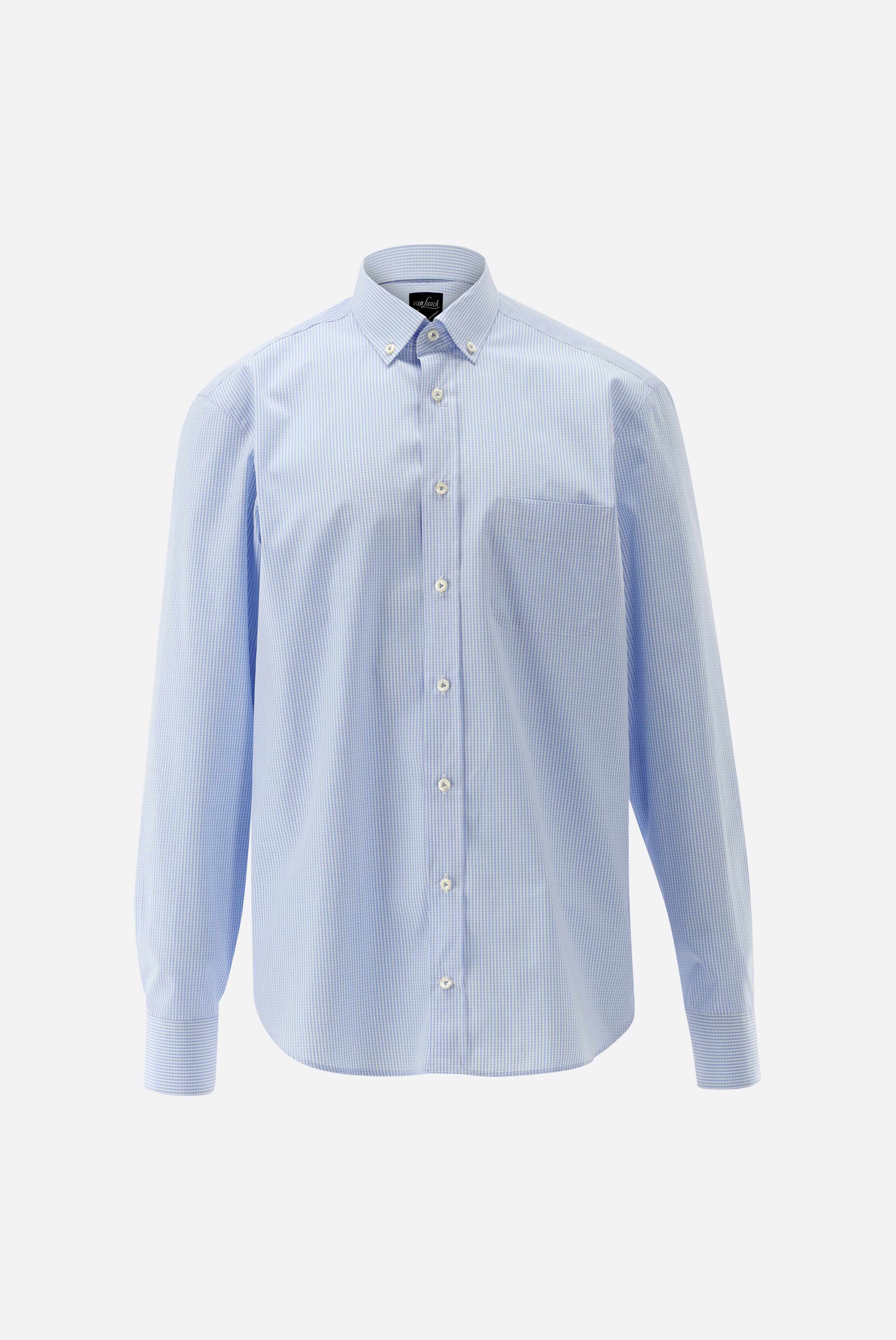 Vielseitiger kariertes Hemd für Events oder Büro. Mit Button-Down Kragen und Sportmanschette im körpernahen Tailor Fit. Hochwertige Baumwolle für maximalen Komfort ohne Pflegeaufwand. Perfekt für elegante Looks.