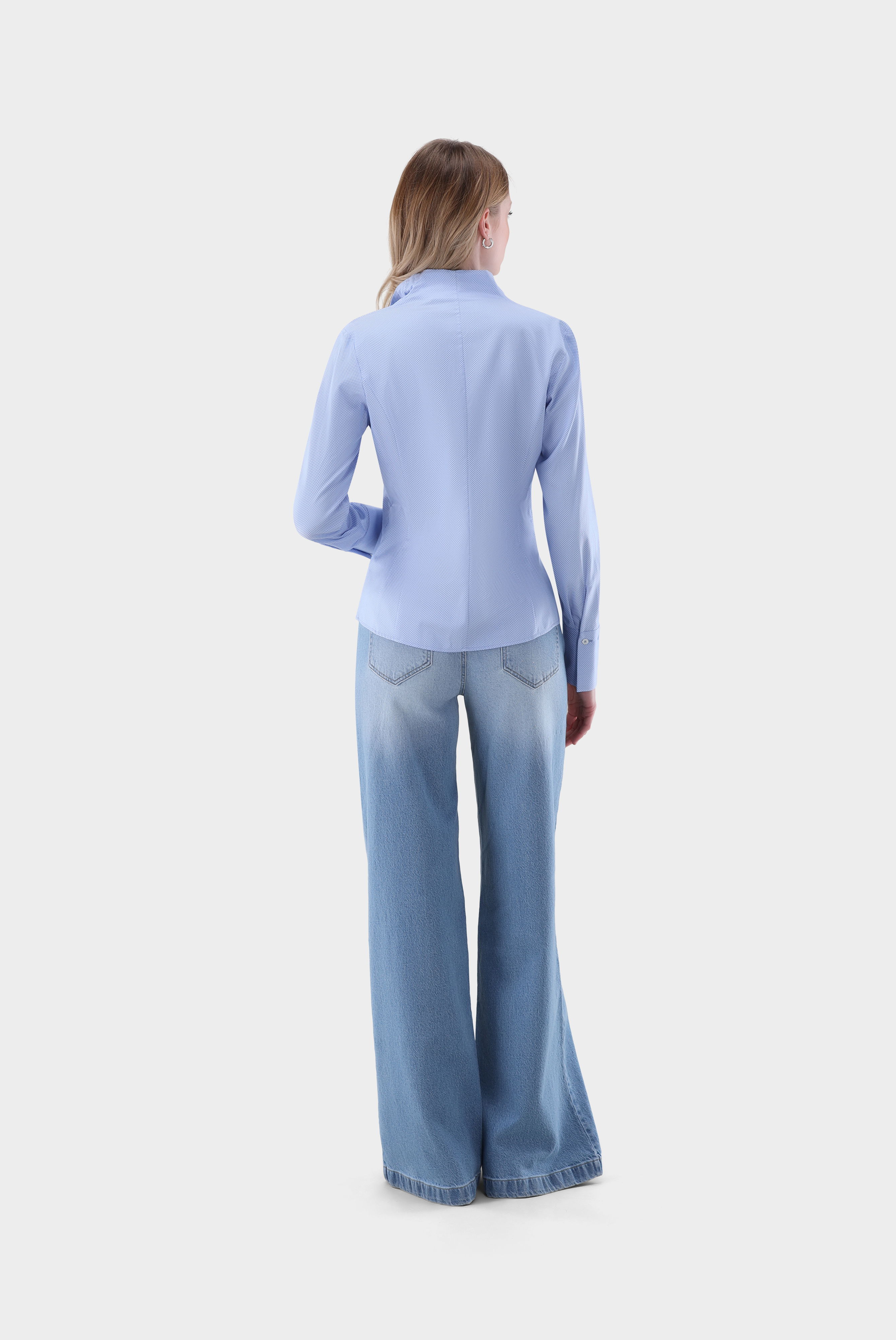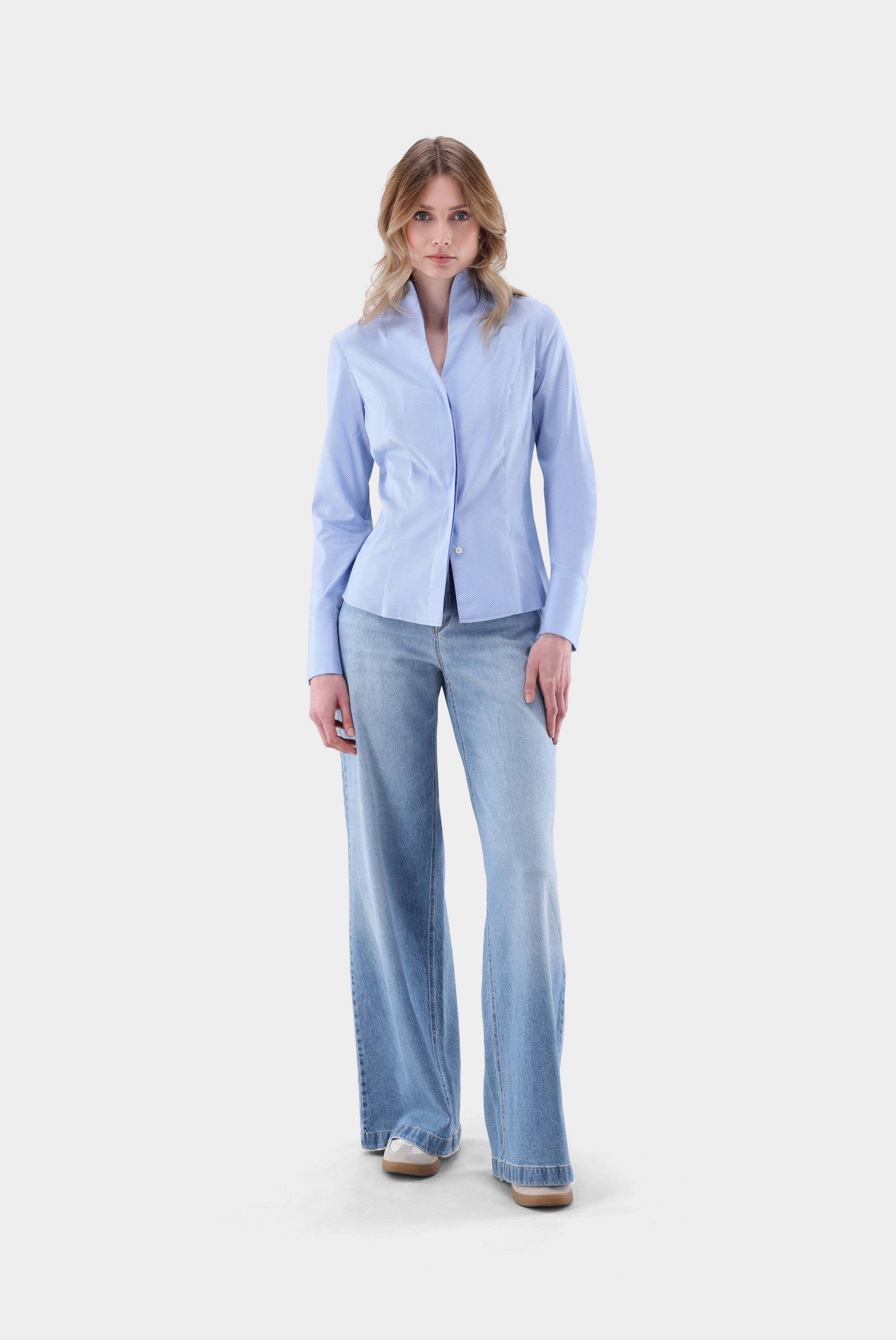 Look aus Kelchkragenbluse aus Popeline