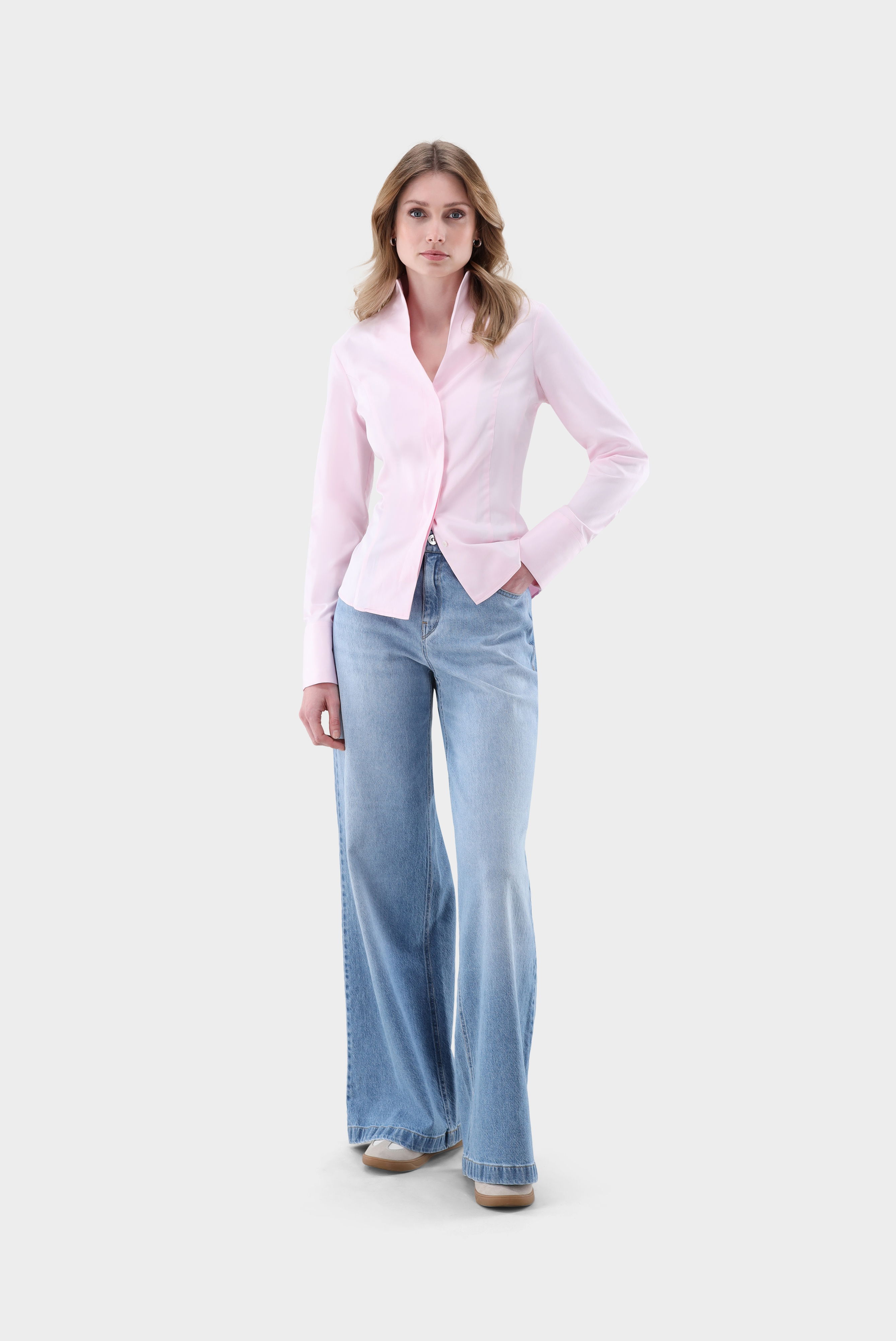 Look aus Kelchkragenbluse aus Twill