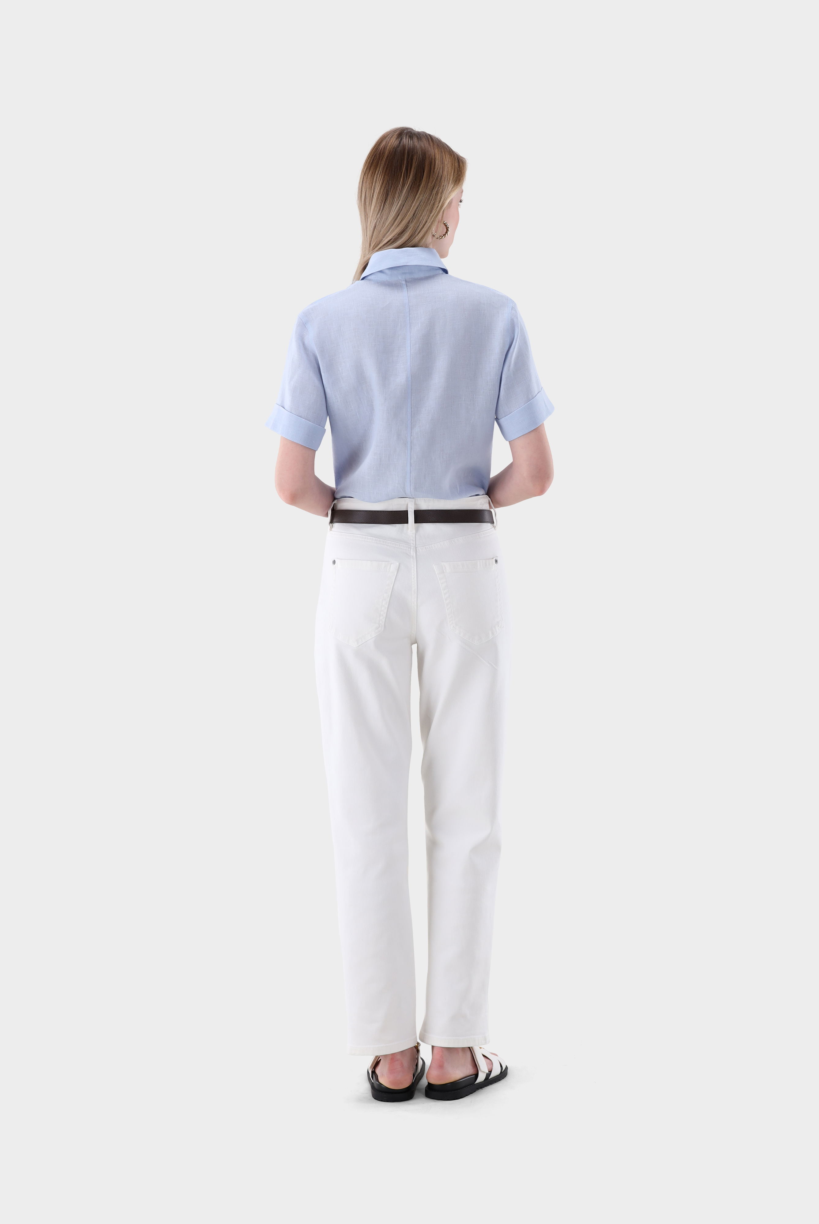 Look aus Kurzarm Hemdbluse aus Leinen Boxy Fit
