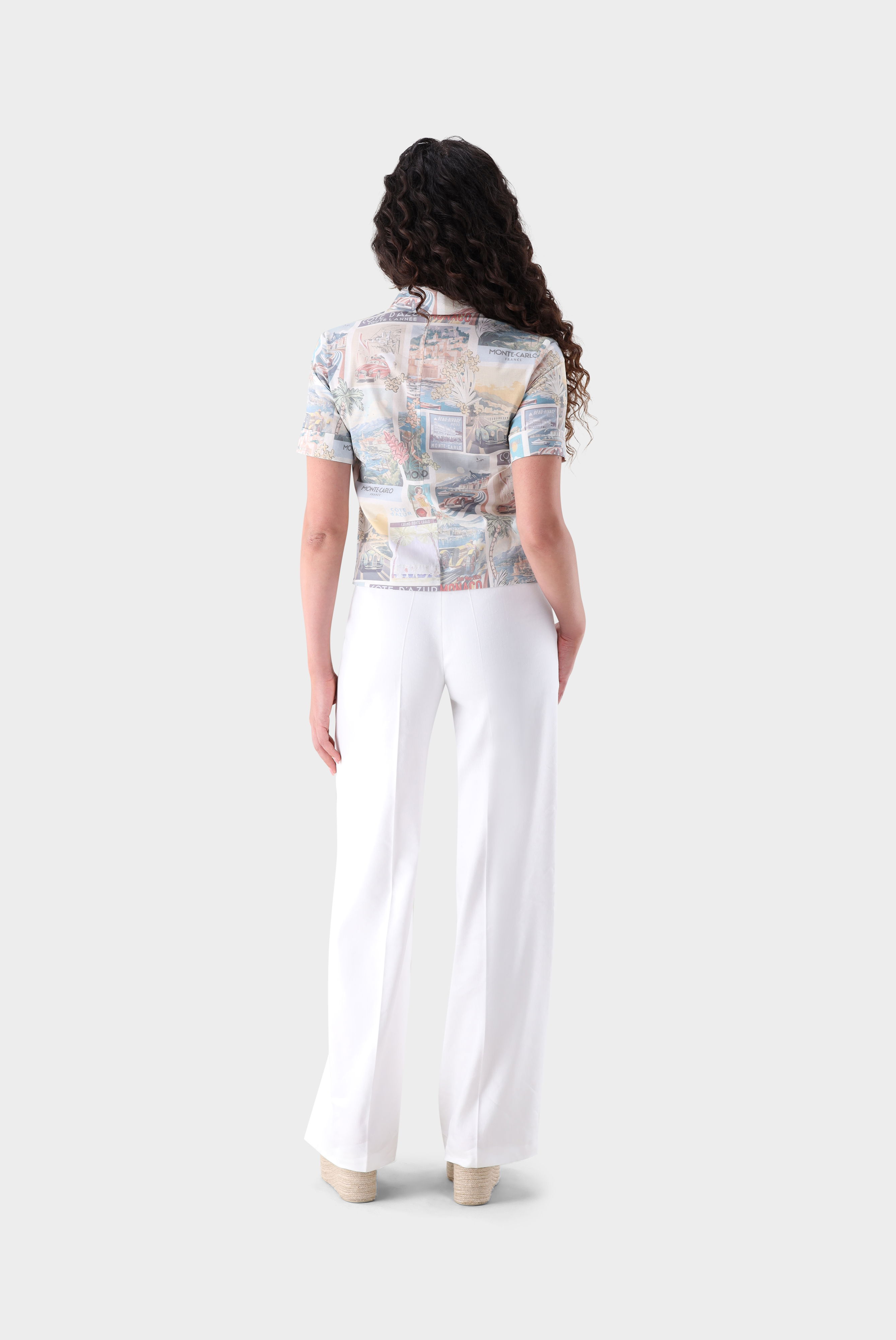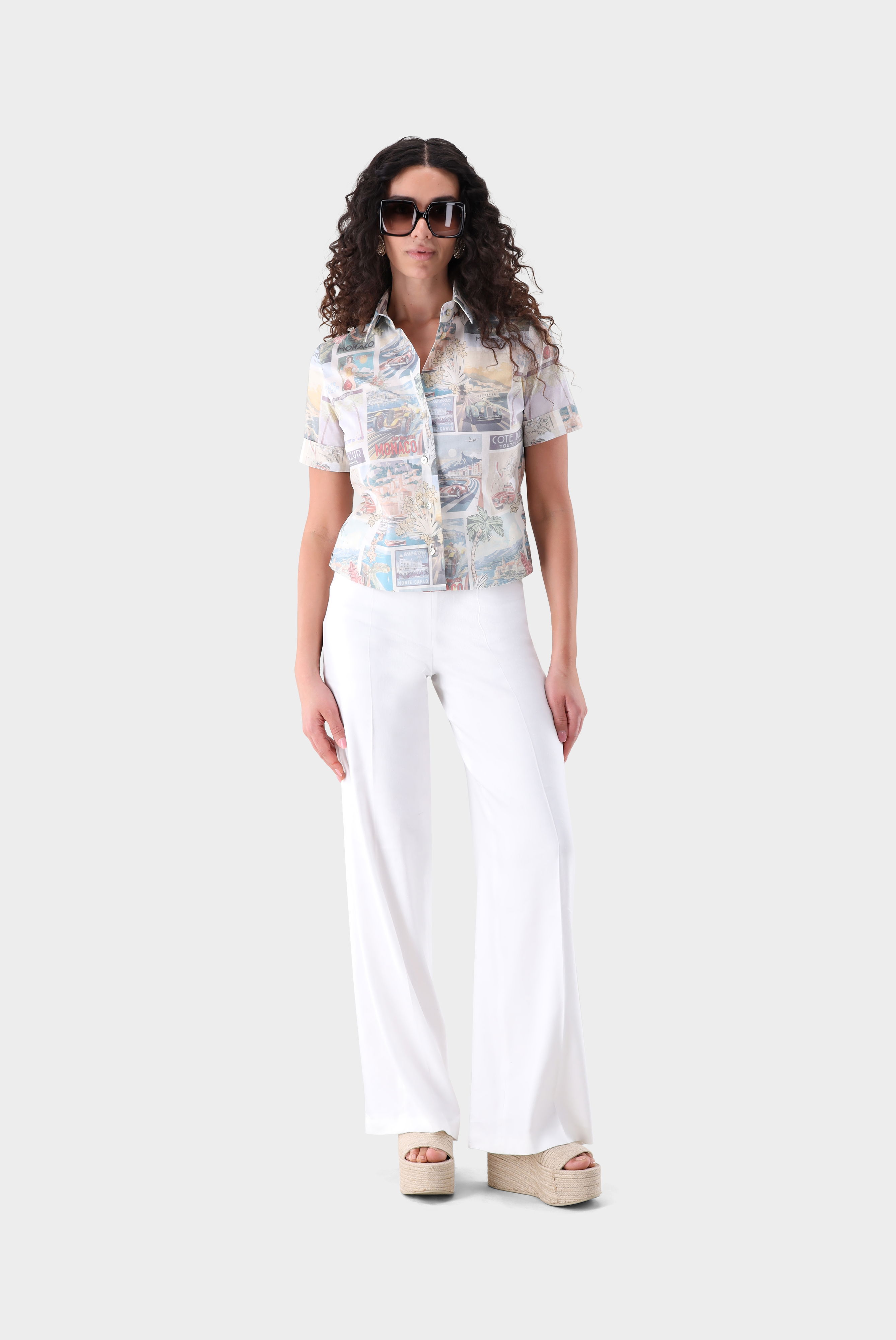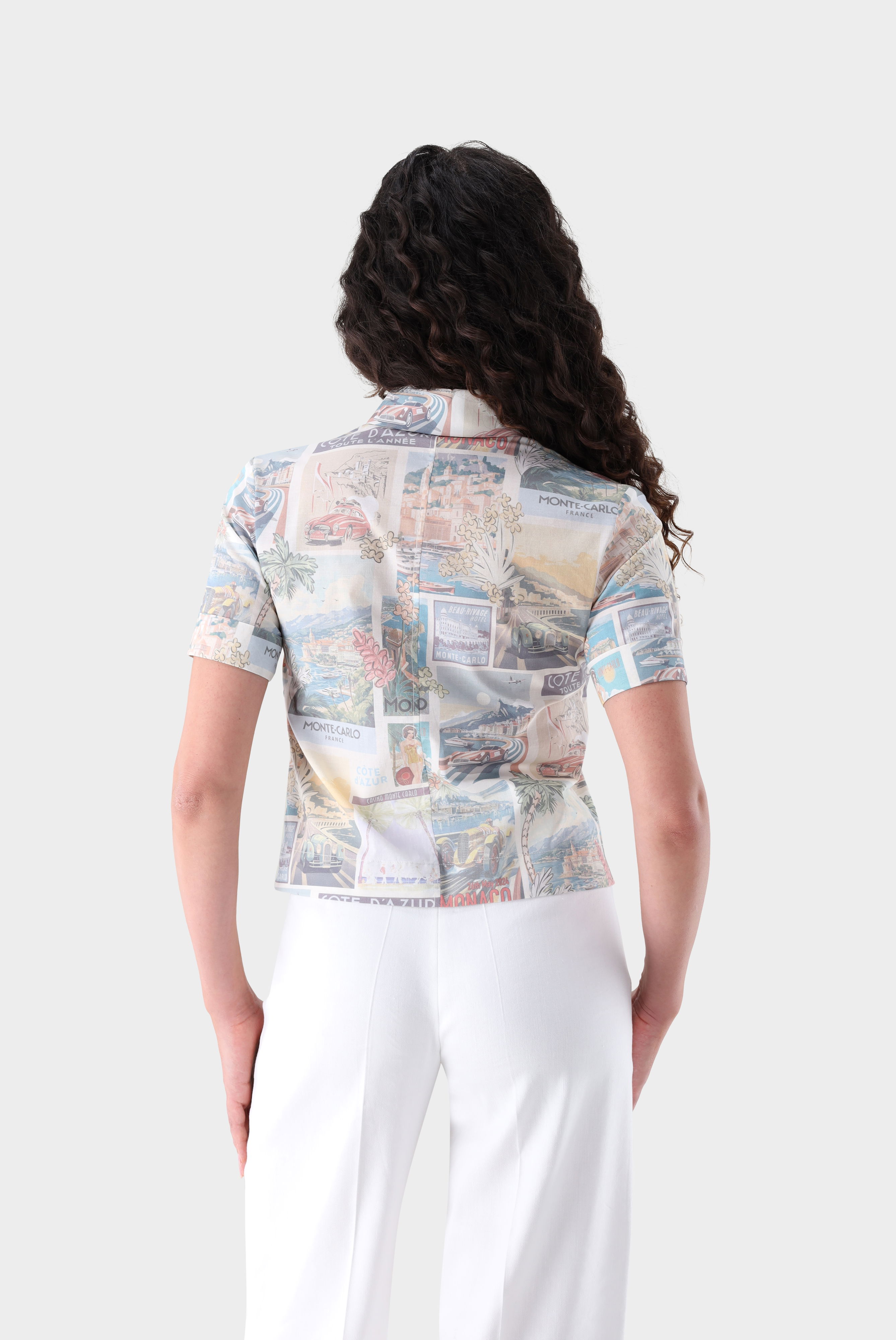 Look aus Kurzarm Hemdbluse mit Postkaten-Druck