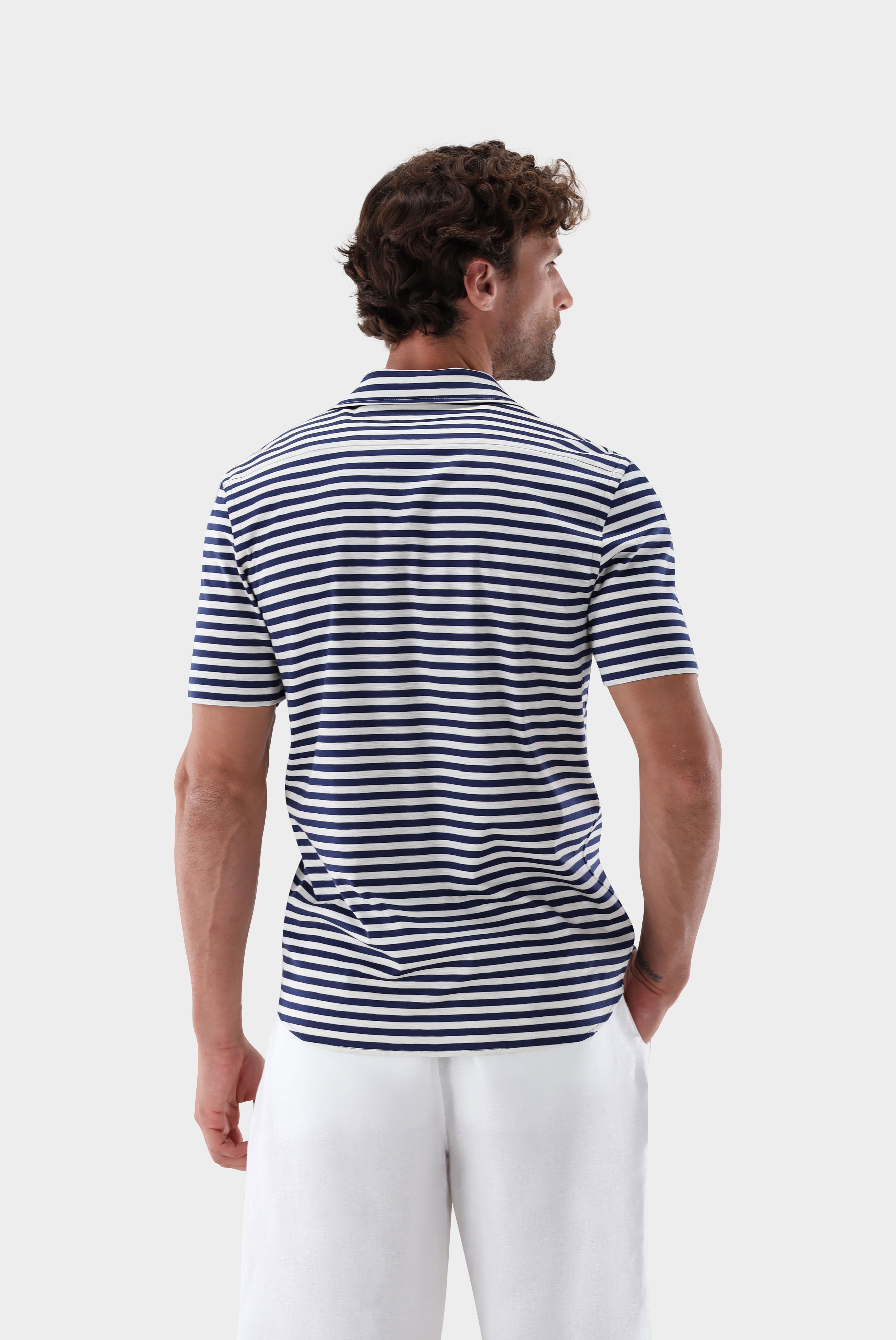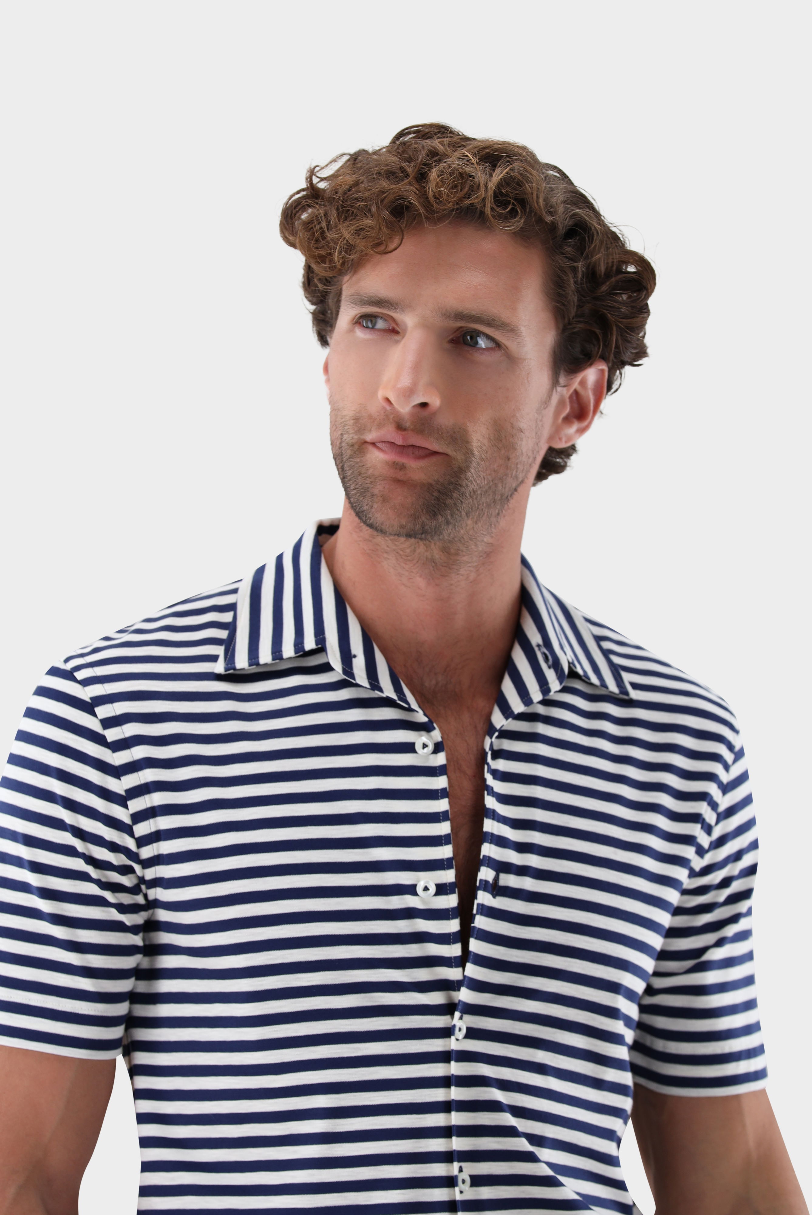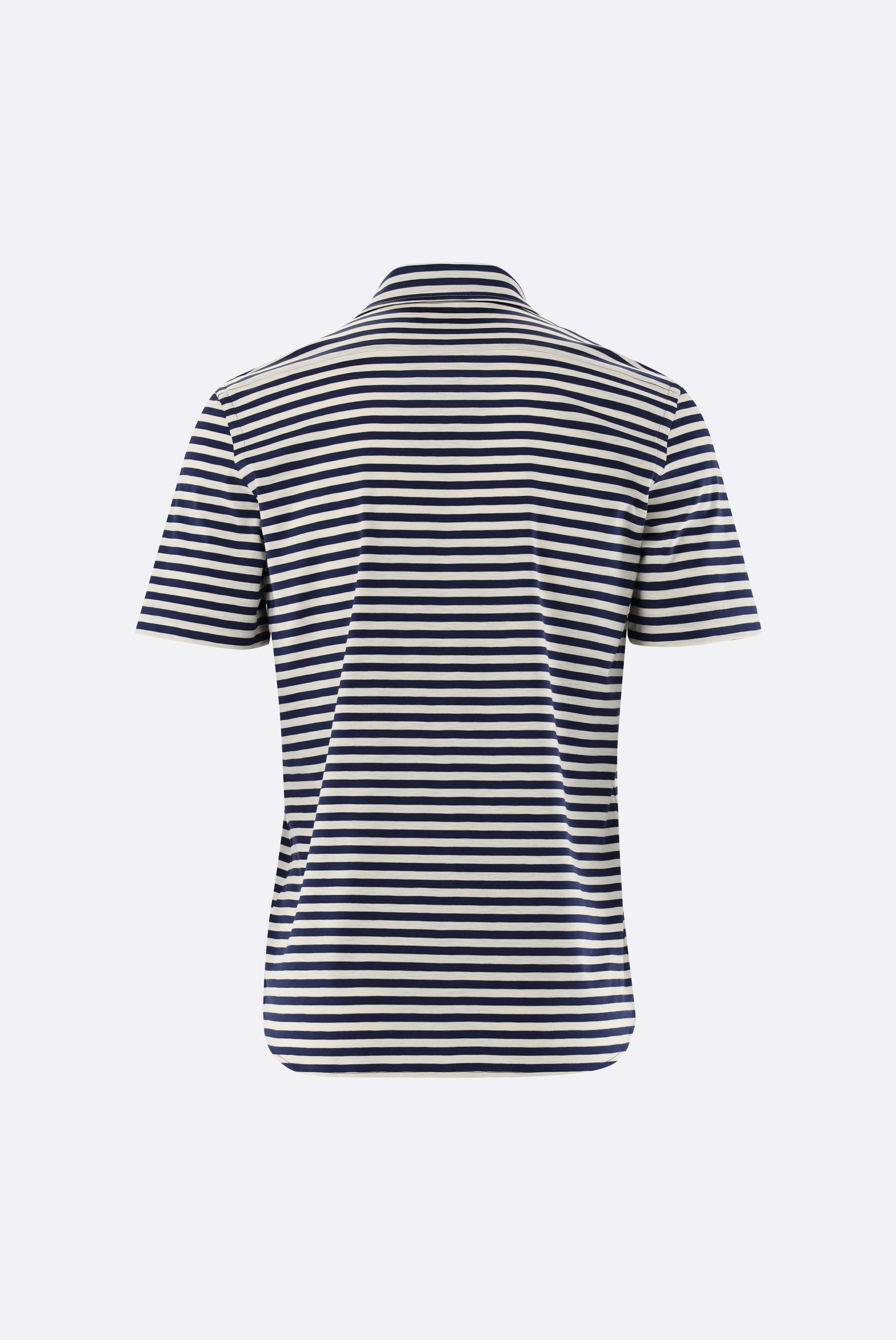 Dieses kurzärmelige Shirt aus luxuriösem, gestreiftem Jersey aus langstapeliger Giza-Baumwolle überzeugt durch außergewöhnliche Weichheit und hohe Qualität. Der innovative Vario-One-Piece-Kragen verleiht dem Design eine moderne, elegante Note. Das feine Jersey-Material bietet hohen Tragekomfort, Atmungsaktivität und Formstabilität. Ideal für gepflegte Casual- und Smart-Casual-Looks, verbindet dieses Shirt zeitlose Streifenoptik mit hochwertiger Verarbeitung und einem edlen, zeitgemäßen Erscheinungsbild.