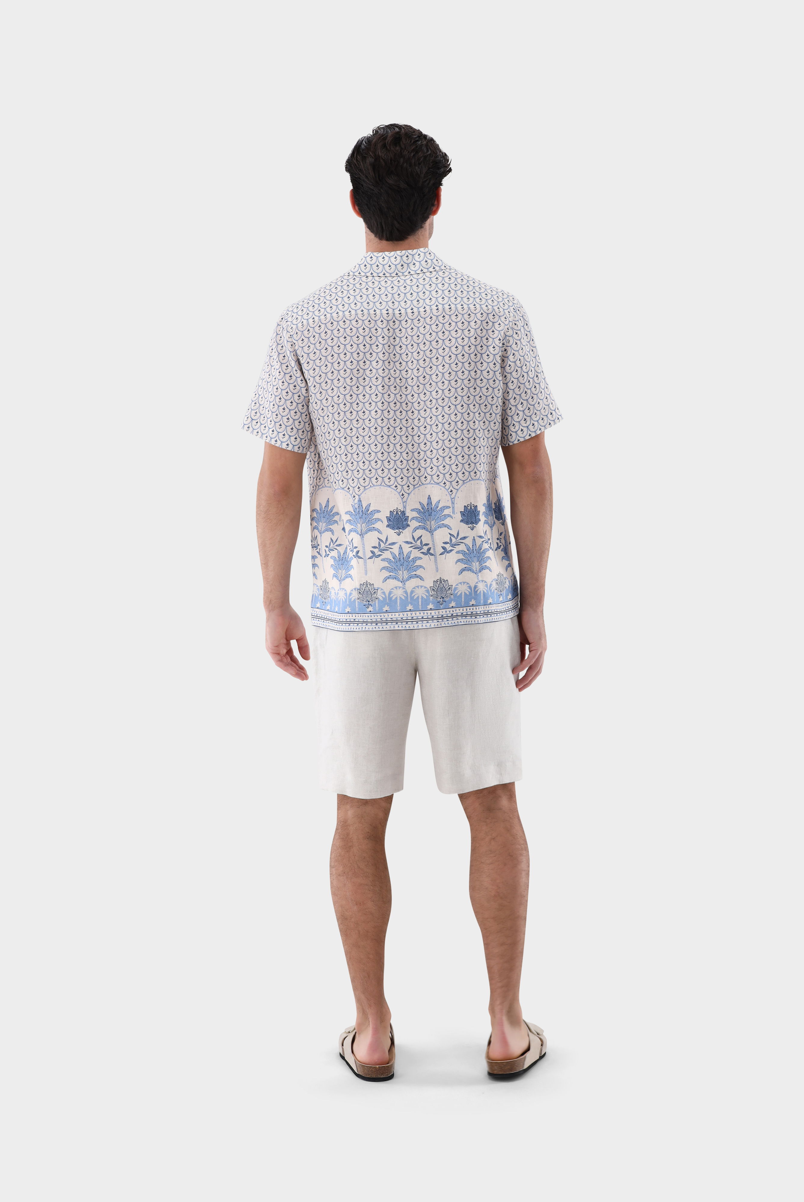 Look aus Kurzarmhemd kastenförmig mit Palmen-Druck