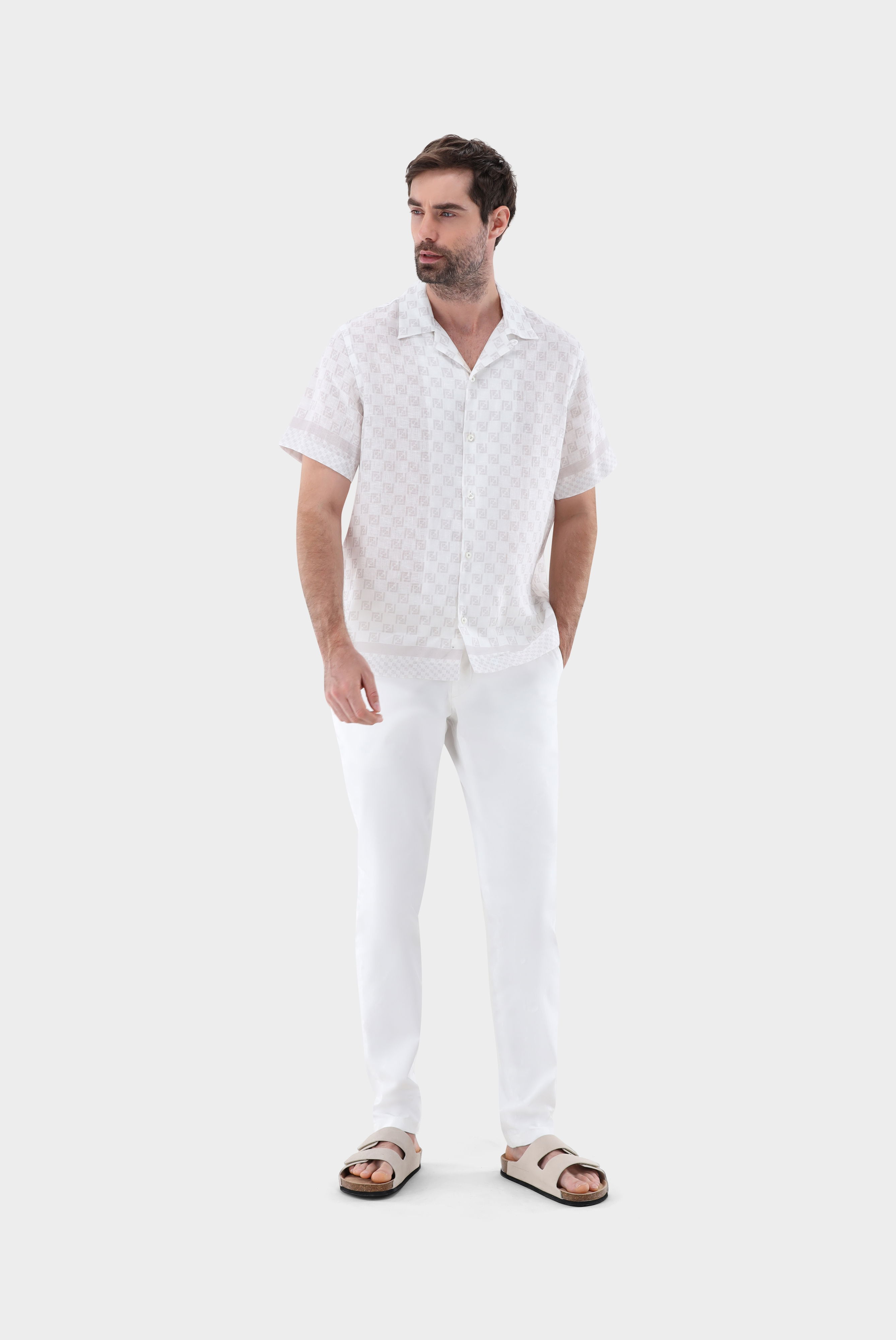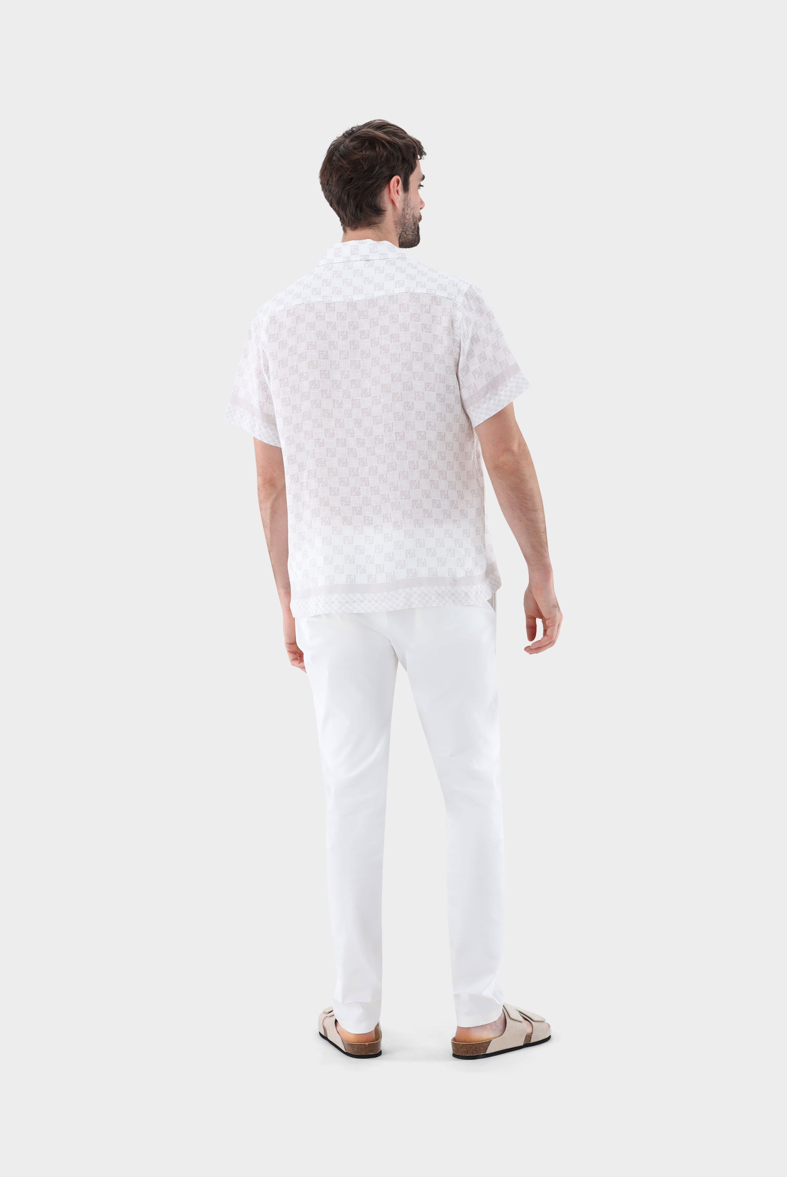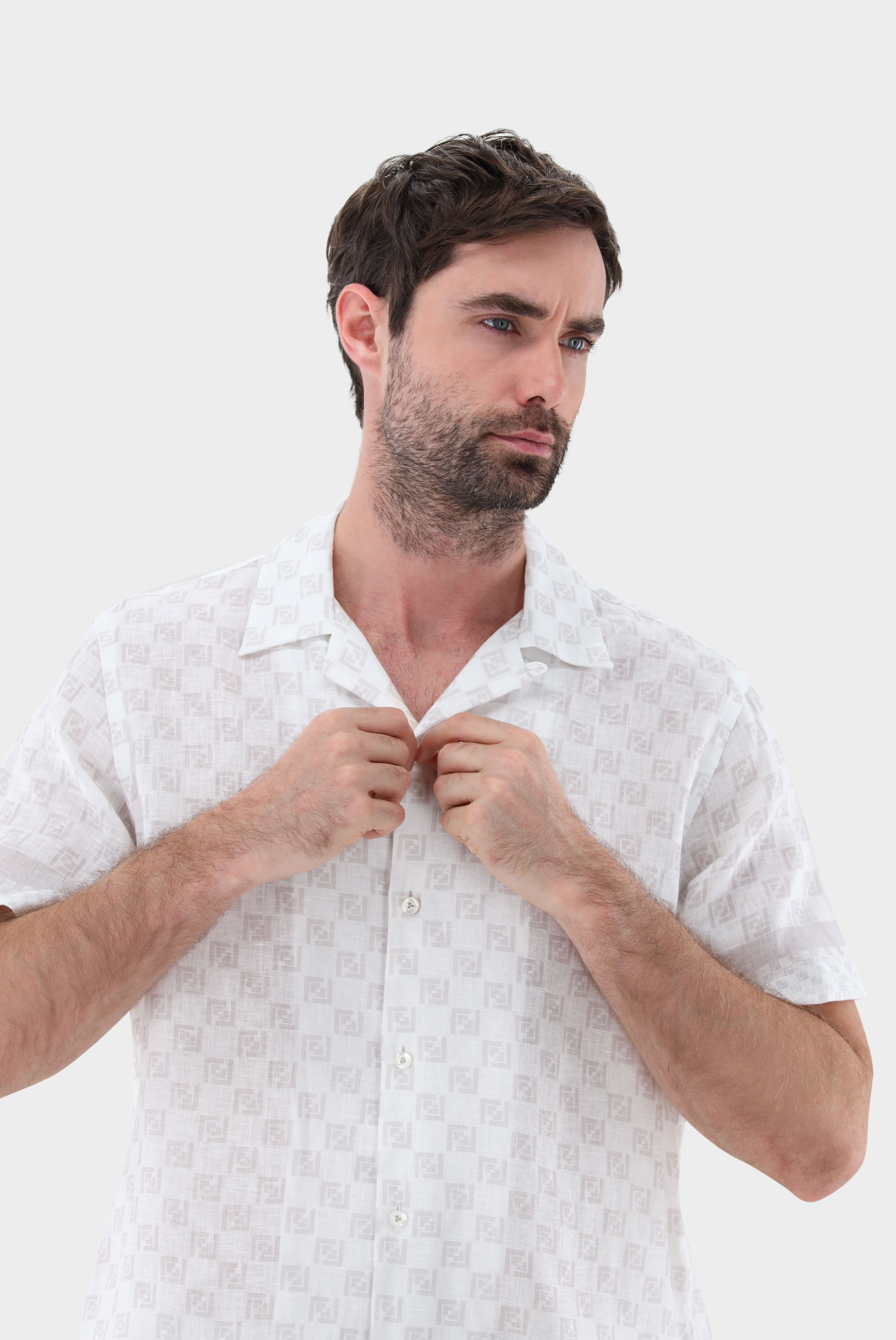 Look aus Kurzarmhemd mit Reverskragen und Geometrischem Druck
