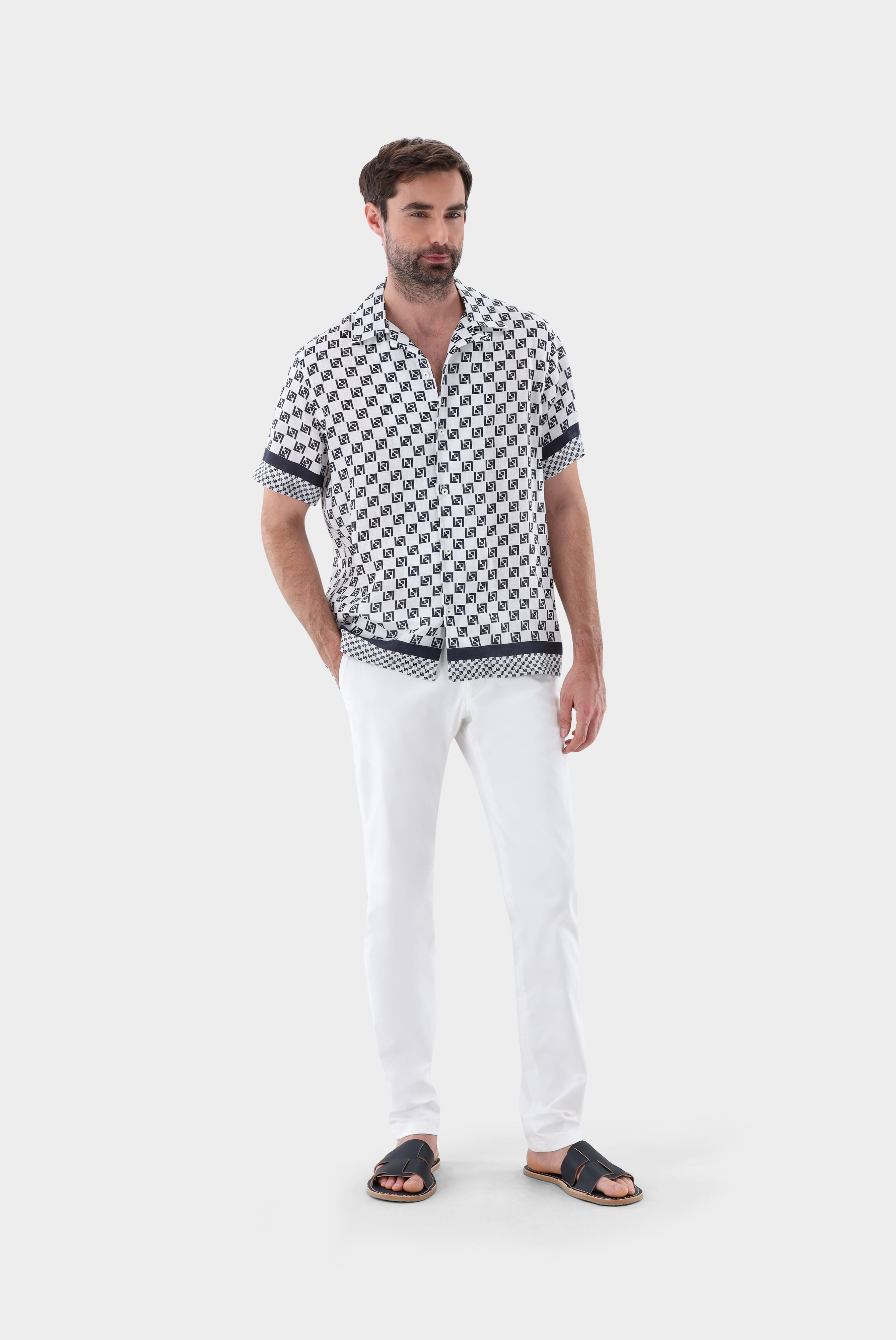 Look aus Kurzarmhemd mit Reverskragen und Geometrischem Druck