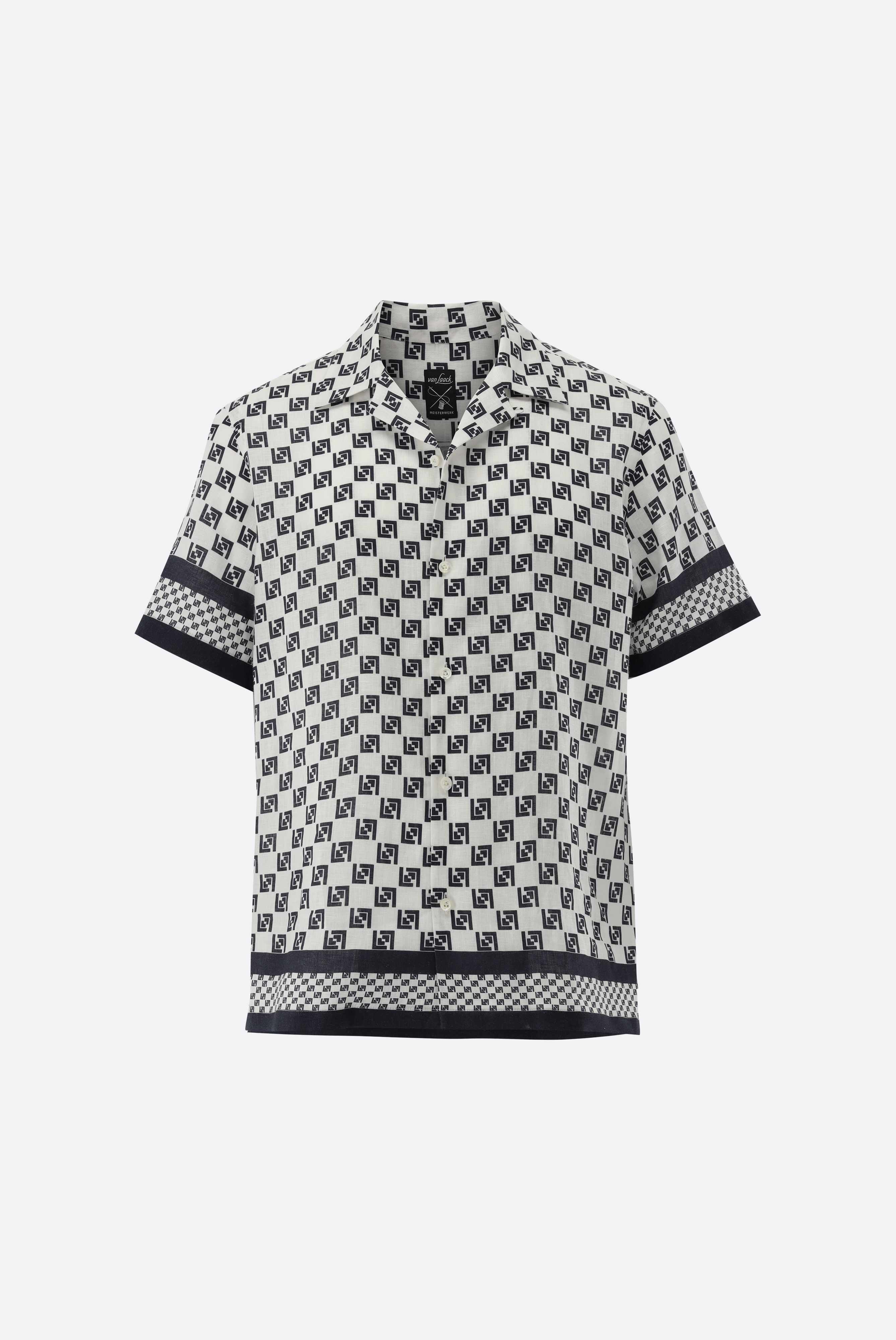 Das Kurzarmhemd mit Reverskragen mit van Laack Signature Druck in Geometrischer Optik bietet eine coole und sommerliche Wahl für einen Casual Look. Hergestellt aus einer Tencel und Leinen Mischung mit van Laack Signature Druck und einer Bordüre, verfügt das Hemd über eine gerade, kastige Form mit einer Aufhängeschlaufe, schmalen Manschetten, sowie eine glatte Knopfleiste. Die kurzen Ärmel tragen zum legeren und entspannten Stil des Hemdes bei und machen es ideal für den Strand und sommerliche Anlässe. Die Tencel und Leinen Mischung sorg für ein luftiges, fließendes Tragegefühl