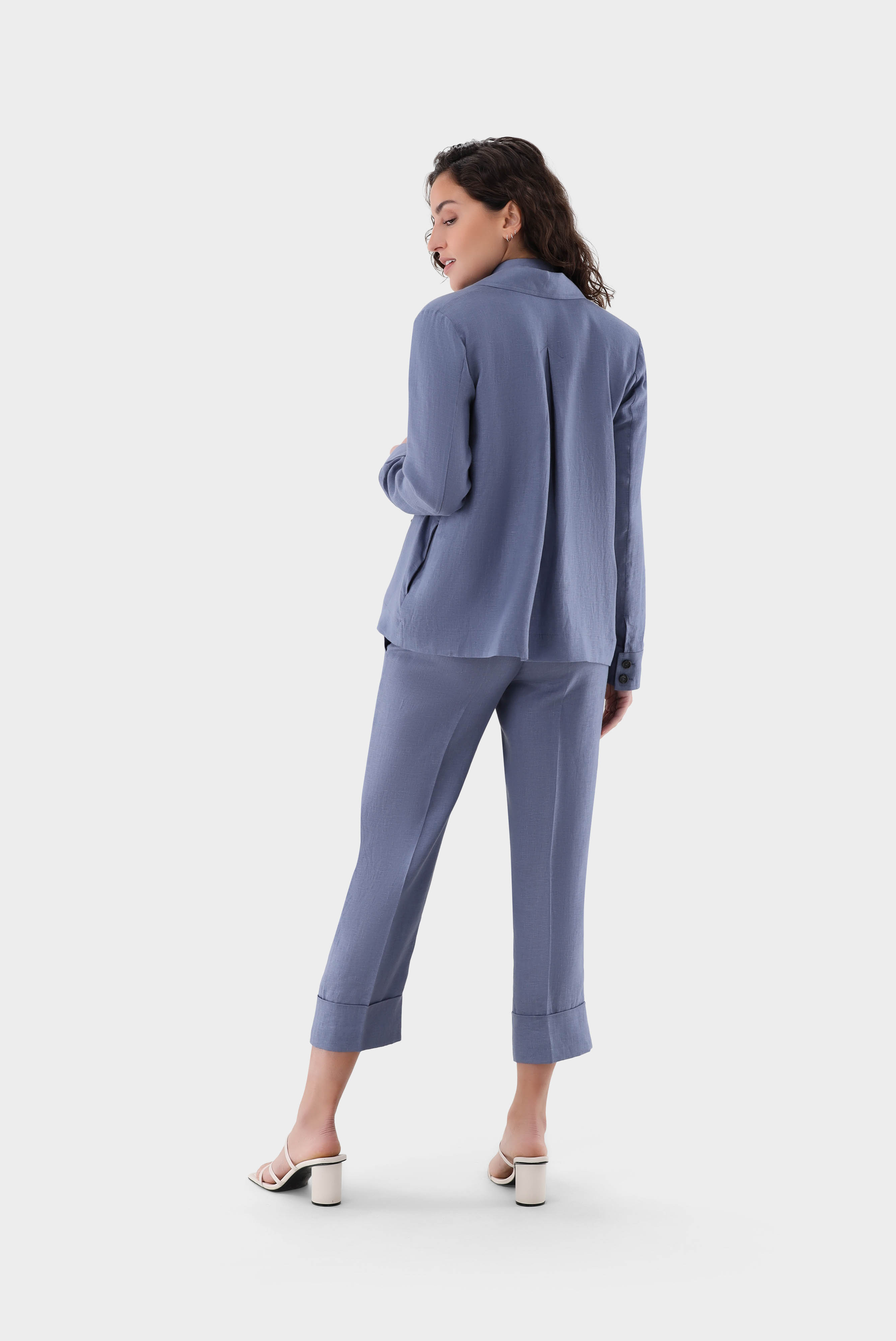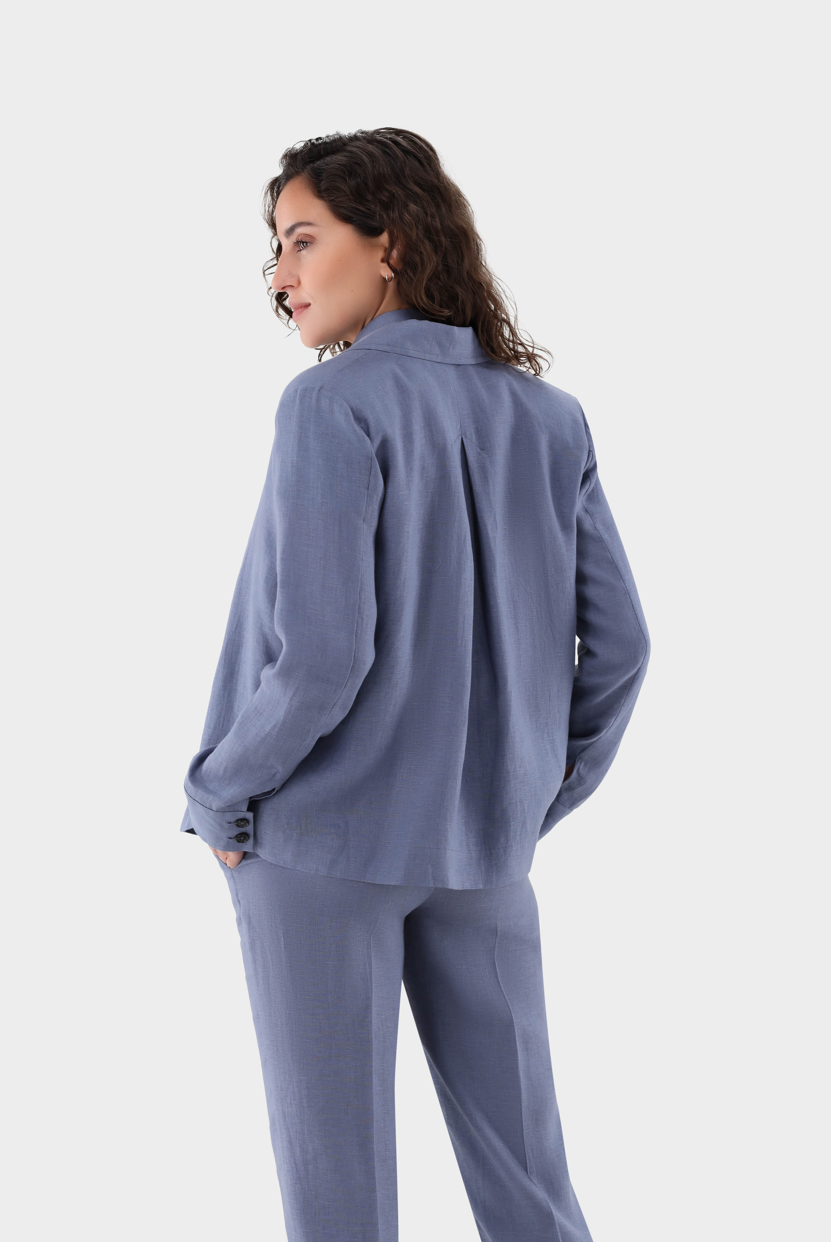 Die kastige Damen-Hemdjacke mit Revers, langen Ärmeln, Rückenfalte, Schulterpolstern und schlichtem Leinen bietet einen lässigen und dennoch eleganten Look. Der Leinenstoff ist strapazierfähig, saugfähig, im Sommer leicht kühlend und atmungsaktiv.