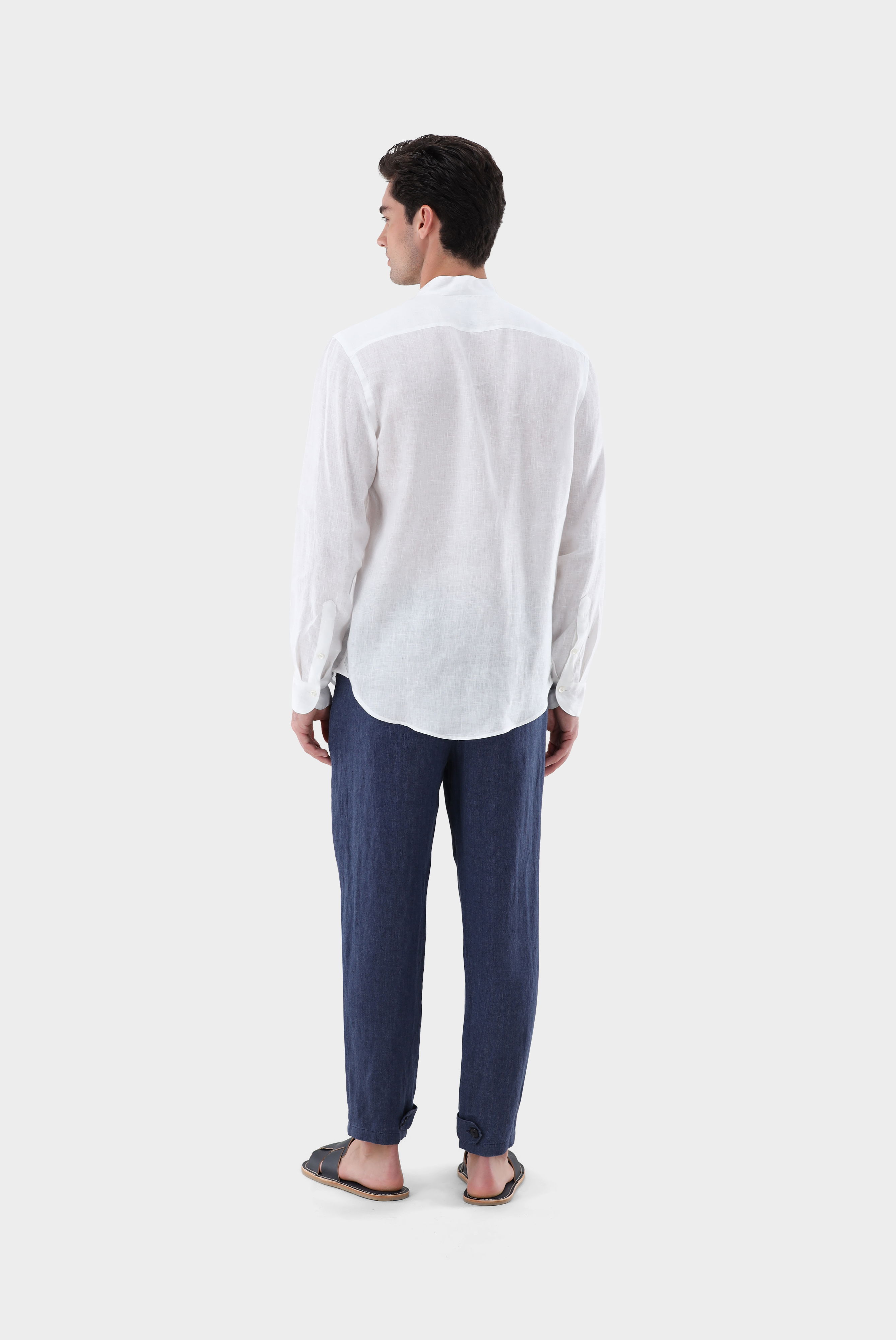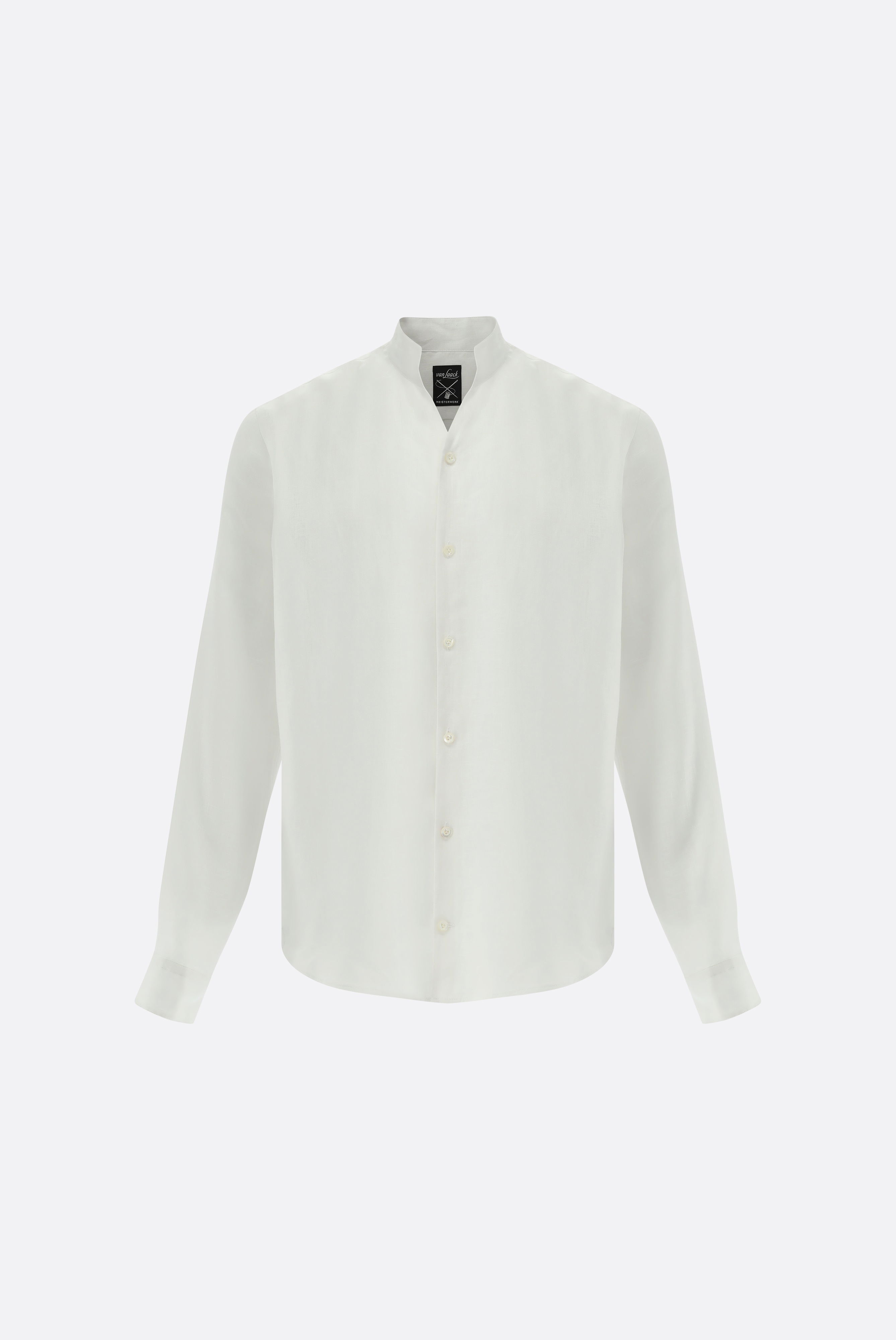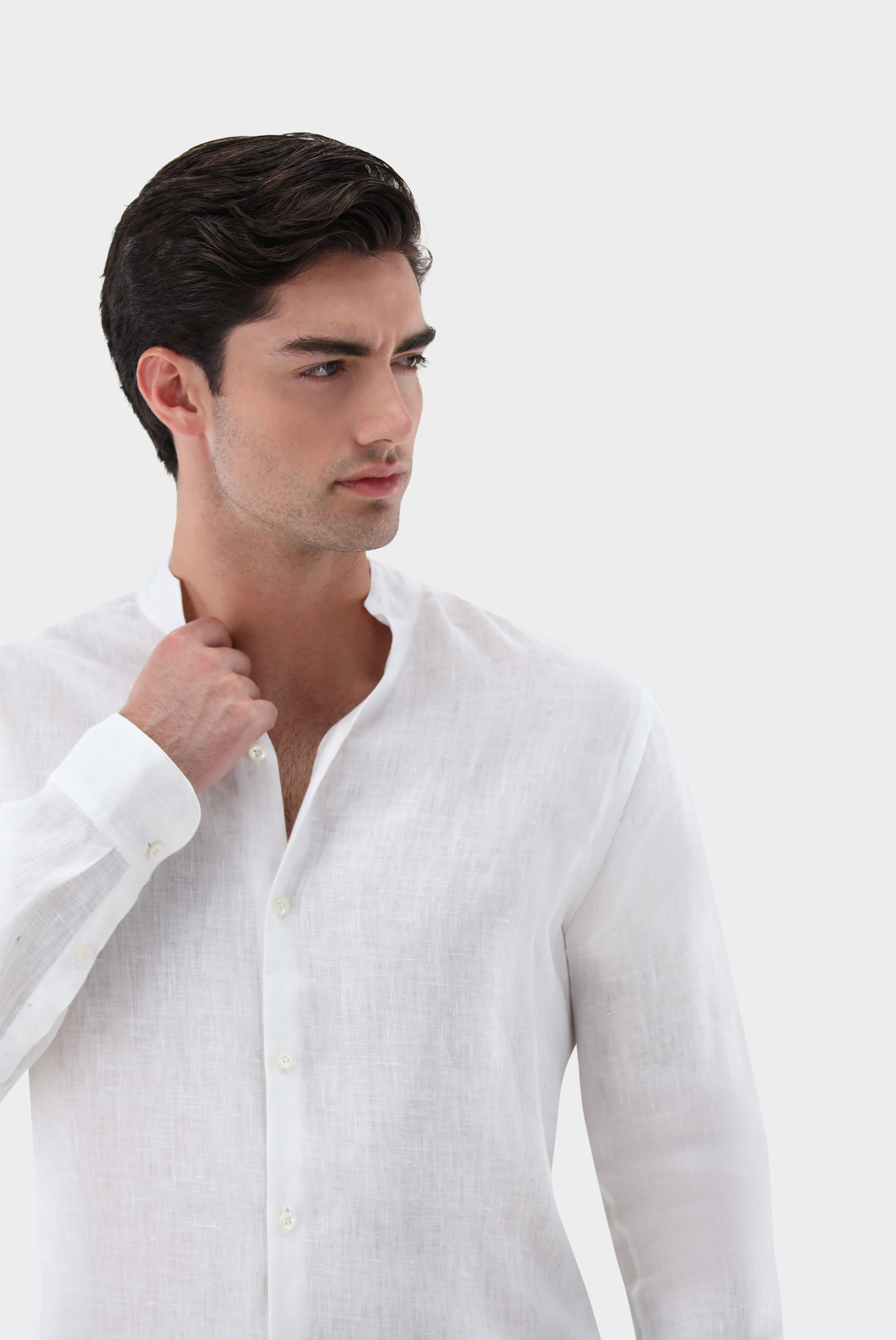 Dieses Hemd aus hochwertigem Leinen-Gewebe verfügt über einen Stehkragen mit V-Ausschnitt, der für ein edles Design sorgt. Das weiche Leinen ist besonders luftdurchlässig und kühlend und hat so eine kühlende Funktion. Dies macht es zu einem optimalen Hemd für warme Sommertage.