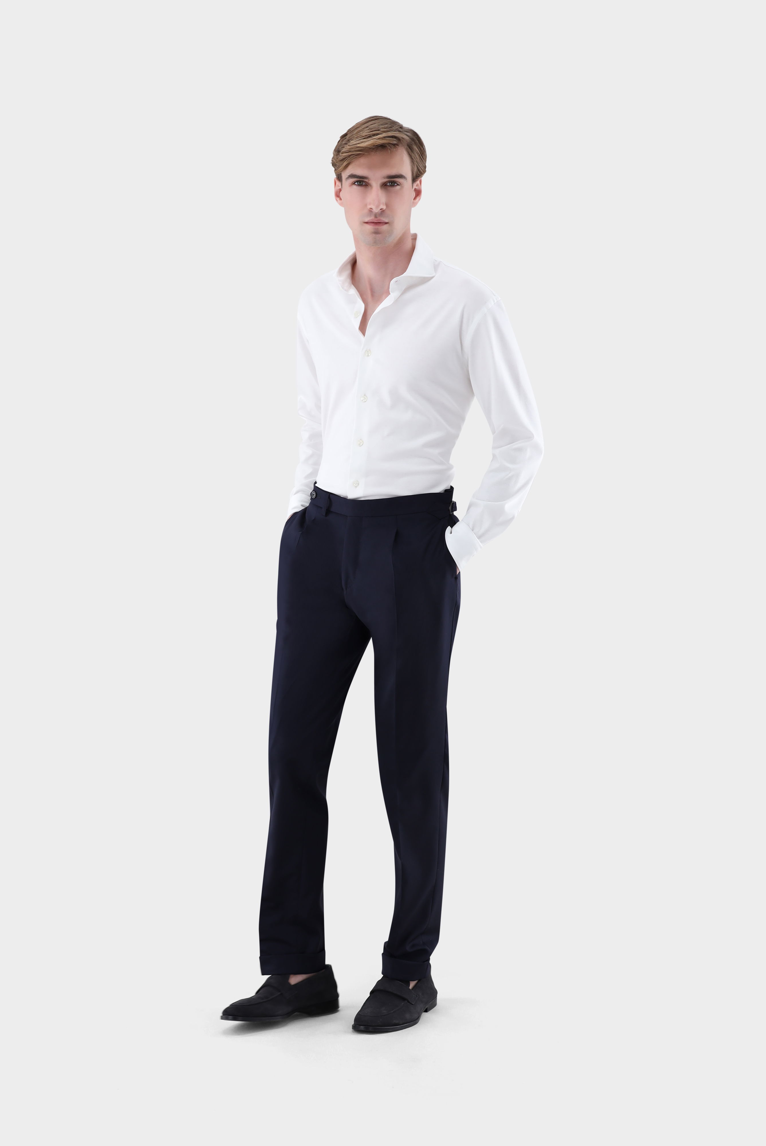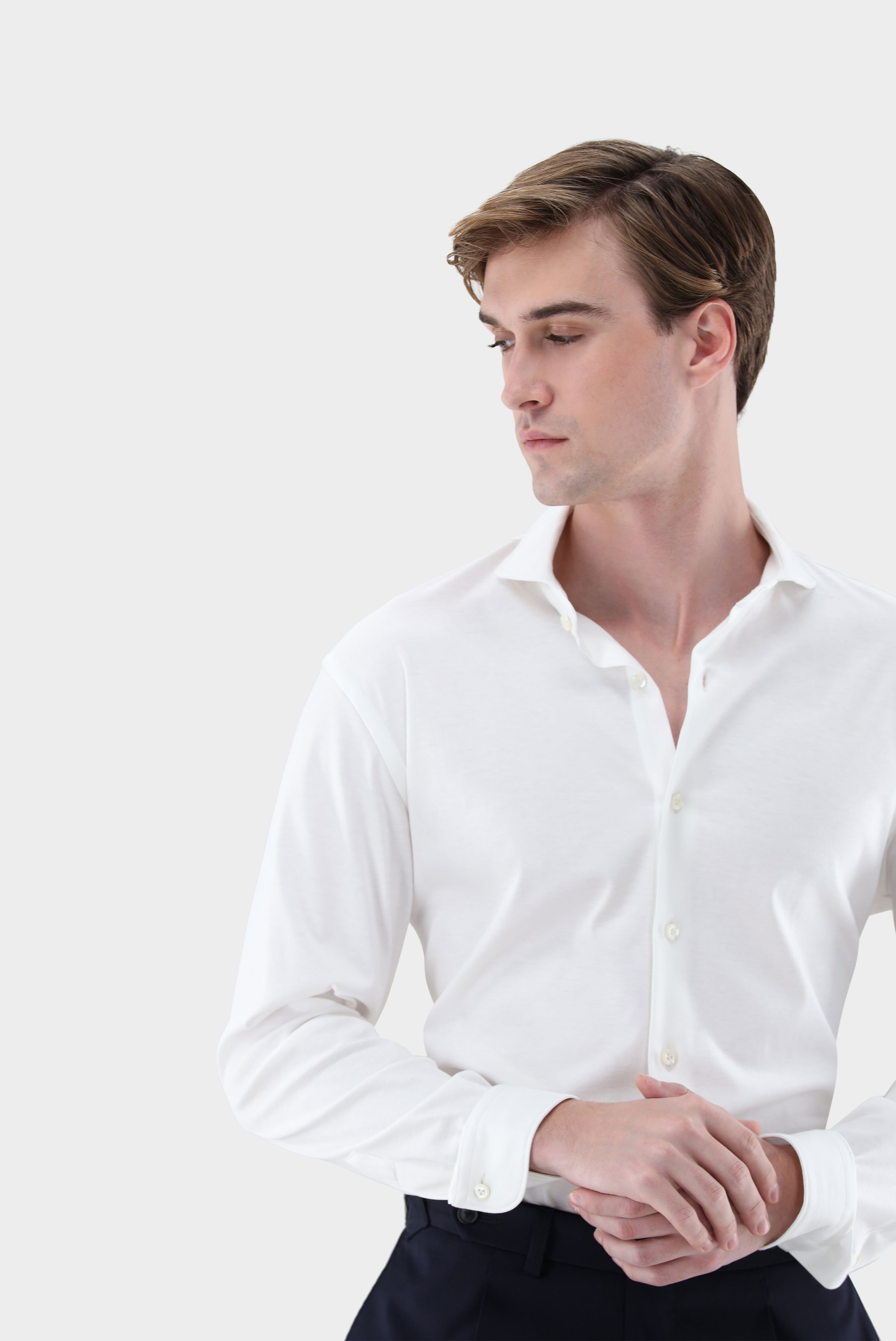 Look aus Luxuriöses Jersey Hemd aus Baumwolle Tailor Fit Weiß