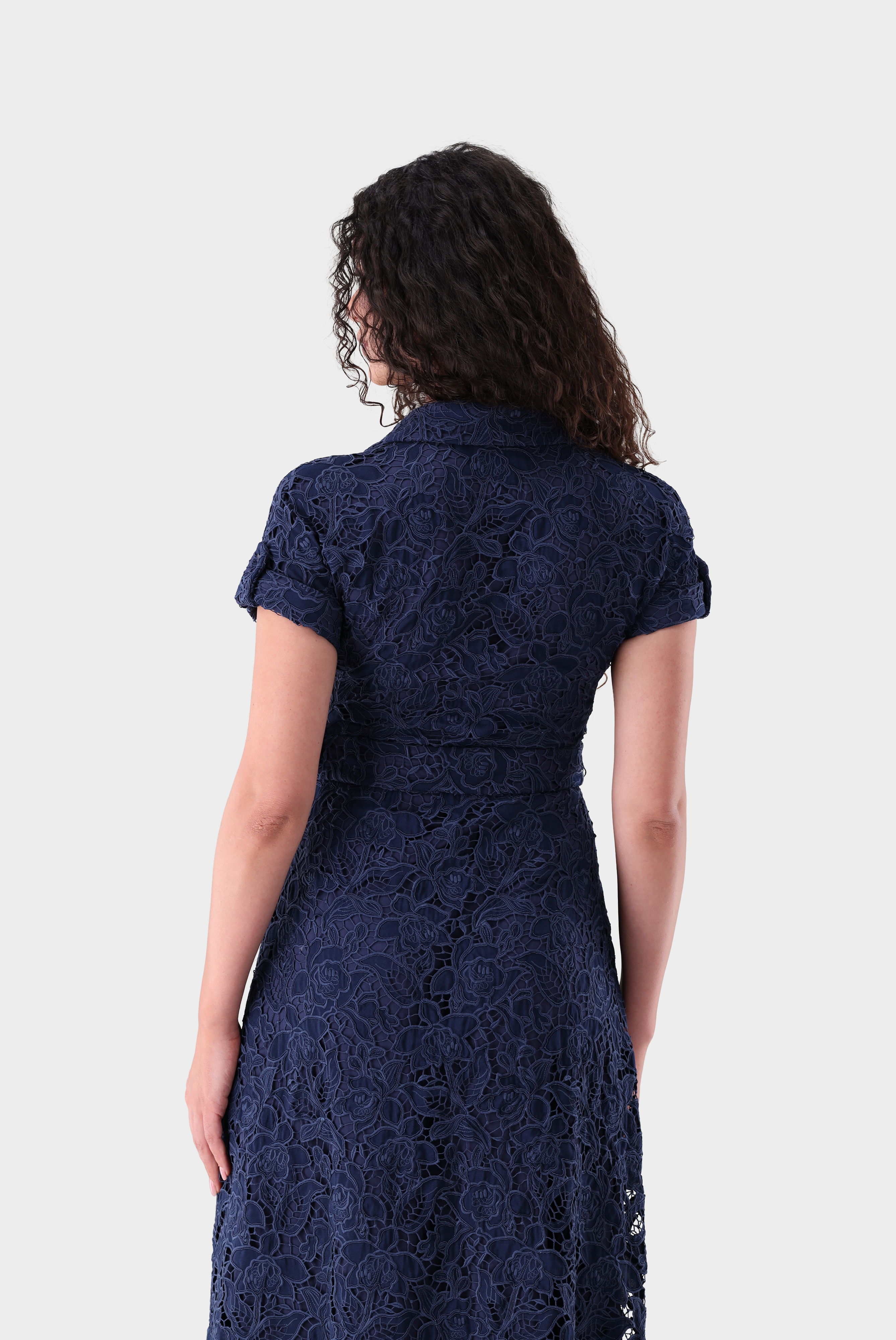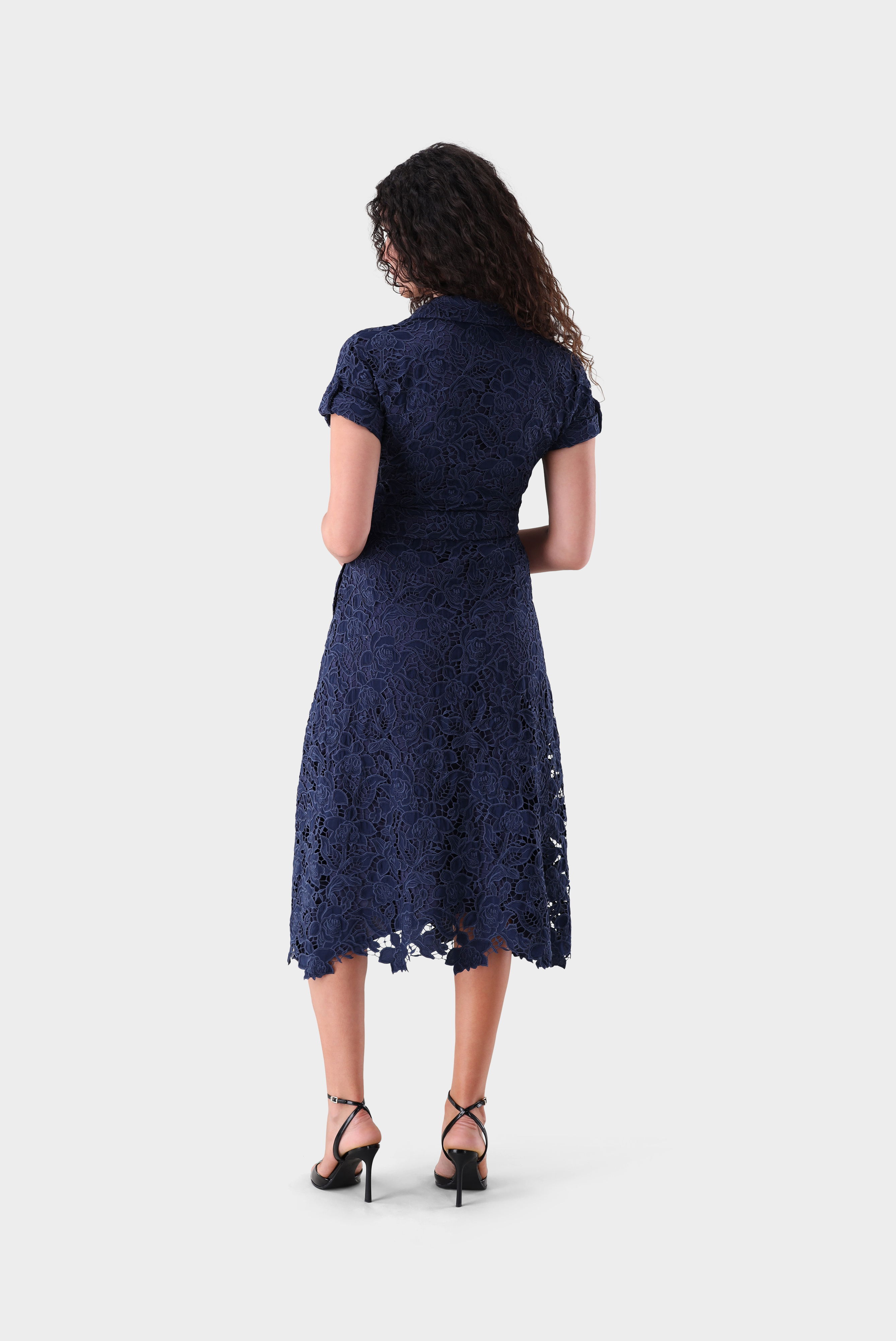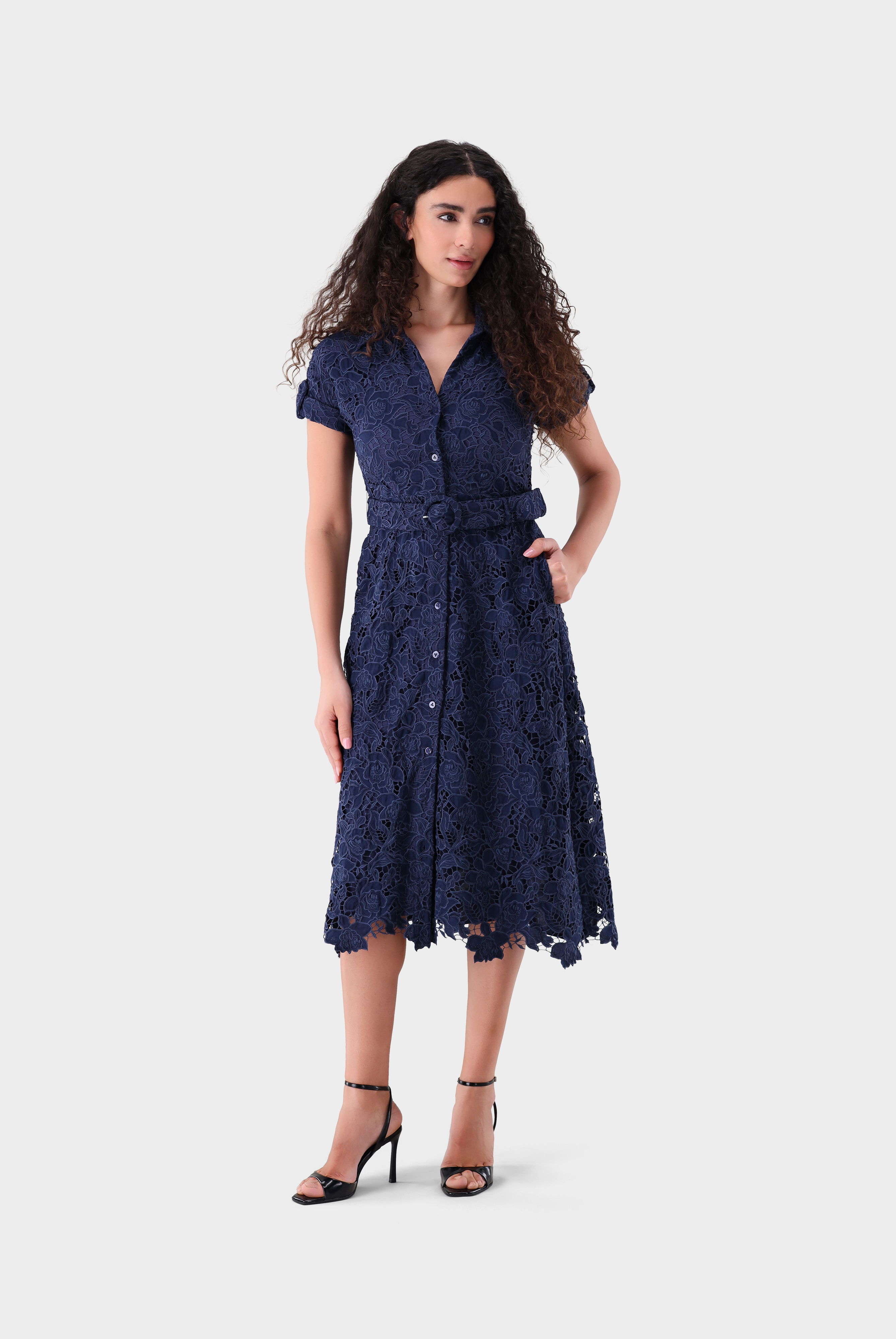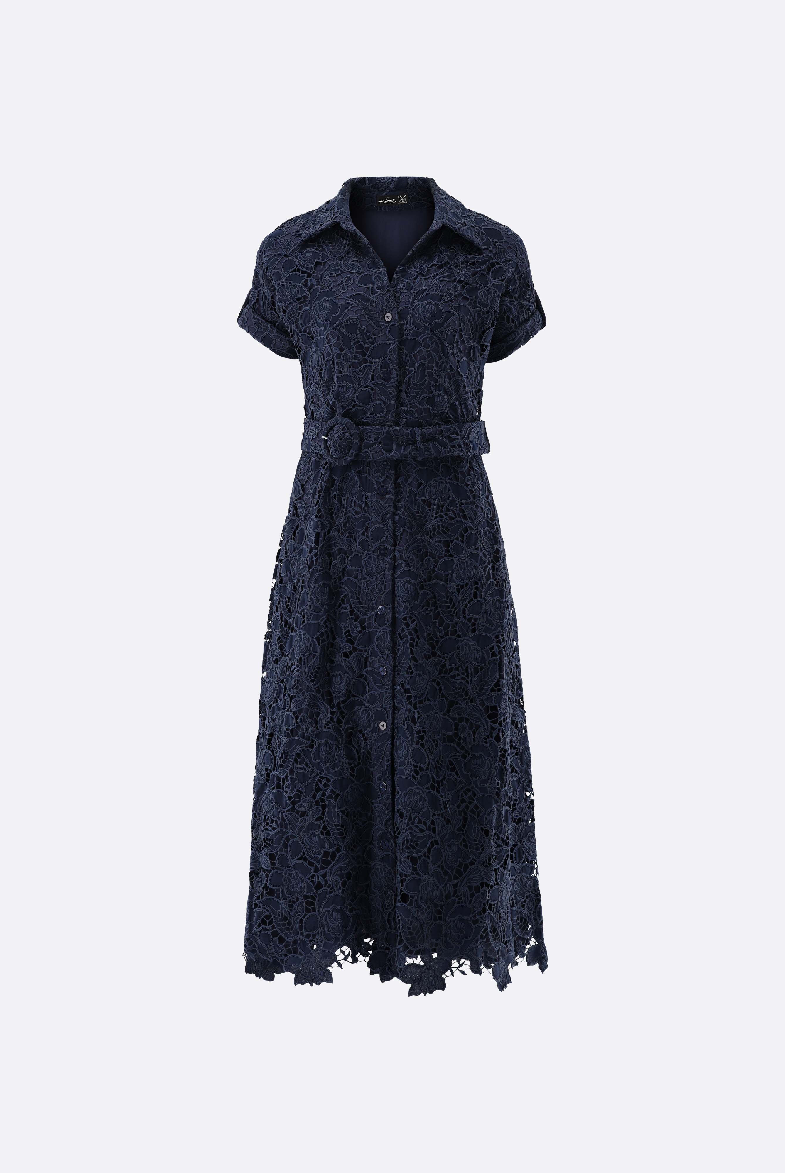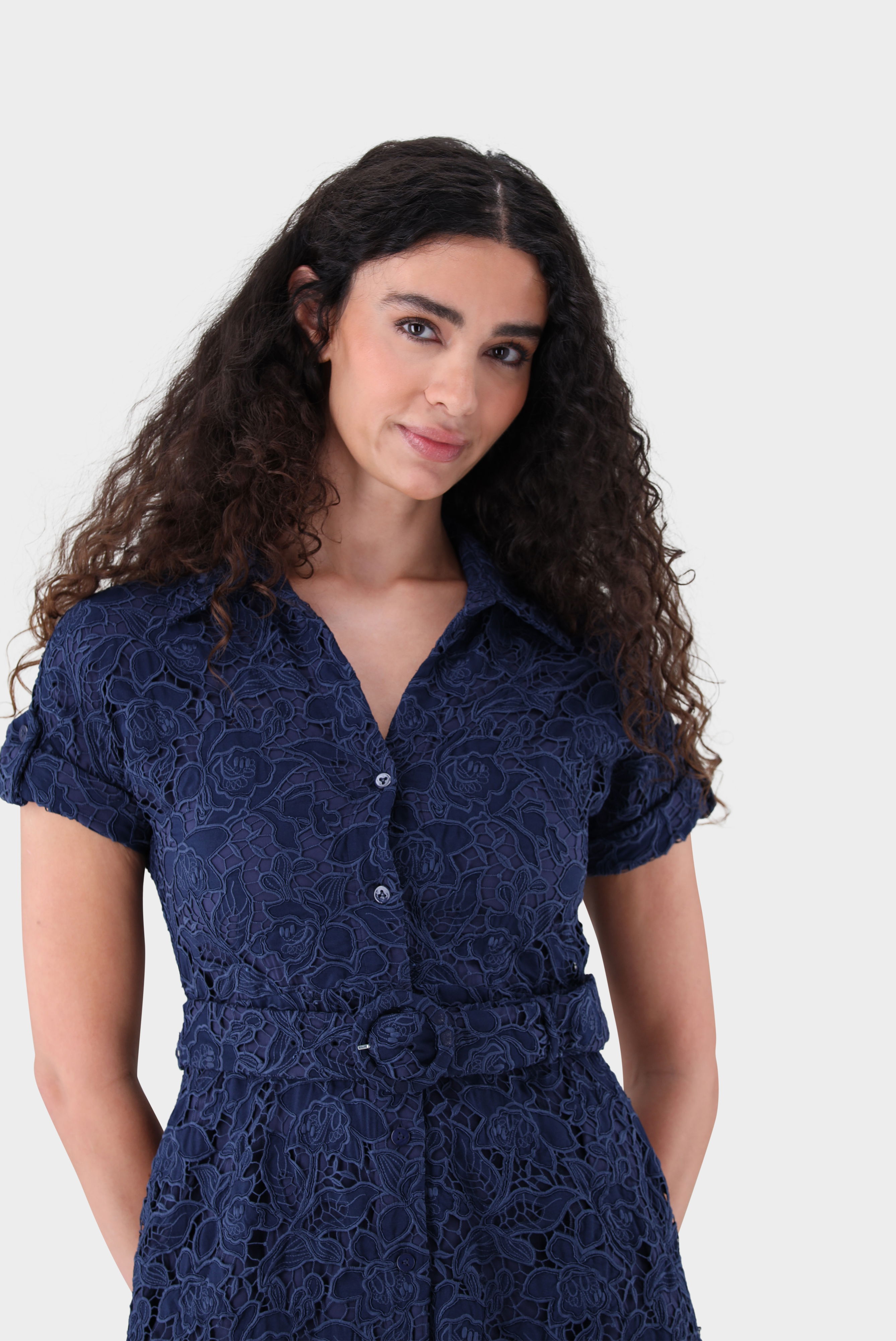 Look aus Midi-Hemdblusenkleid aus weicher Spitze