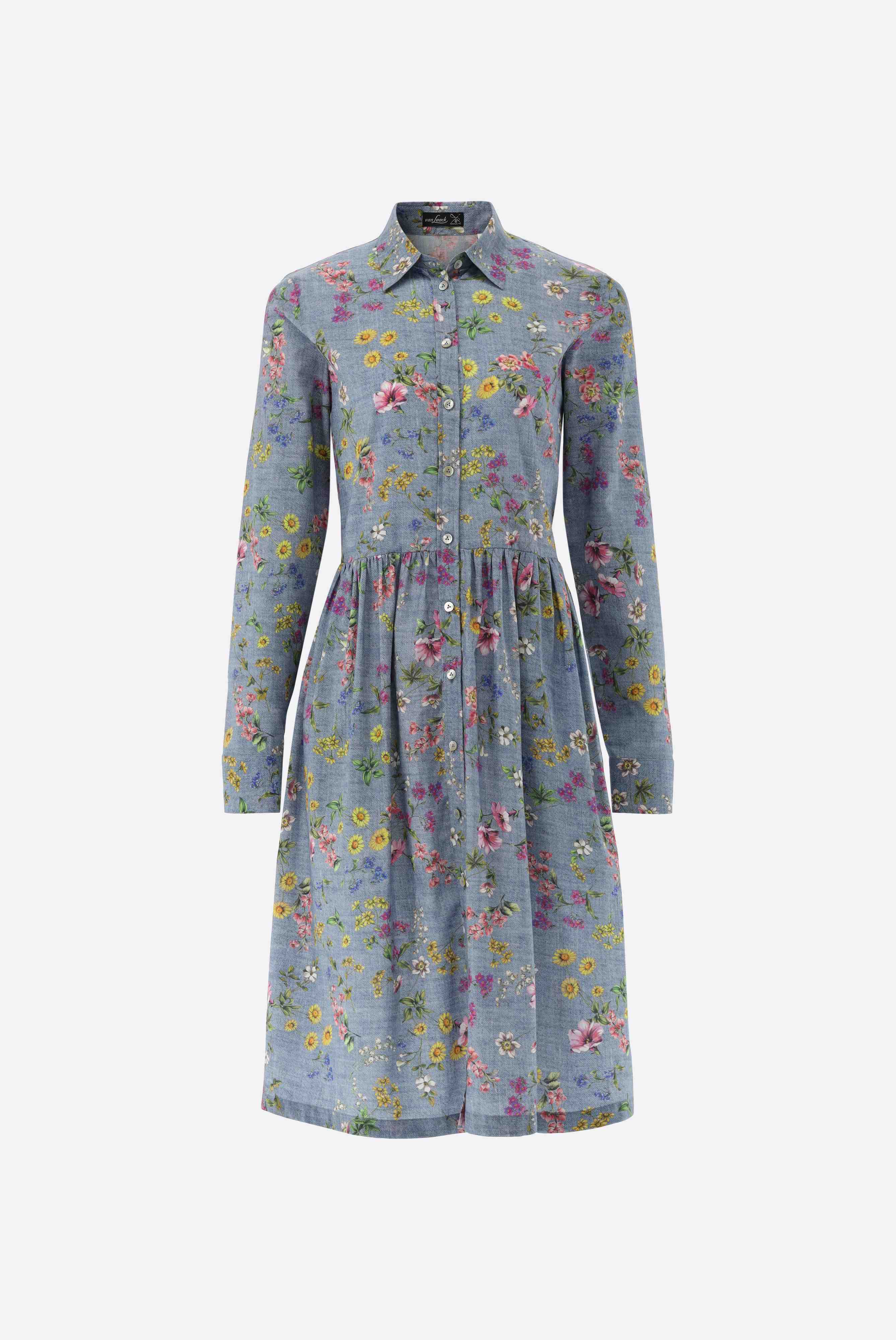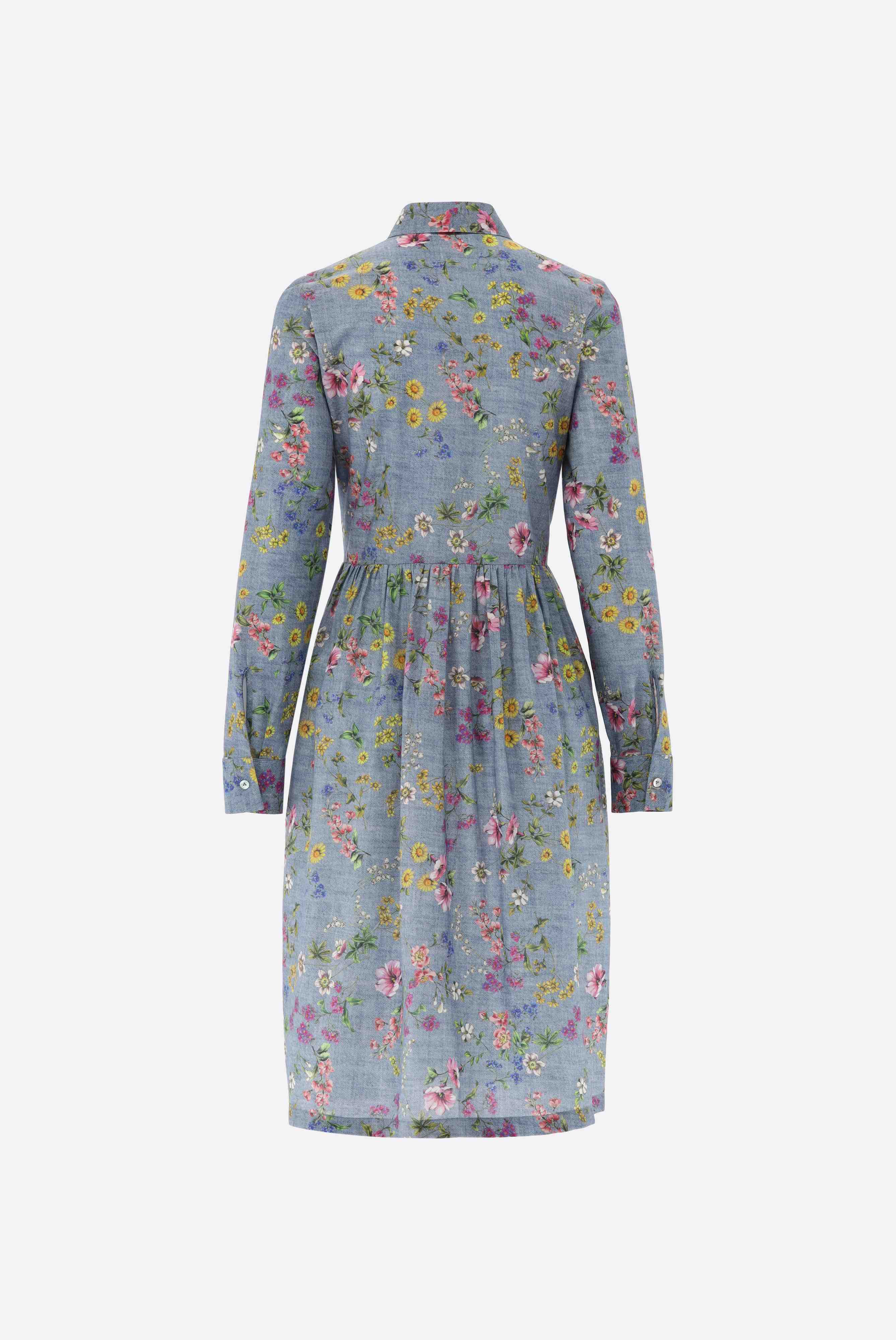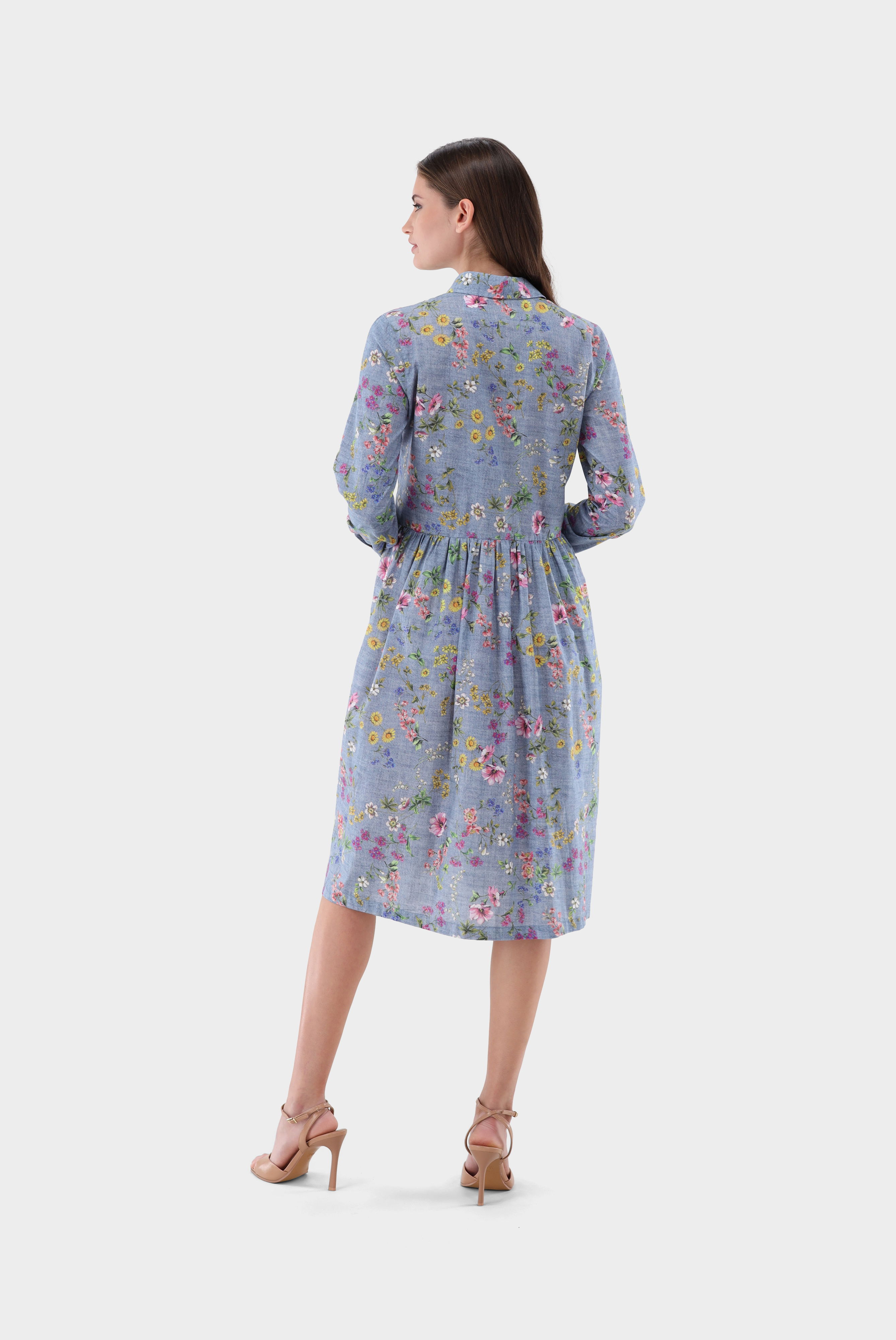Look aus Midi-Hemdblusenkleid mit Jeans-Blumen-Druck