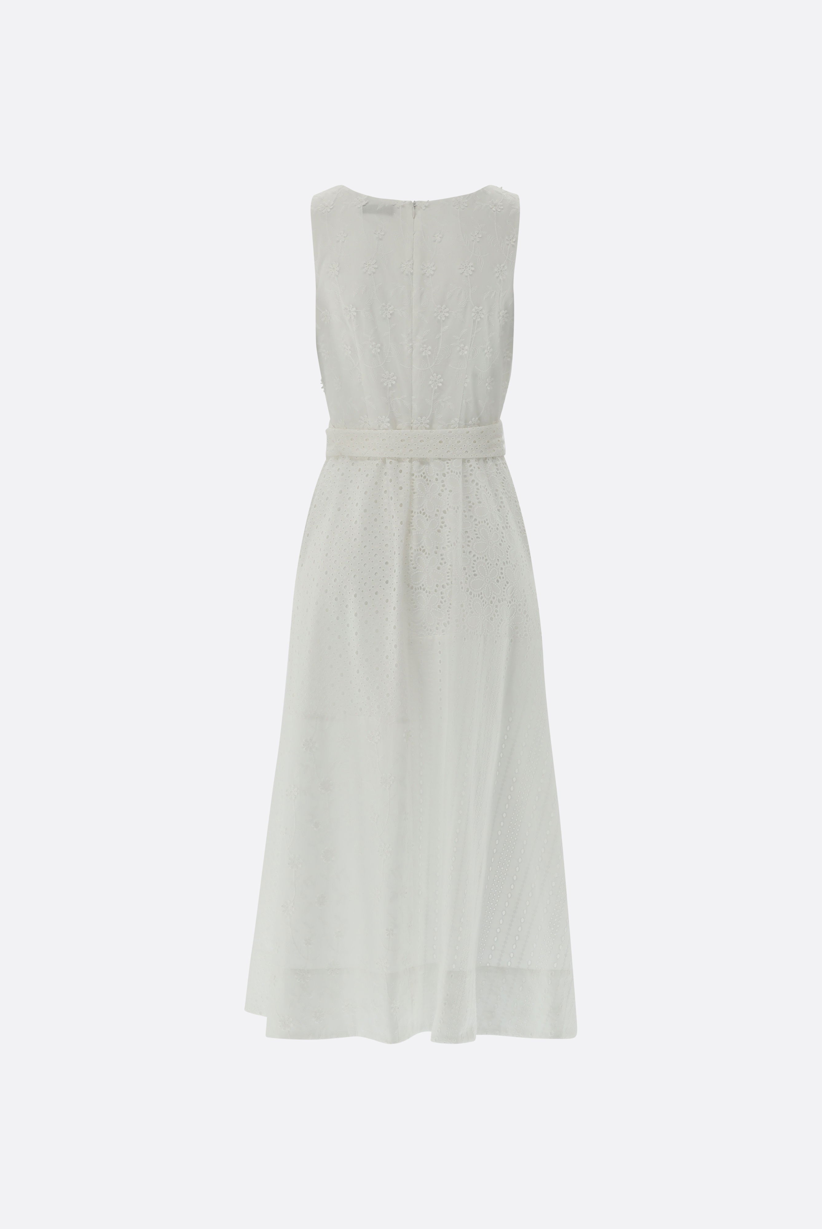 Look aus Midi-Kleid mit Patchwork-Lochstickerei