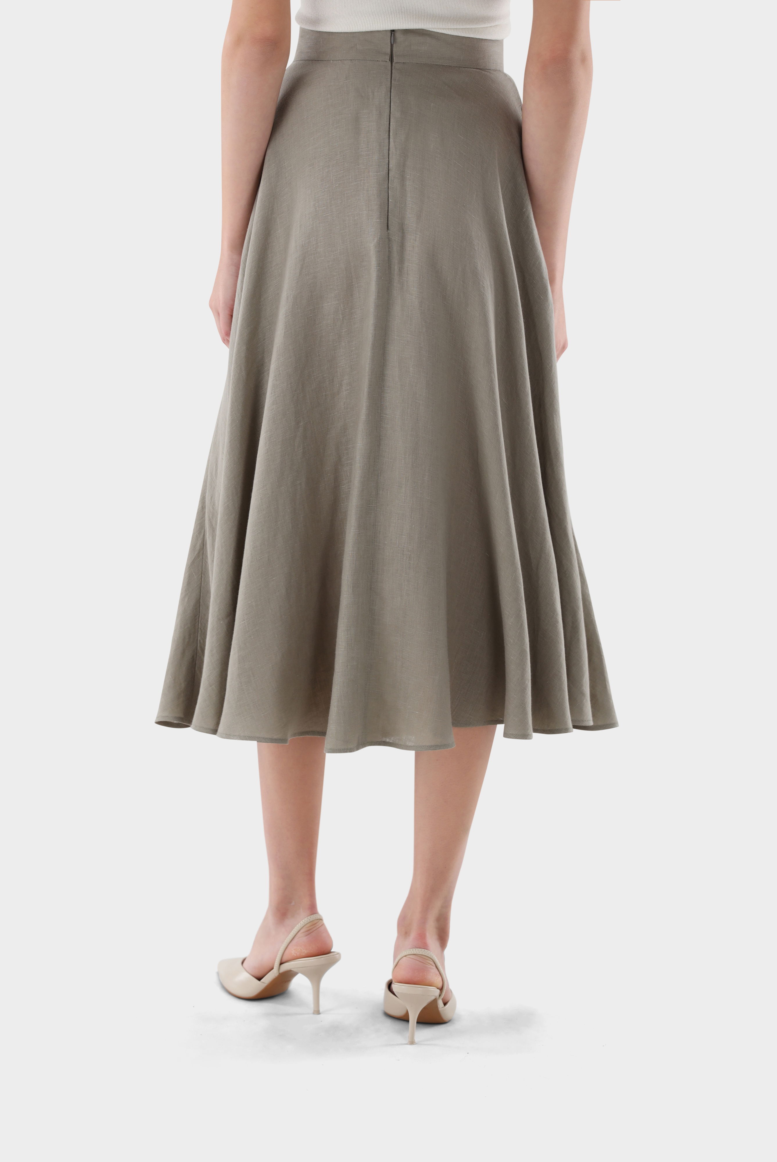 Der ausgestellte Midi-Rock verfügt über einen großen Saumumfang und schwingt dadurch besonders schön. Gefertigt aus hochwertigem und besonders weichem Leinen, ist er besonders atmungsaktiv und leicht kühlend. Der Rock eignet sich ideal für warme Sommertage und lässt sich gut zu einem Casual oder Chicen Sommer Look kombinieren