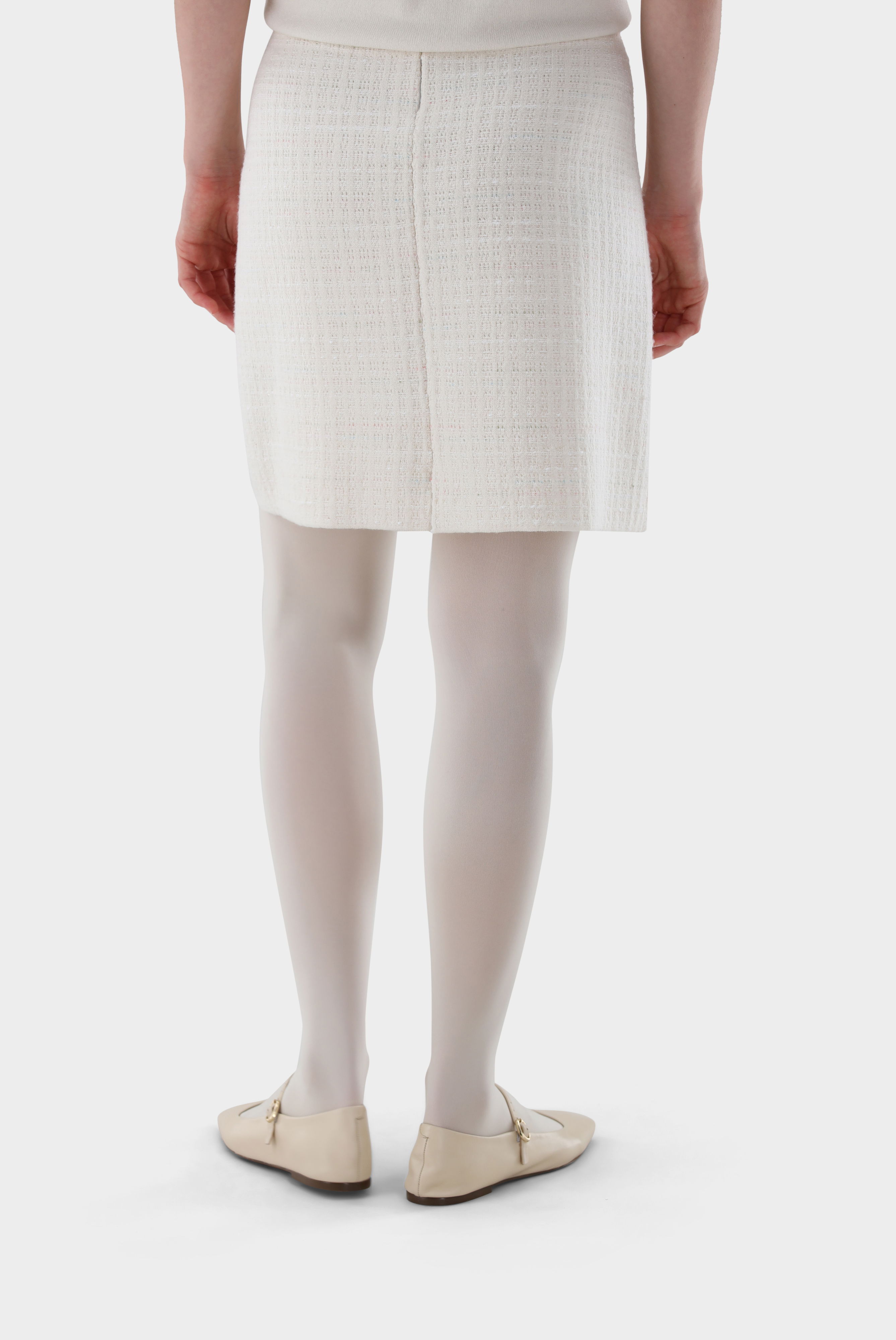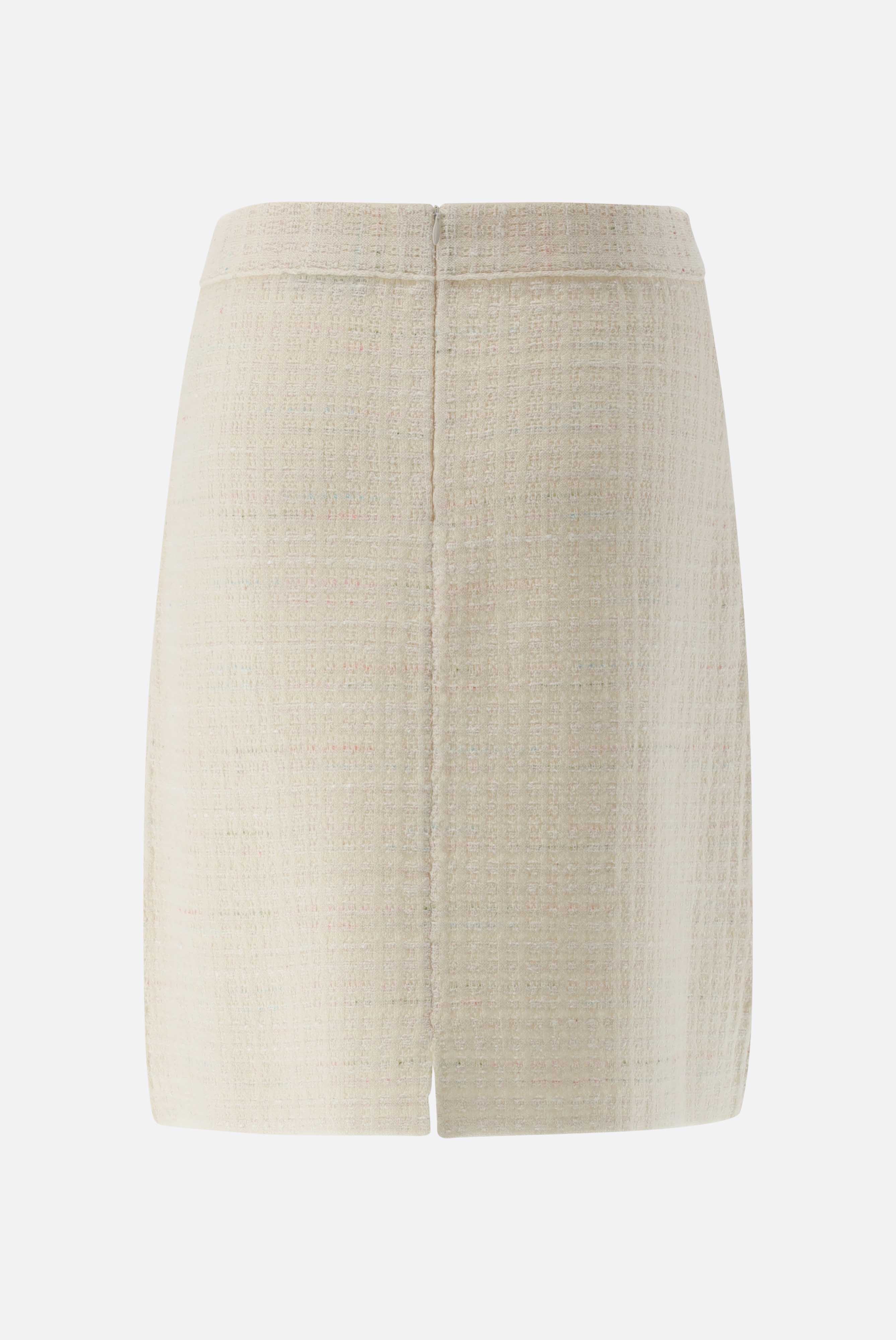 Der Satino-Minirock mit leicht ausgestelltem Schnitt und gestricktem Tweed, bietet sowohl Komfort als auch Bewegungsfreiheit. Ideal für verschiedene Anlässe, lässt sich dieser Rock leicht mit verschiedenen Oberteilen kombinieren und verleiht jedem Outfit eine elegante Note.