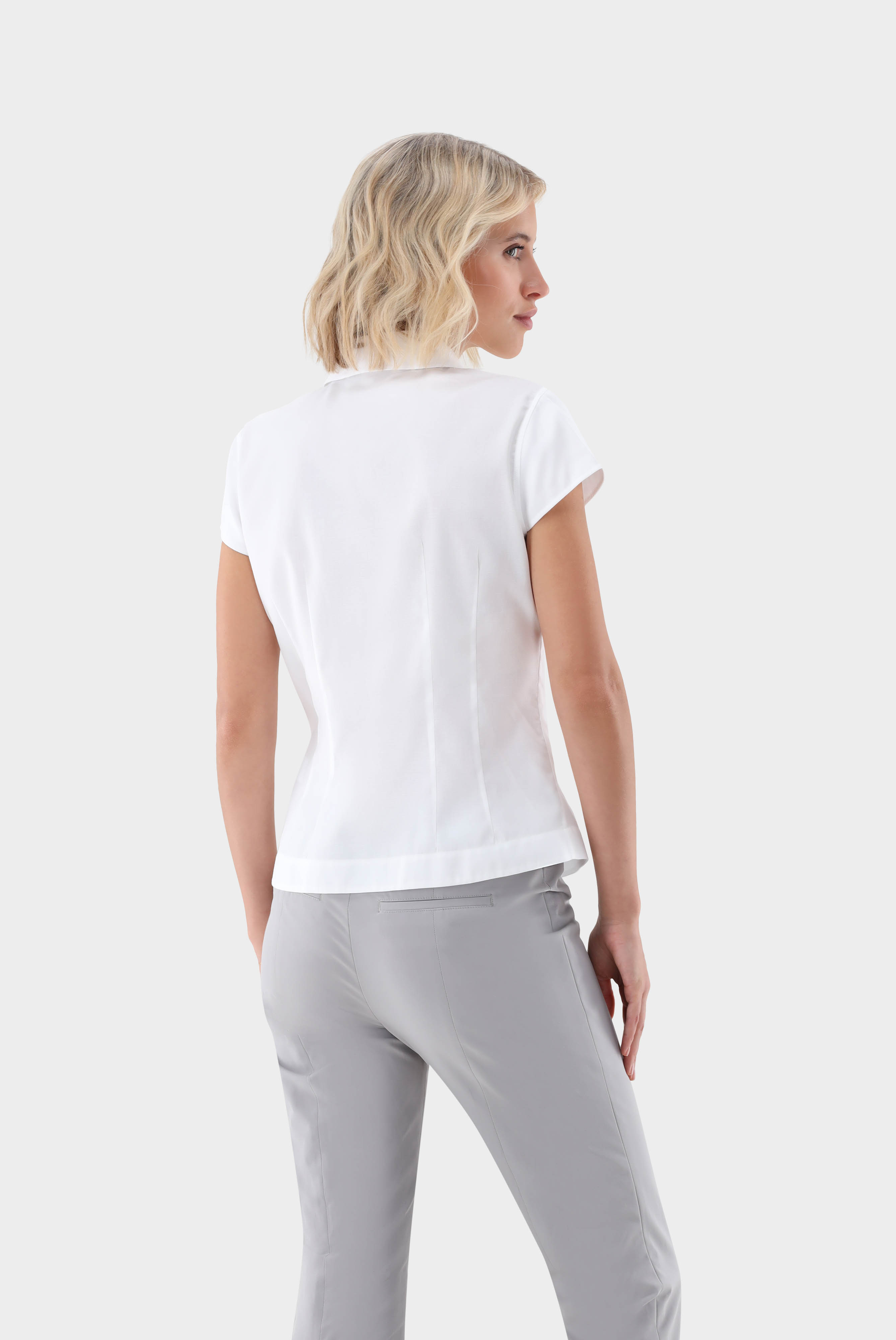 Erleben Sie puren Tragekomfort mit unserer Natté Kurzarm Hemdbluse, hergestellt aus hochwertiger Baumwolle.