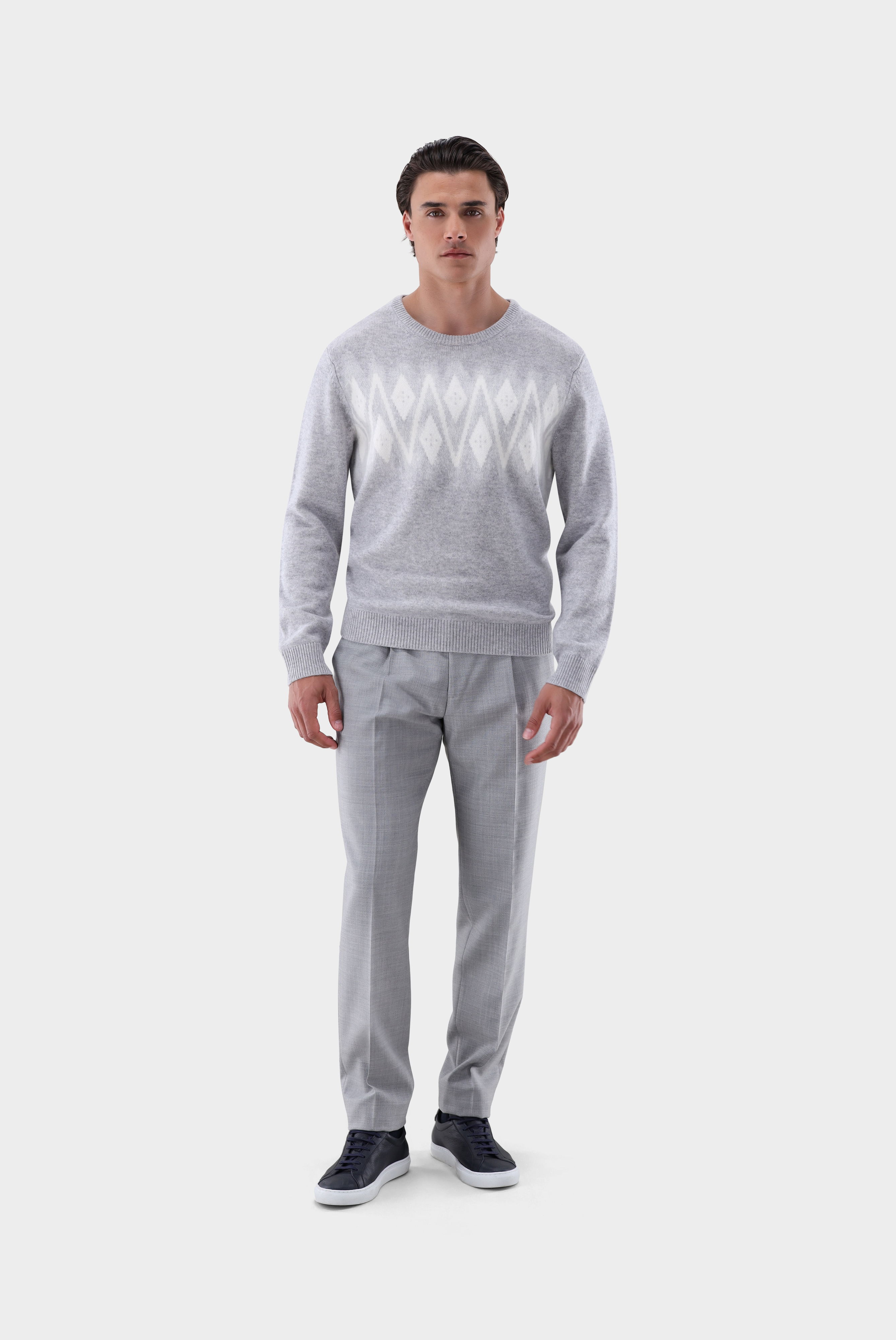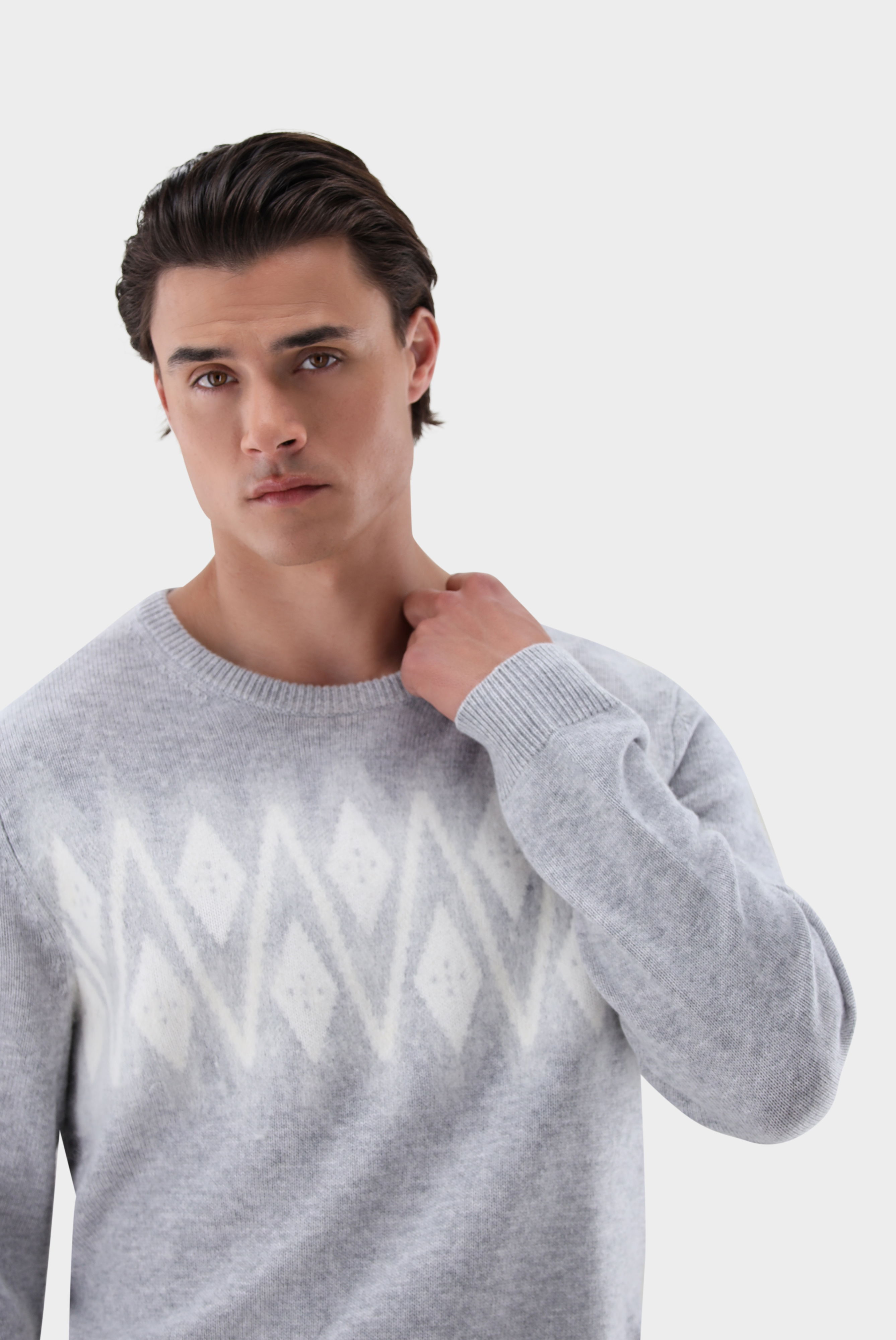 Ikonischer Norweger-Pullover mit kuscheligem Kaschmir-Anteil und aufwendig gearbeitetem Needle-Punch-Muster auf der Brust. Die weiche, wärmende Materialmischung bietet höchsten Tragekomfort und macht das Modell ideal für kühle Tage. Das traditionelle Design mit Rundhals erhält durch die besondere Strukturtechnik eine moderne Note. Perfekt für stilvolle Winter-Looks, die zeitlose Muster mit luxuriöser Haptik verbinden.