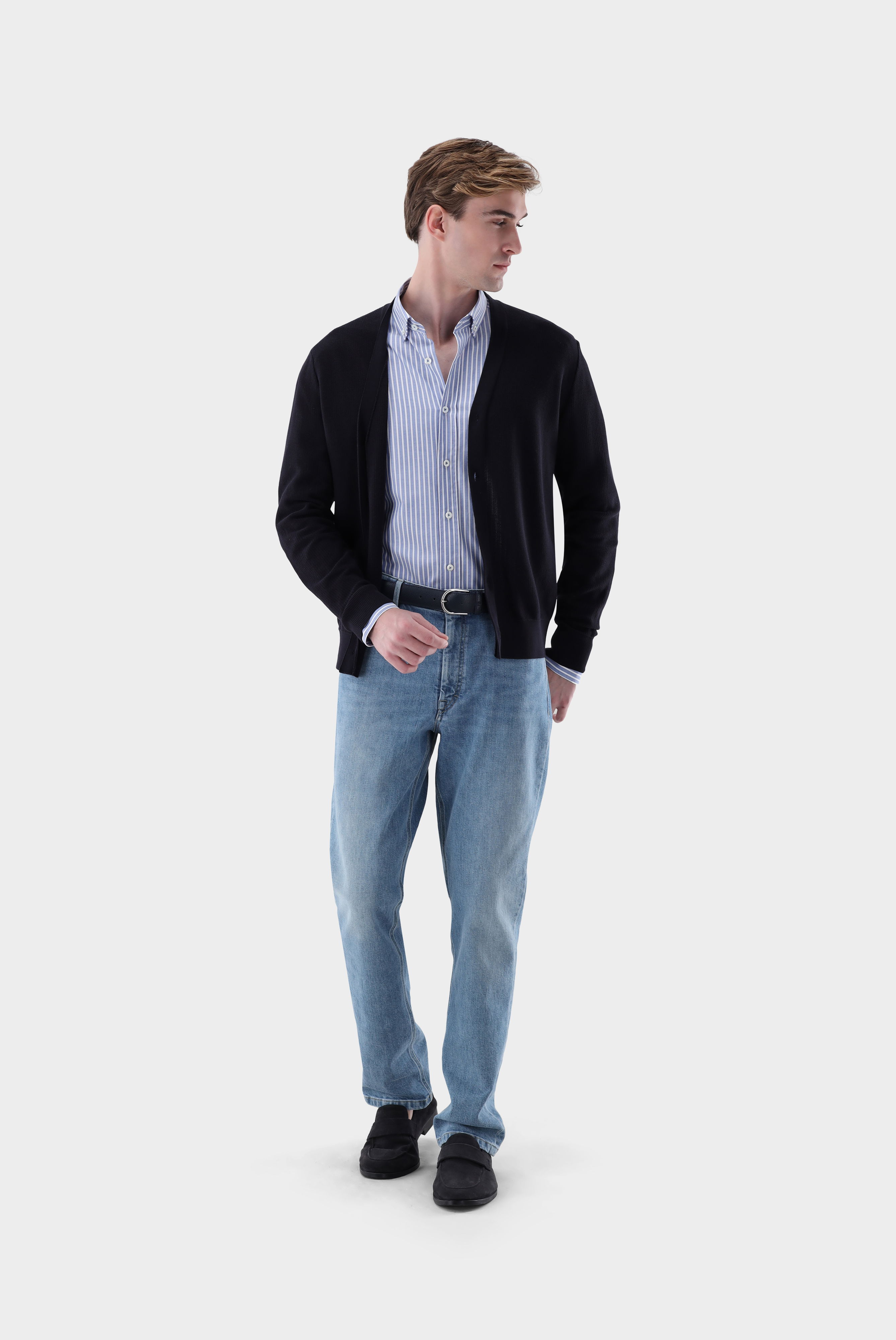 Look aus Oxfordhemd mit Streifen Tailor Fit