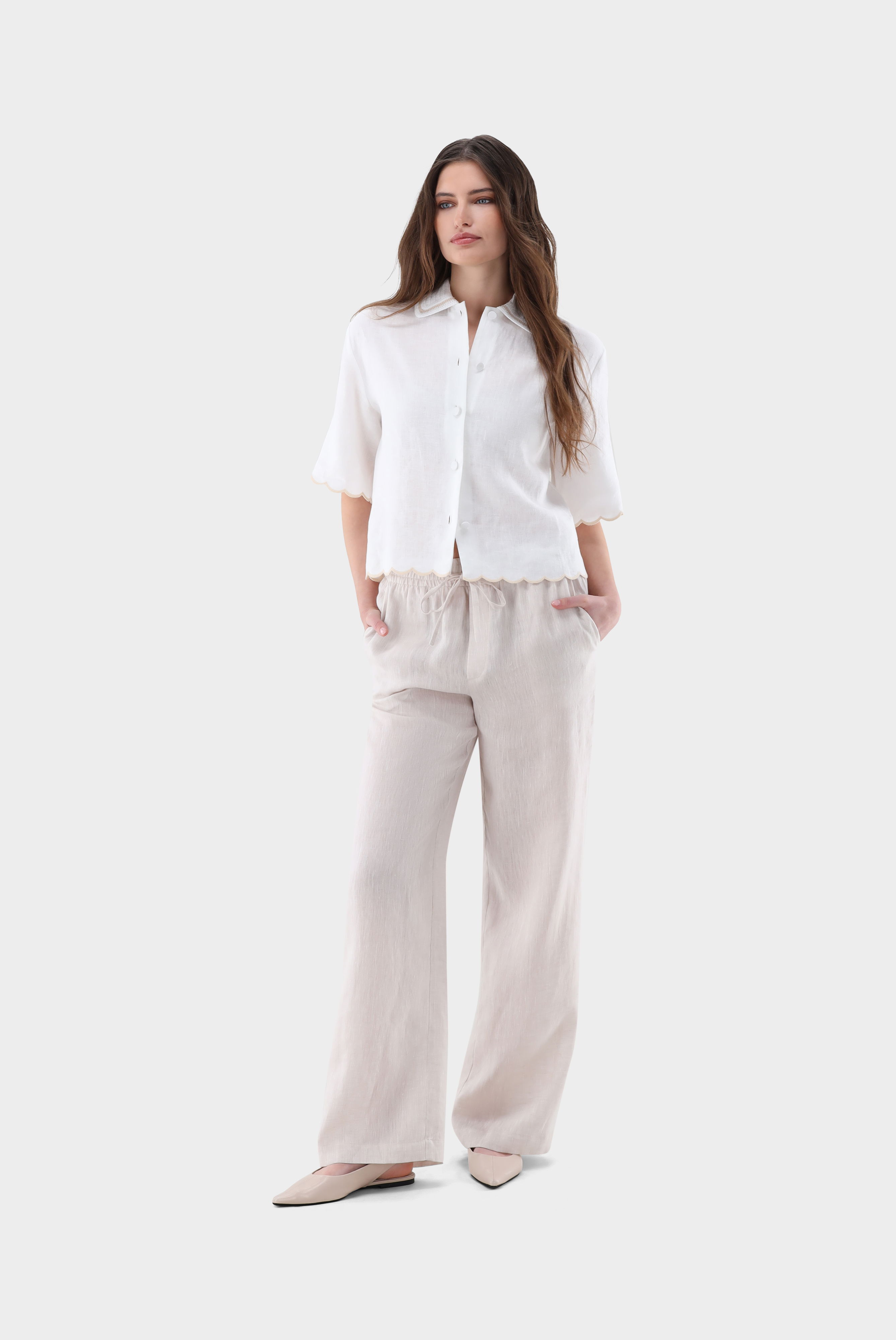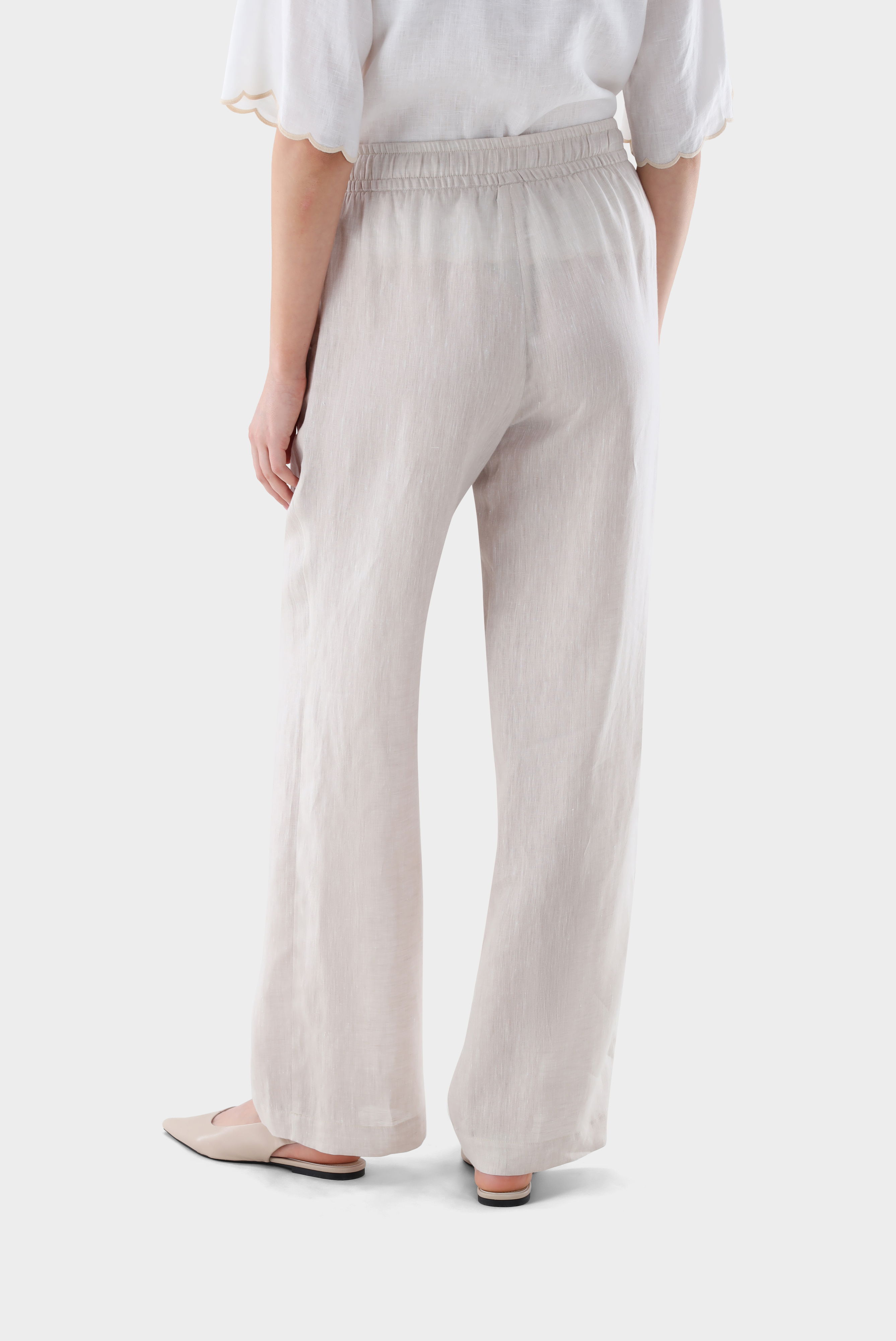 Diese Palazzo-Hose besticht durch ihre locker fallende Silhouette und einen elastischen Bund für optimalen Komfort. Seitliche Eingrifftaschen bieten praktische Funktionalität, während das weiche, garngefärbte Leinen für eine angenehme Haptik und luftigen Tragekomfort sorgt. Das fließende Material verleiht der Hose eine elegante, entspannte Ausstrahlung. Vielseitig kombinierbar, eignet sie sich ideal für sommerliche Casual-, Freizeit- und gepflegte Smart-Casual-Looks.