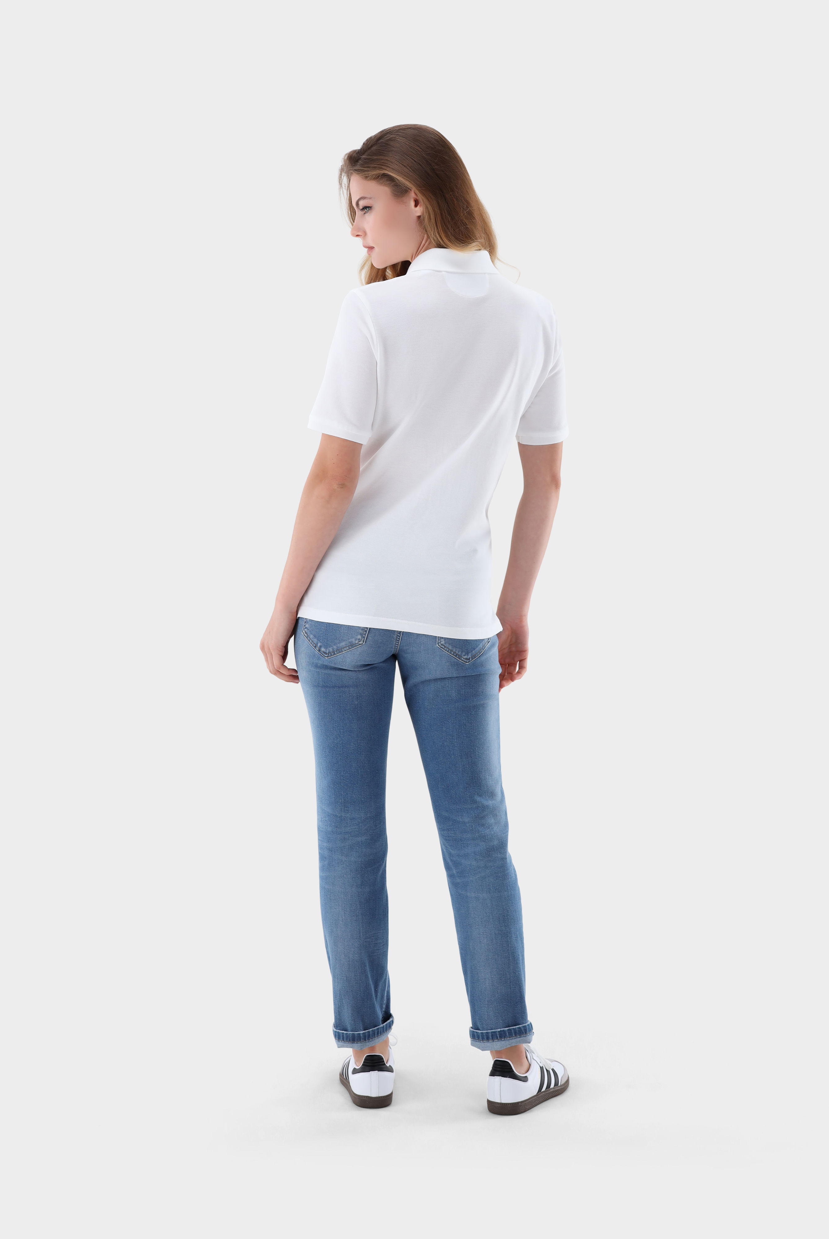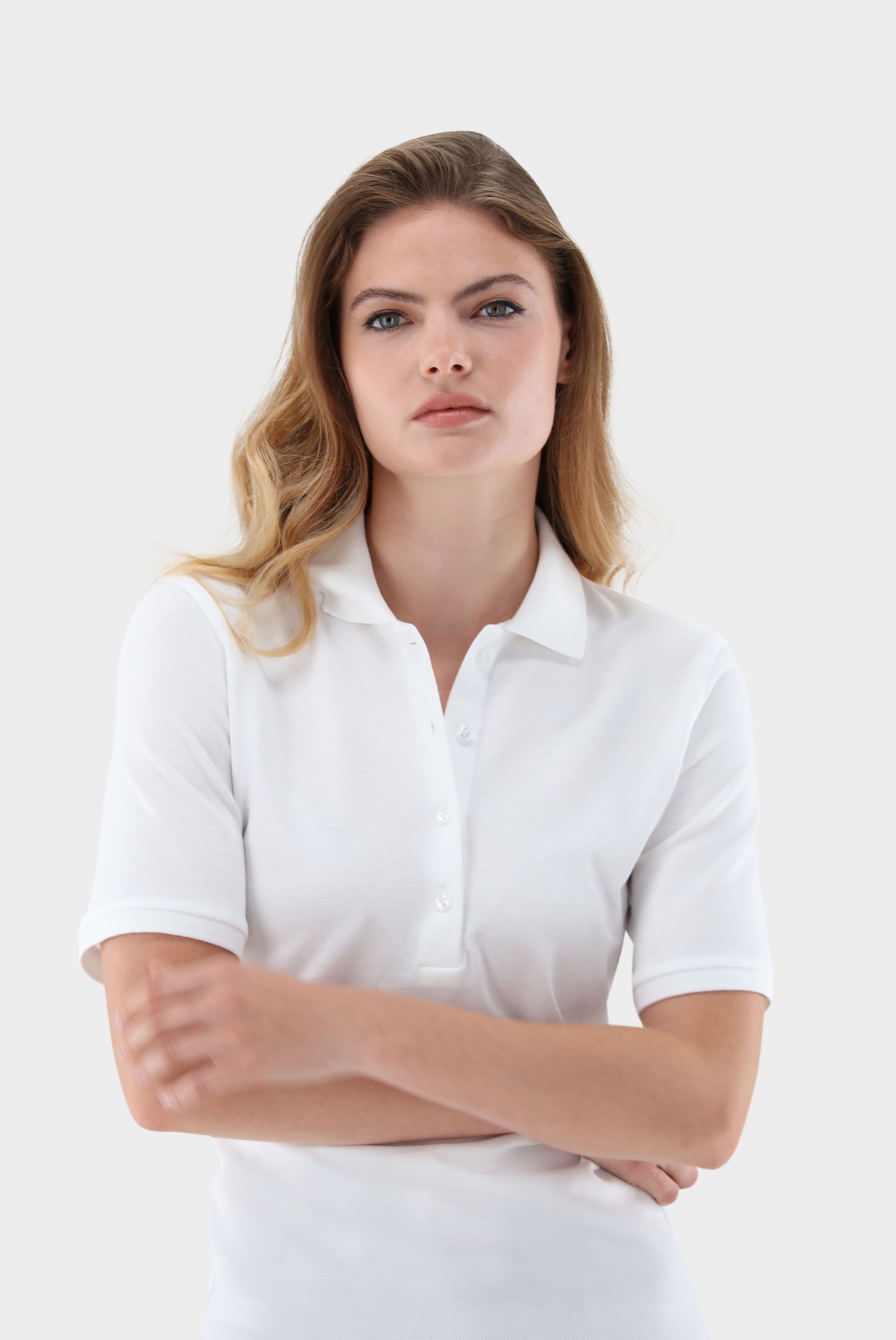Dieses klassische Damen Poloshirt im taillierten Schnitt besteht aus hochwertigem Piqué. Das Poloshirt überzeugt mit kurzen Ärmeln und Polokragen mit 4 Knöpfen. Ideal für Business- und Casual-Looks – ein stilvoller Klassiker für jeden Tag.