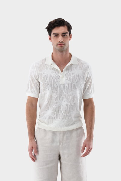 Look aus Poloshirt aus Ajoure Strick mit Palmen Design