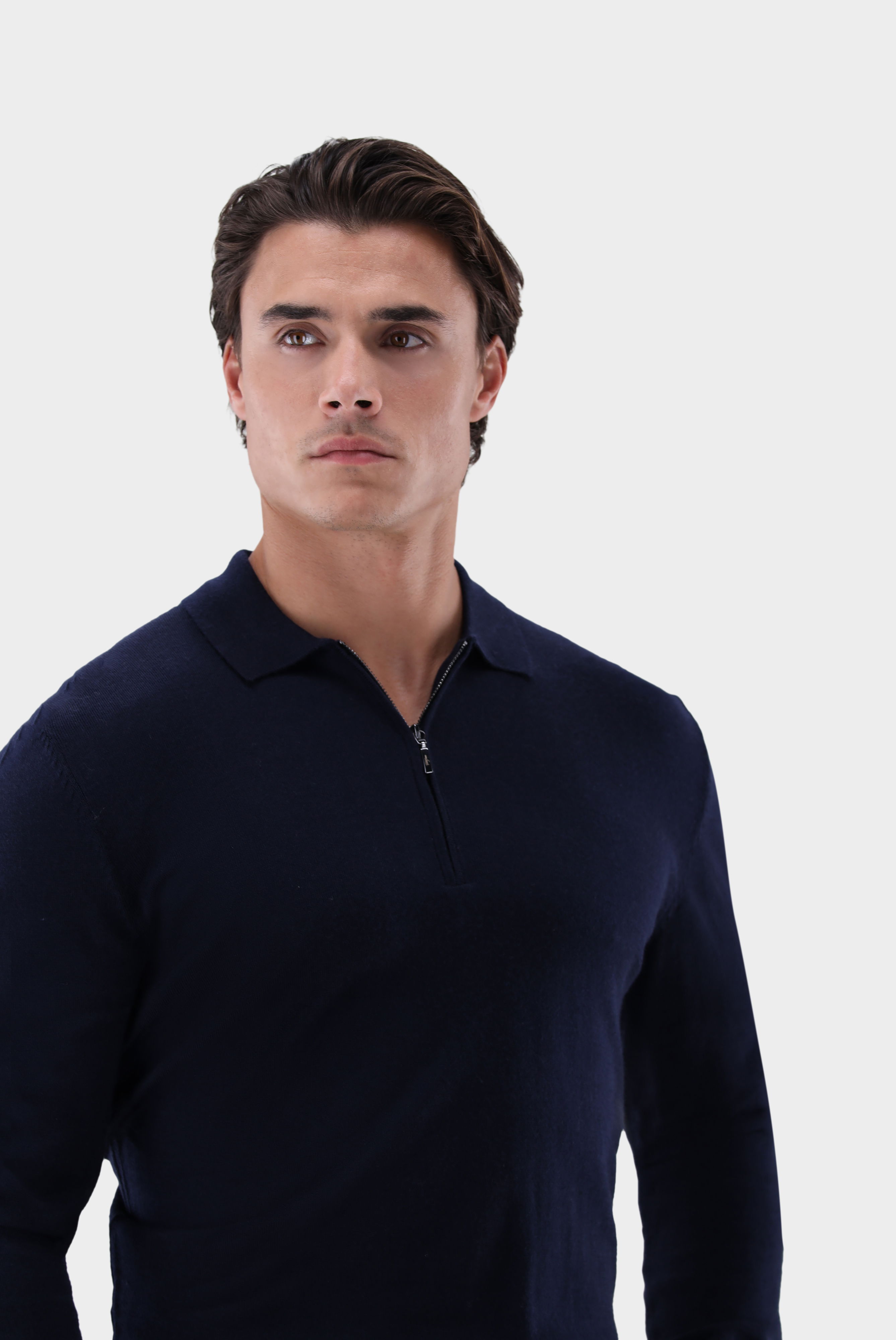 Langarm mit Reißverschluss aus merzerisierter Wolle