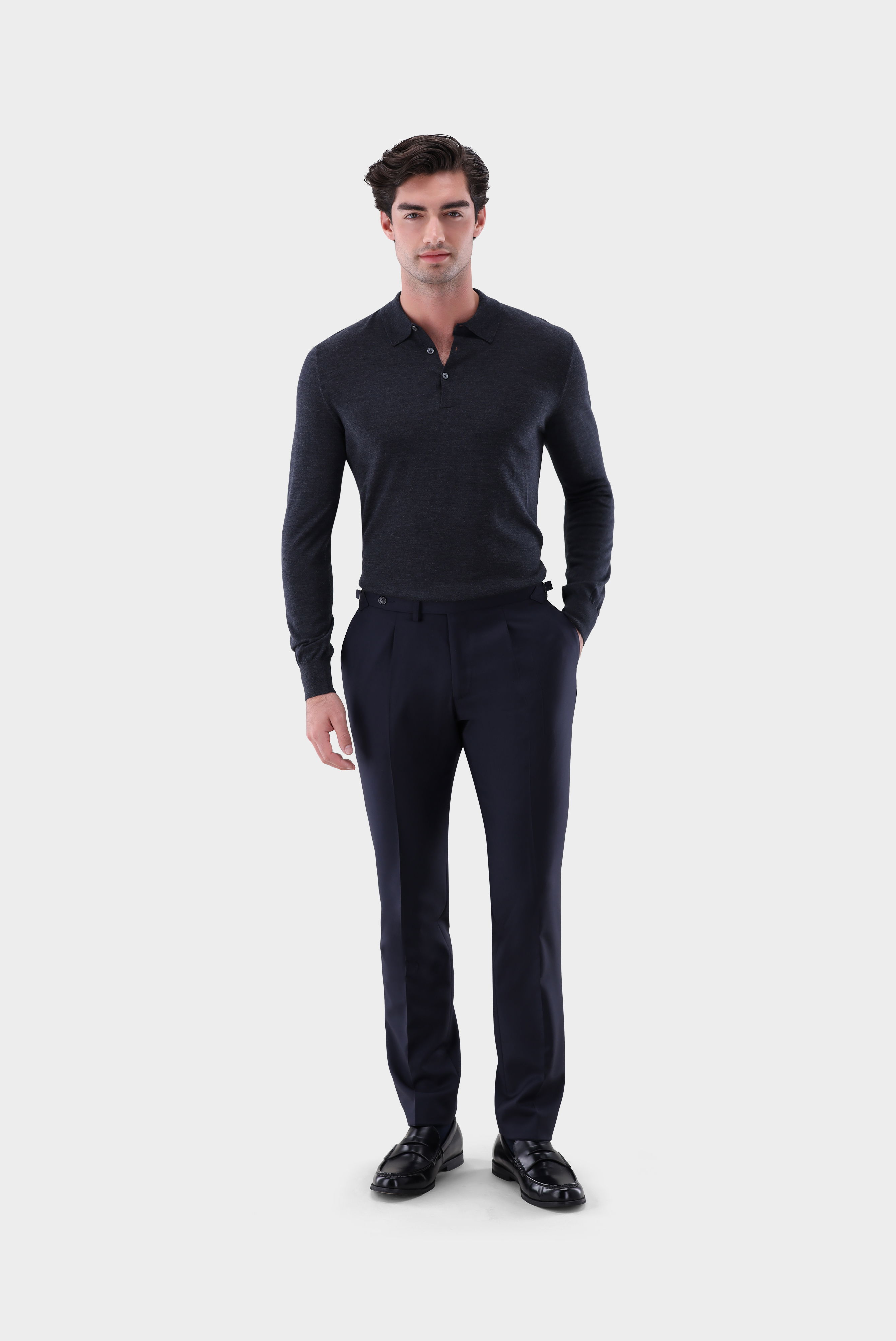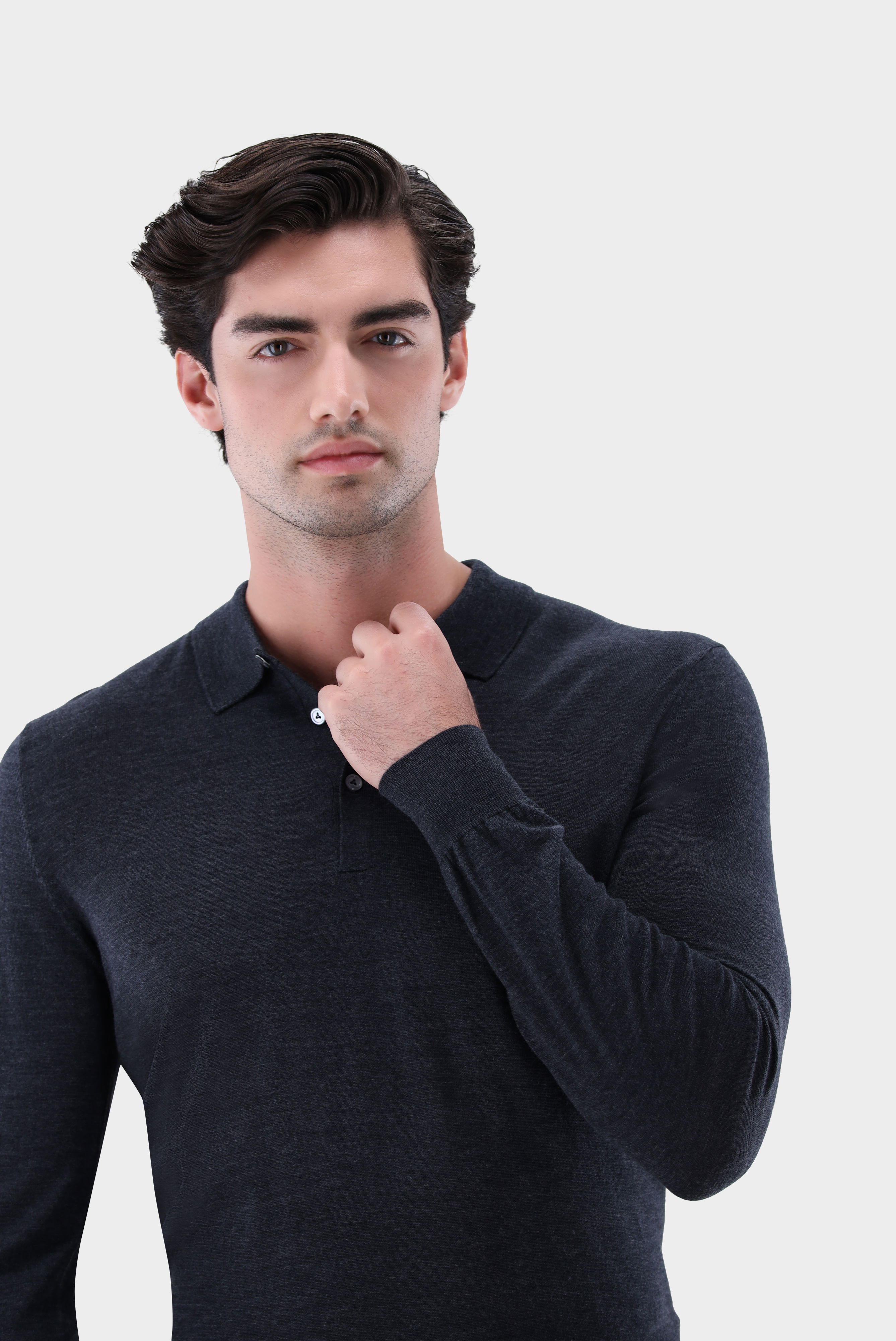Das elegante Poloshirt sorgt nicht nur für angenehmen Tragekomfort, sondern verleiht dem Poloshirt auch eine edle Ausstrahlung. Der Kragen fügt dem Shirt eine zeitgemäße Note hinzu und macht es zu einer stilvollen Wahl. Die Schurwolle sorgt für Wärme ist gleichzeitig aber so fein, dass sie auch gut unter einem Sakko oder eine Jacke tragbar ist. Ob direkt auf der Haut als Poloshirt, oder in formelleren Looks als Pullover mit einem Hemd darunter, dieses Poloshirt bietet Vielseitigkeit und Eleganz in einem.