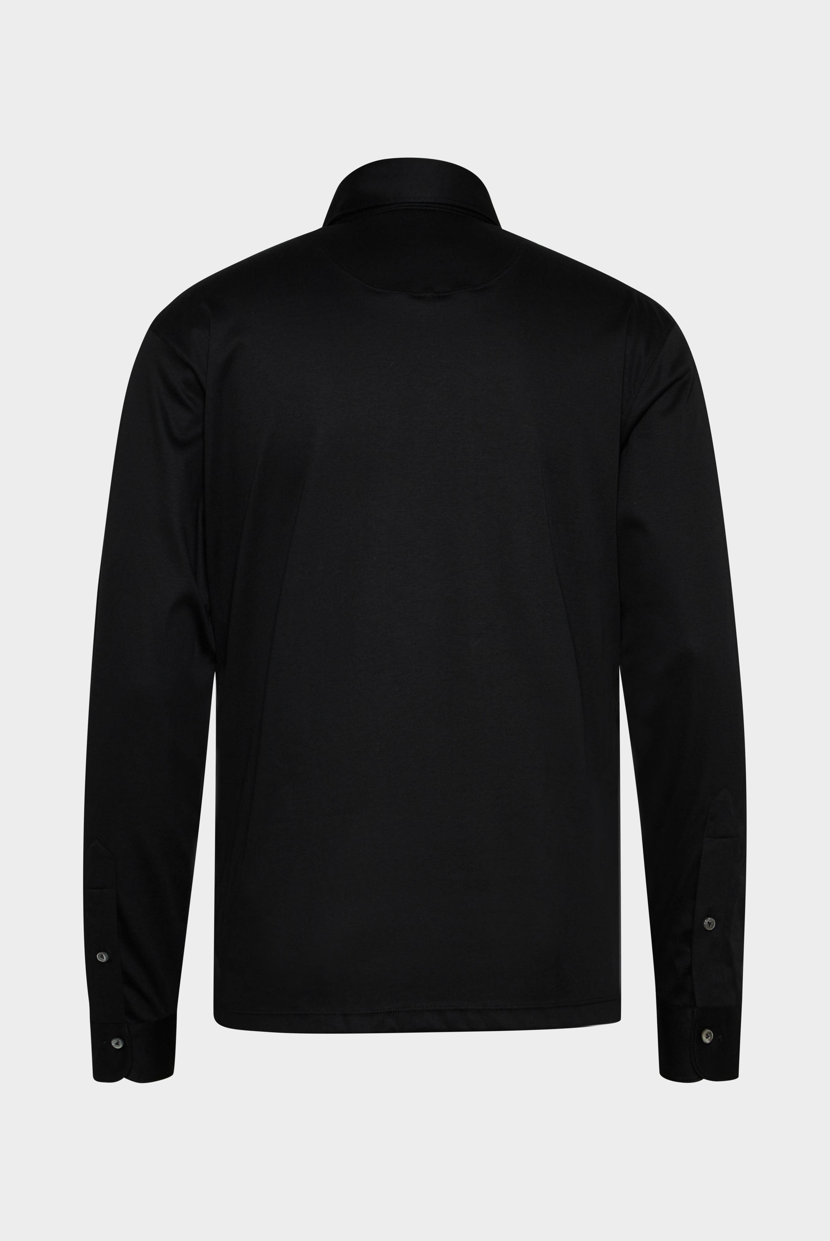 Langarm Poloshirt aus Swiss Cotton Jersey. Die Swiss Cotton Jersey Qualität, gefertigt aus besonders hochwertigem und weichem Interlock-Jersey mit Natural-Stretch, sorgt für ein luxuriöses Tragegefühl. Die glänzende Optik verkörpert einen edlen Look.
