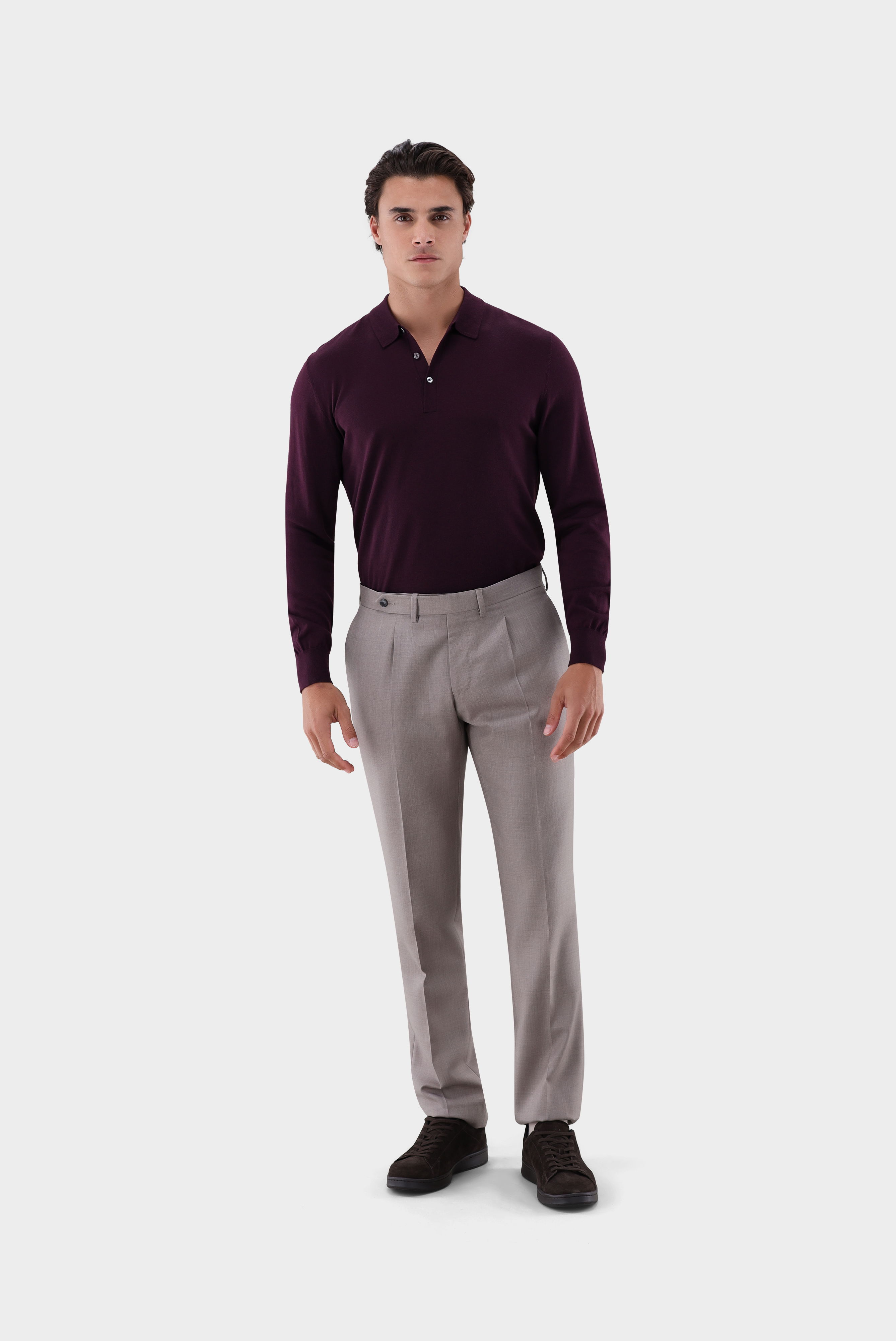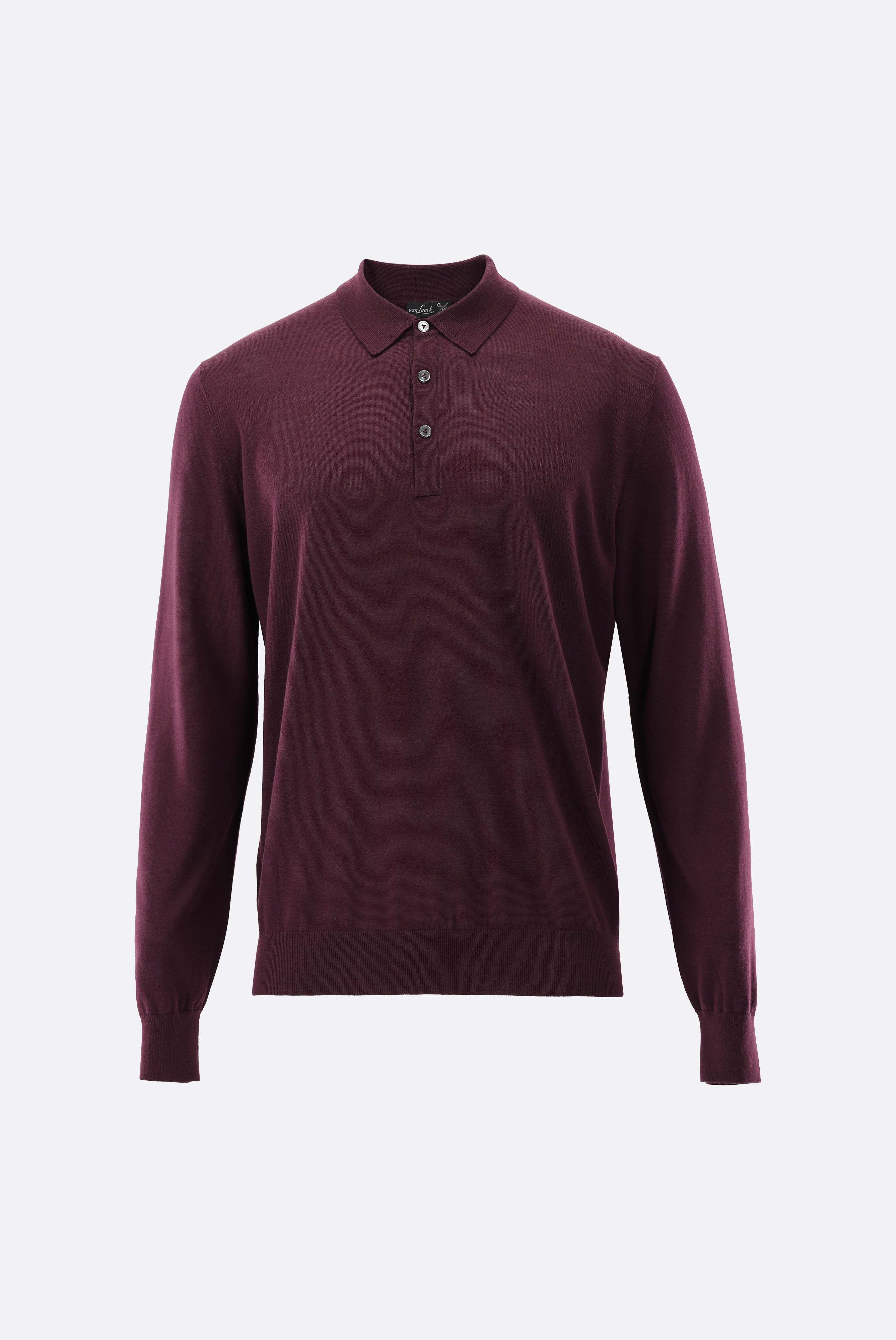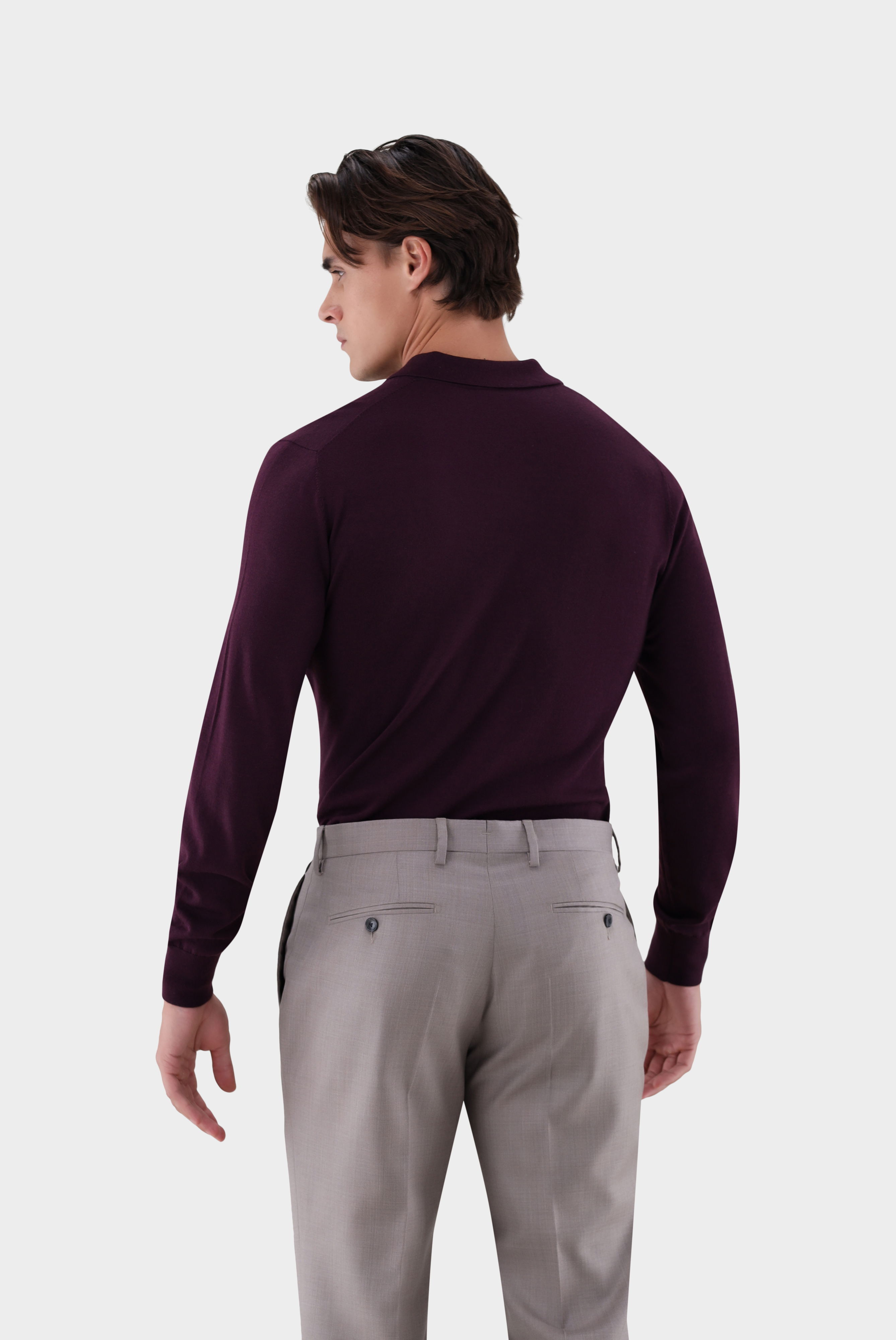 Look aus Poloshirt mit Langarm gestrickt aus Merinowolle