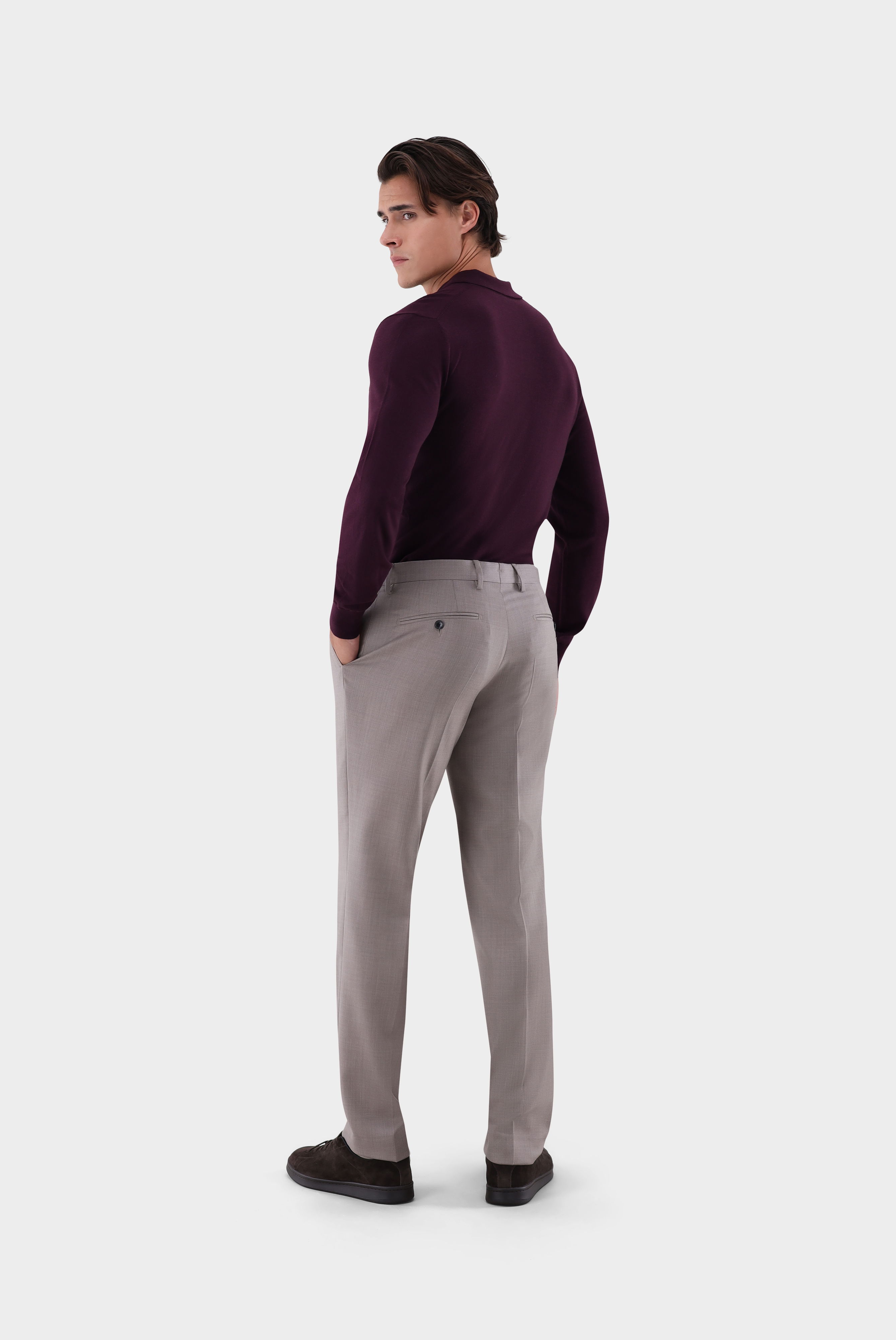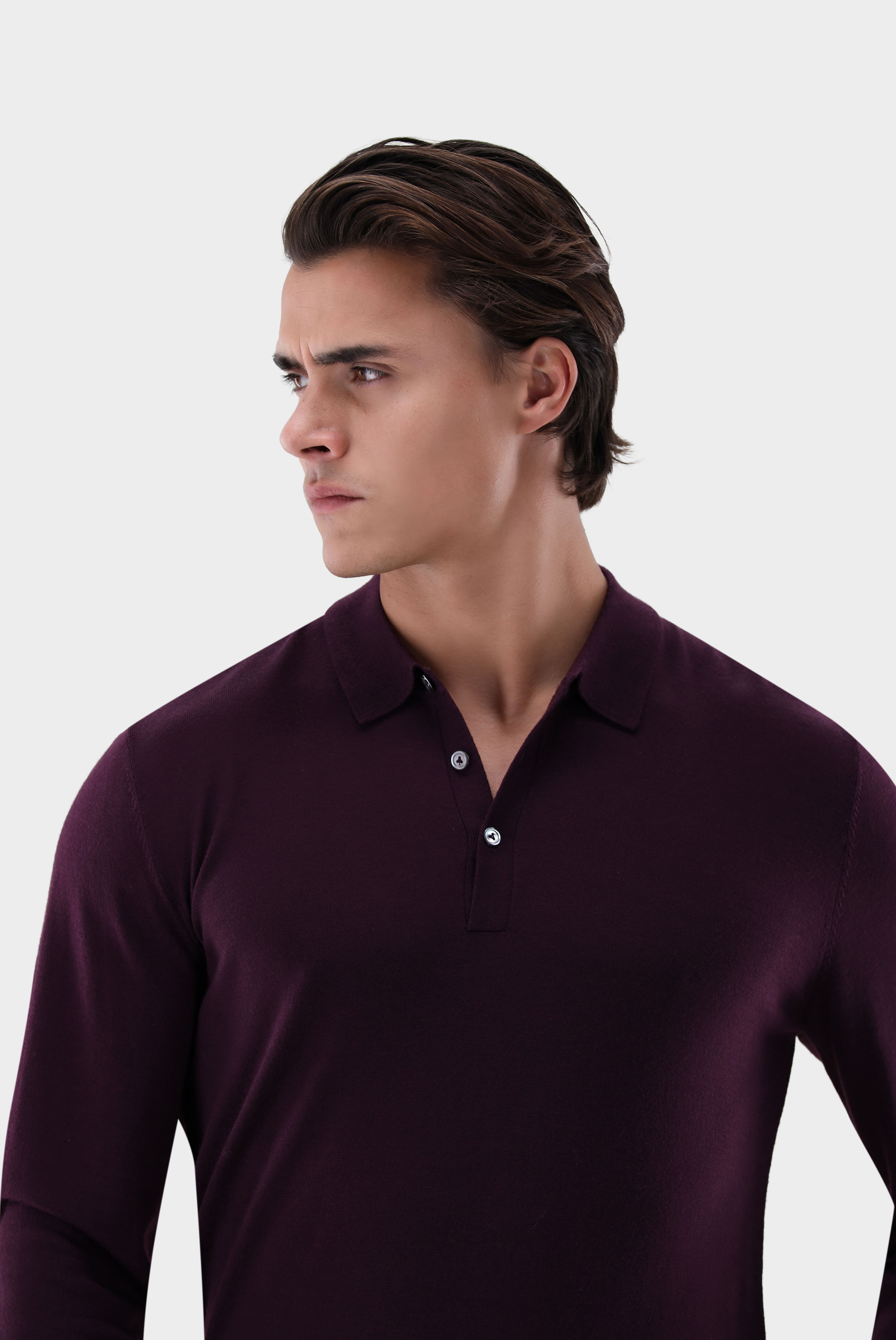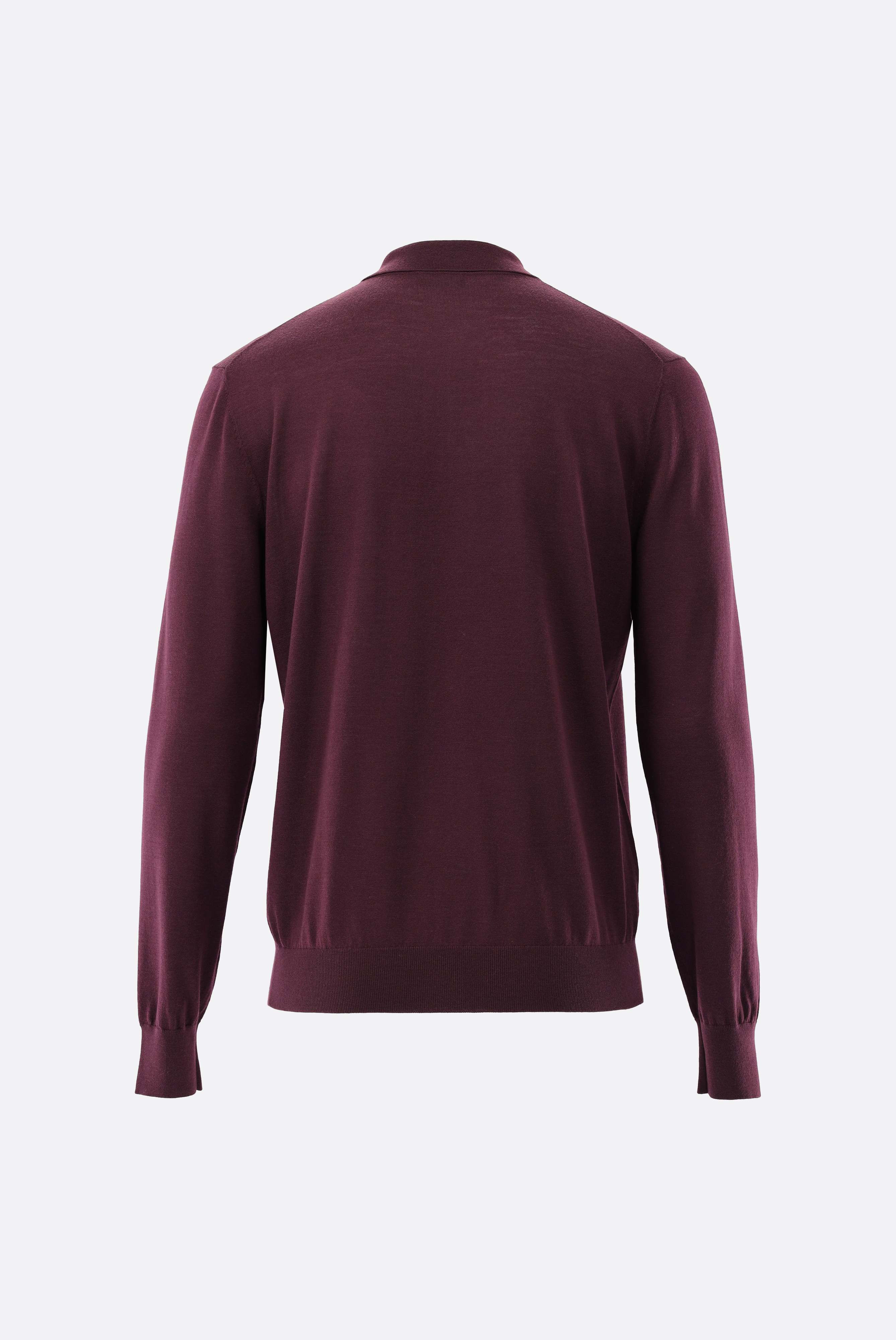 Look aus Poloshirt mit Langarm gestrickt aus Merinowolle