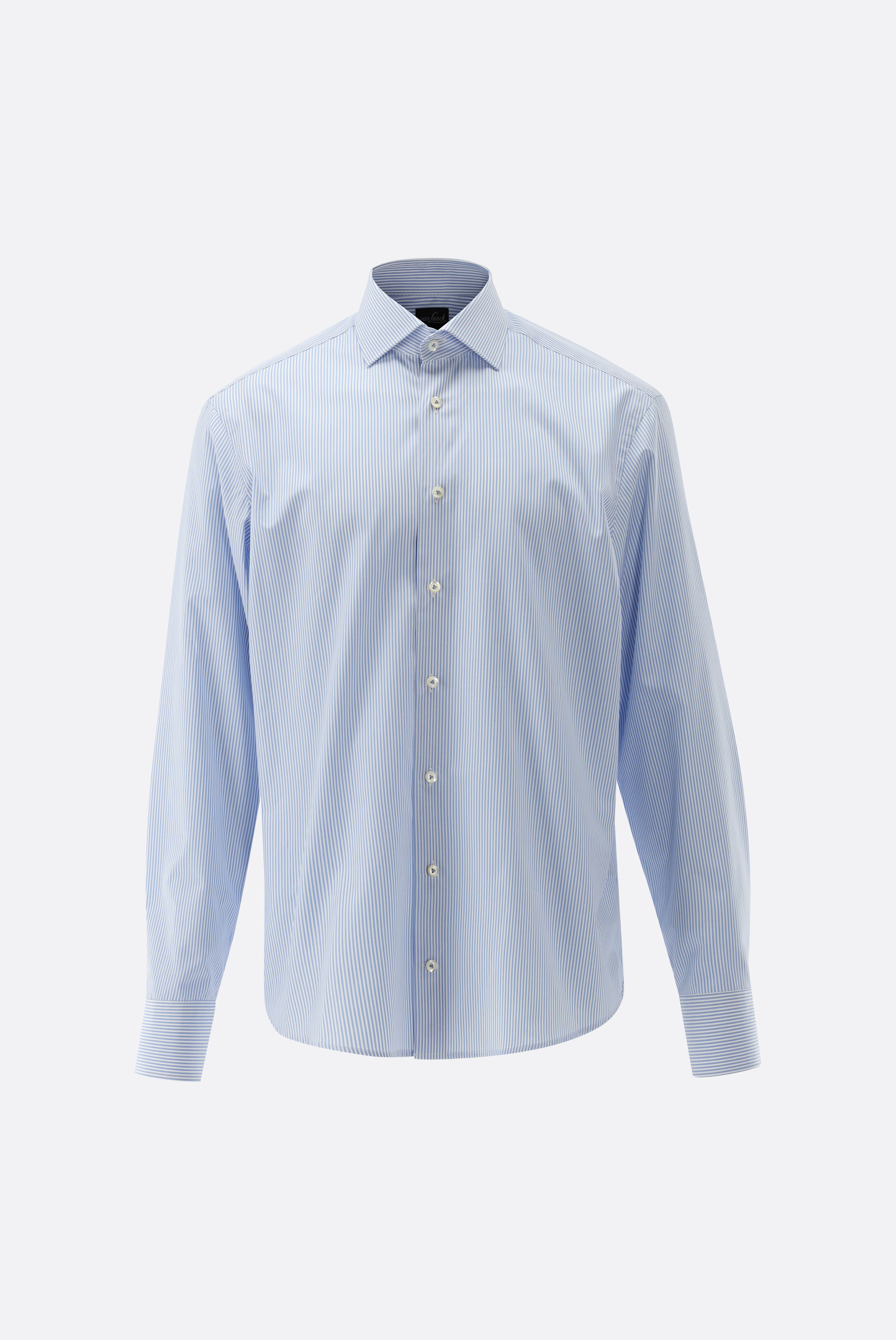 Dieses gestreifte van Laack Hemd erweitert Ihren Kleiderschrank um ein vielseitig einsetzbares Must-Have. Es ist ein perfekter Begleiter, der sich ideal für Freizeit, Homeoffice, Büro oder Veranstaltungen eignet und zu jeder Gelegenheit getragen werden kann. Die Webart Popeline aus hochwertiger Baumwolle ist mit hoher Dichte gewebt und daher besonders widerstandsfähig, was sie ideal für pflegeleichte Business-Outfits macht. Im Tailor Fit Schnitt bietet das Business Hemd hohen Tragekomfort. Das Streifen-Muster, der Haifischkragen und die Sportmanschetten setzen optische Akzente.