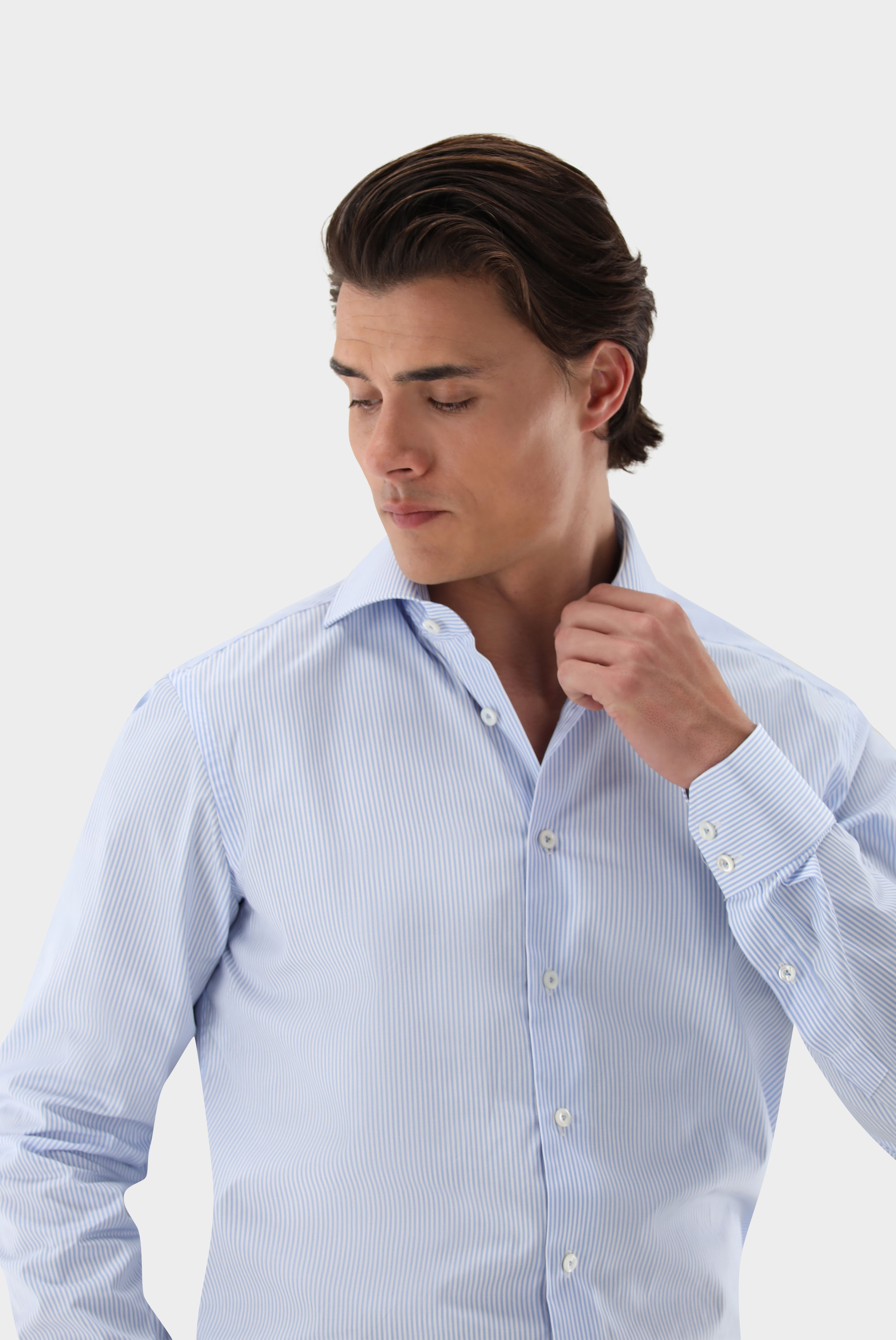 Dieses bügelfreie Popeline-Hemd erweitert Ihren Kleiderschrank um ein vielseitig einsetzbares Must-Have. Es ist ein perfekter Begleiter, der sich ideal für Freizeit, Homeoffice, Büro oder Veranstaltungen eignet und zu jeder Gelegenheit getragen werden kann. Der besonders hochwertig gewebte Popeline-Stoff besteht aus feiner Baumwolle, ist bequem zu tragen und dank seiner schräg verlaufenden Struktur sehr griffig. Im Tailor-Fit-Schnitt bietet das Business-Hemd hohen Tragekomfort. Der Haifischkragen und die Sportmanschetten setzen optische Akzente.