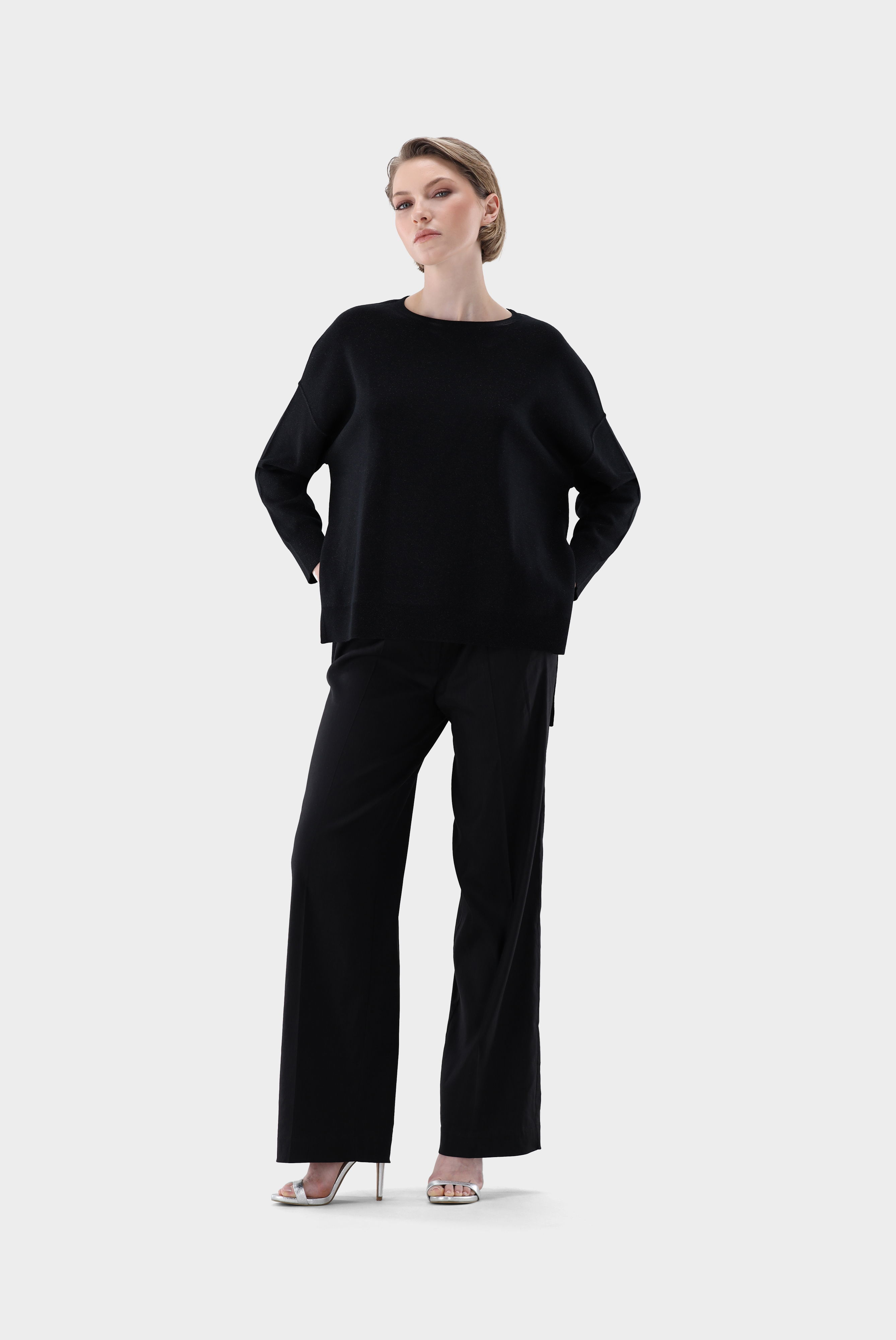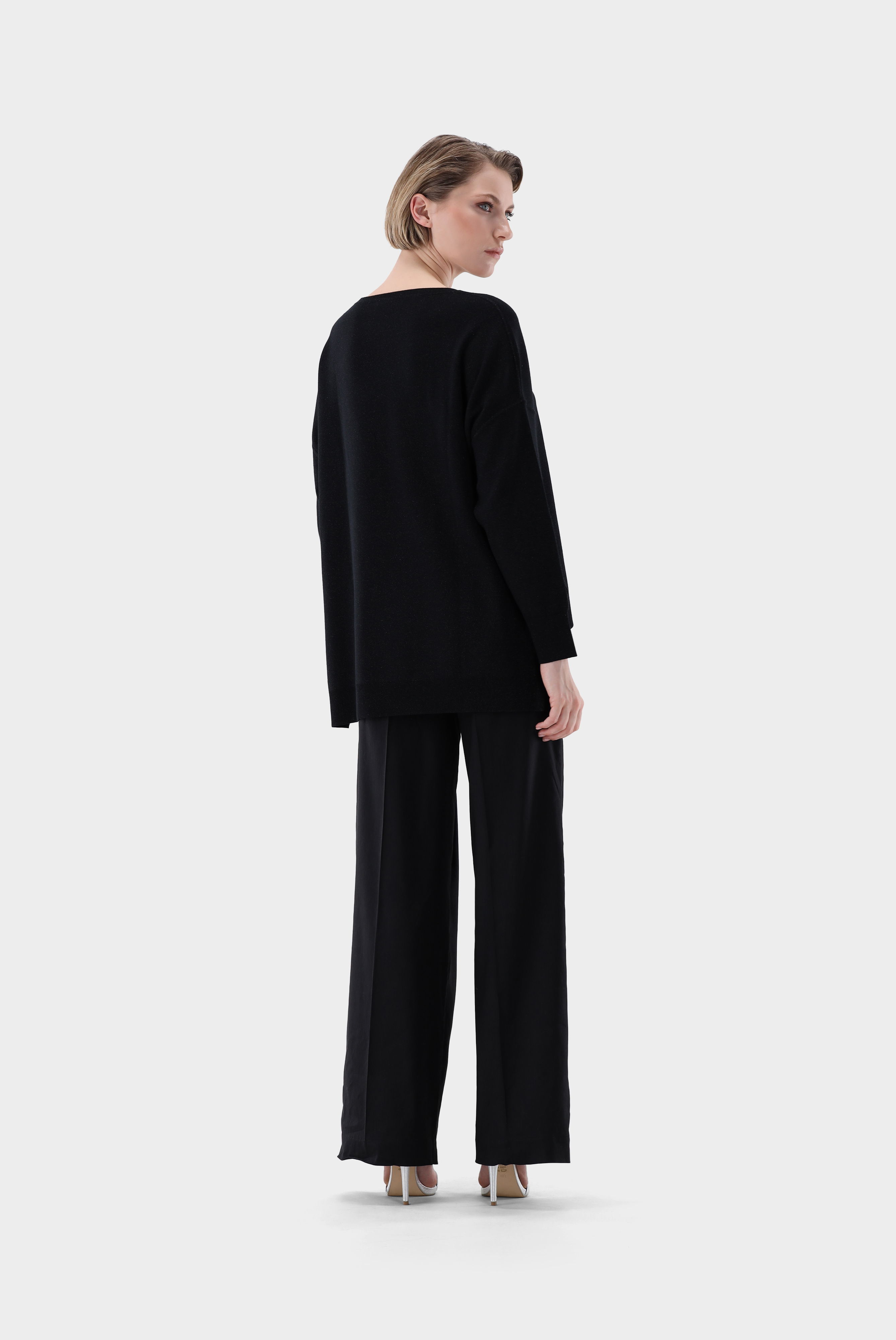 Look aus Pullover aus Merinowolle mit Glitzer Effekt