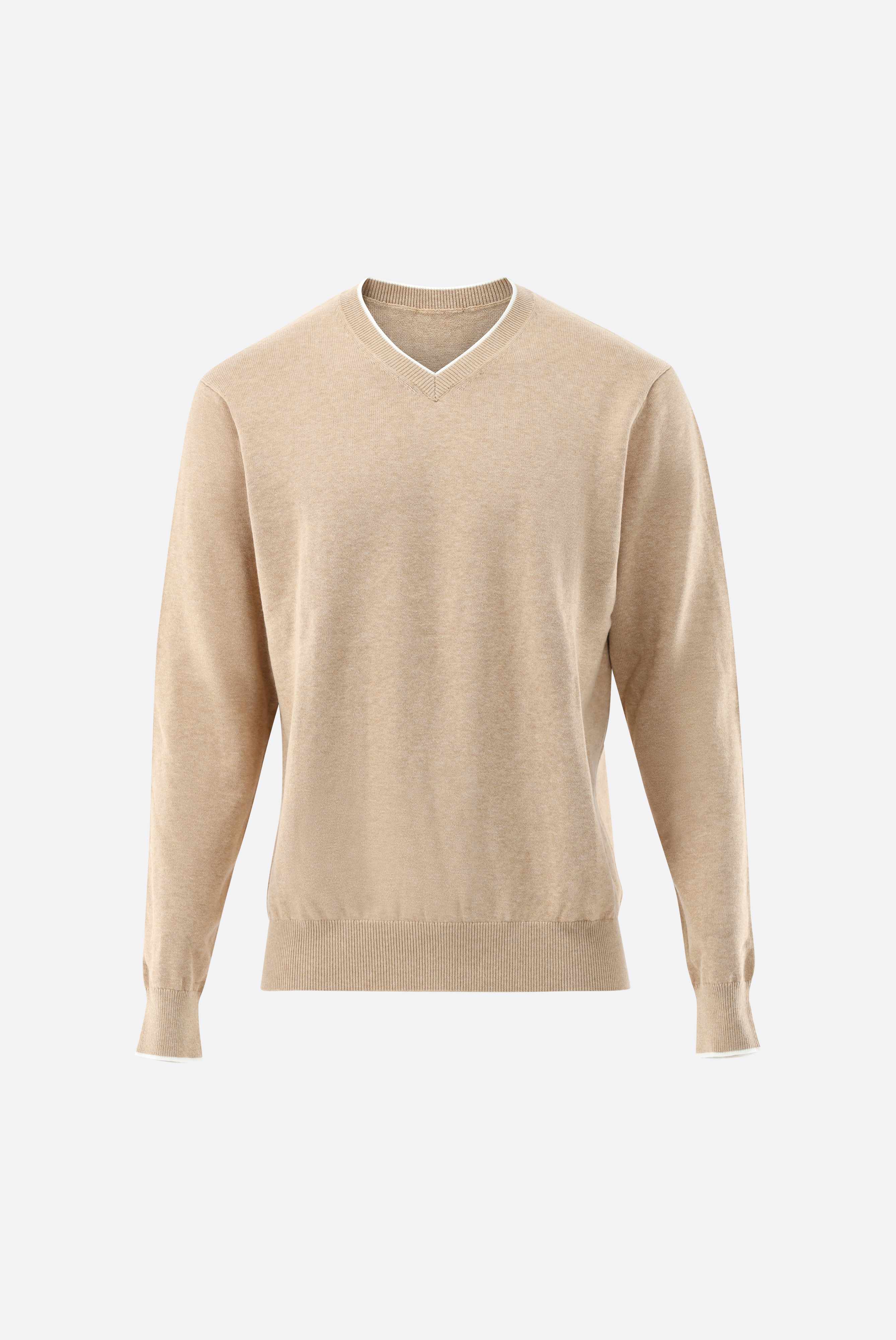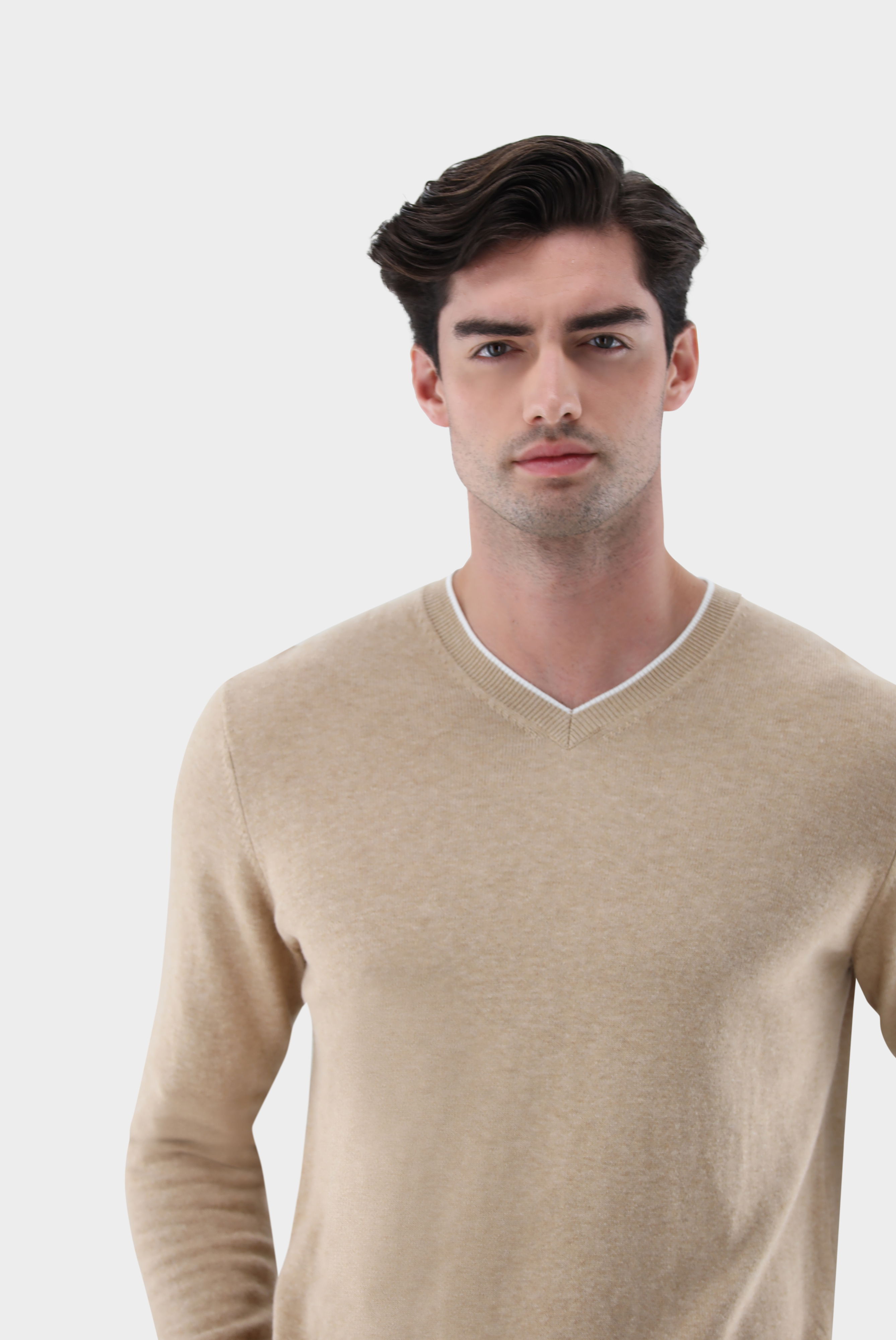 Look aus Pullover mit V-Ausschnitt mit Kaschmir und Baumwolle