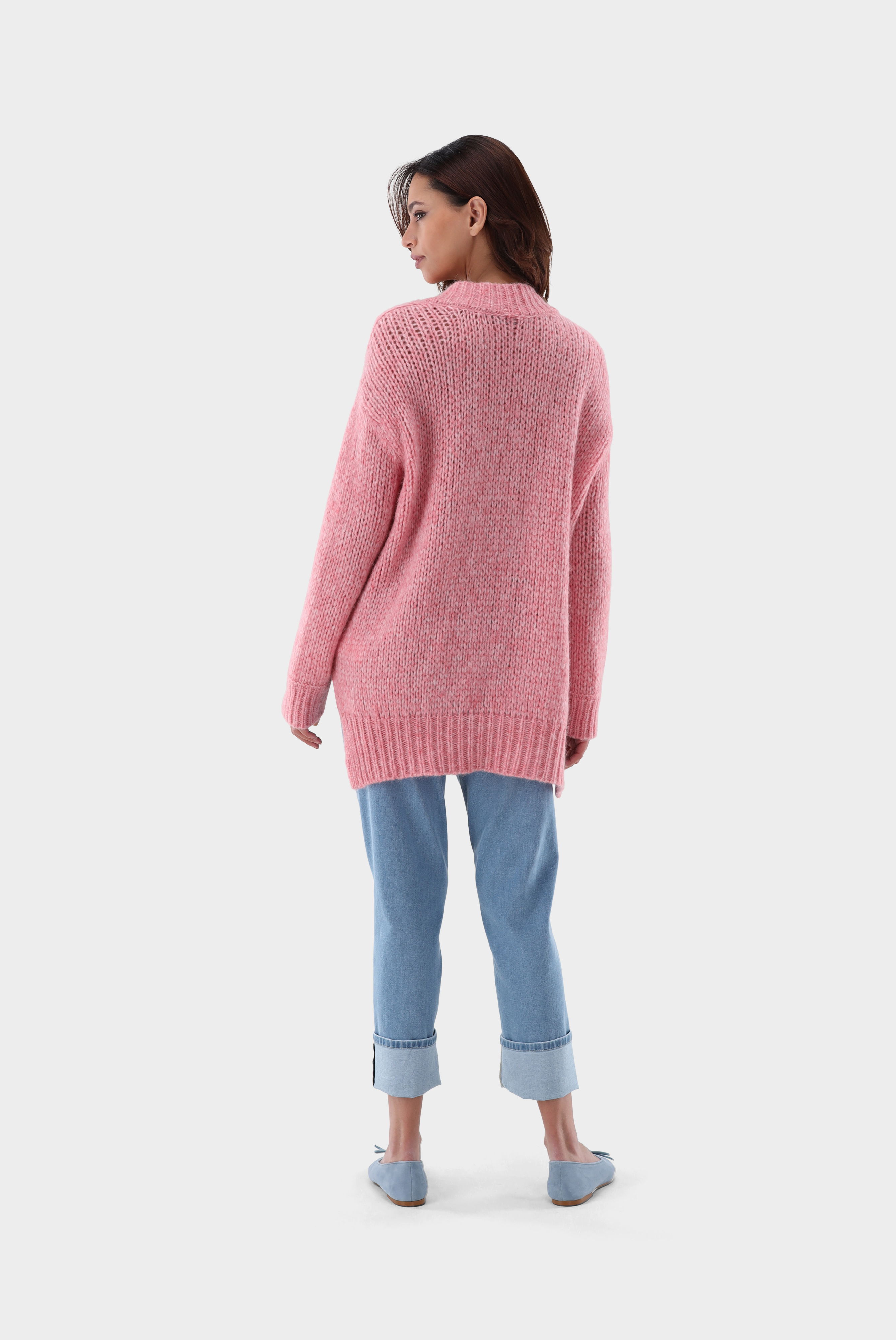 Der Oversized Pullover mit V-Ausschnitt aus einem superweichen Mischgewebe mit Alpaca verleiht mit seinem weiten V-Ausschnitt und den langen Schlitzen an den Seiten Ihrem Look eine moderne und stilvolle Note. Der Pullover ist duch seine leichte Verarbeitung auch im Sommer tragbar und bietet wärme in kühlen Sommer- und Frühlings-Nächten. Der Pullover verfügt über einen Oversized Schnitt, der locker und bequem fällt. Die langen Schlitze an den Seiten verleihen dem Pullover eine interessante und feminine Note, während der V-Ausschnitt ideal mit einer Bluse oder einem T-Shirt kombinierbar ist. Ob zu Jeans, Leggings oder einem Rock, dieser Oversized Pullover ist ein vielseitiges Kleidungsstück, das Sie sowohl in Ihrer Freizeit als auch bei besonderen Anlässen begleiten wird.