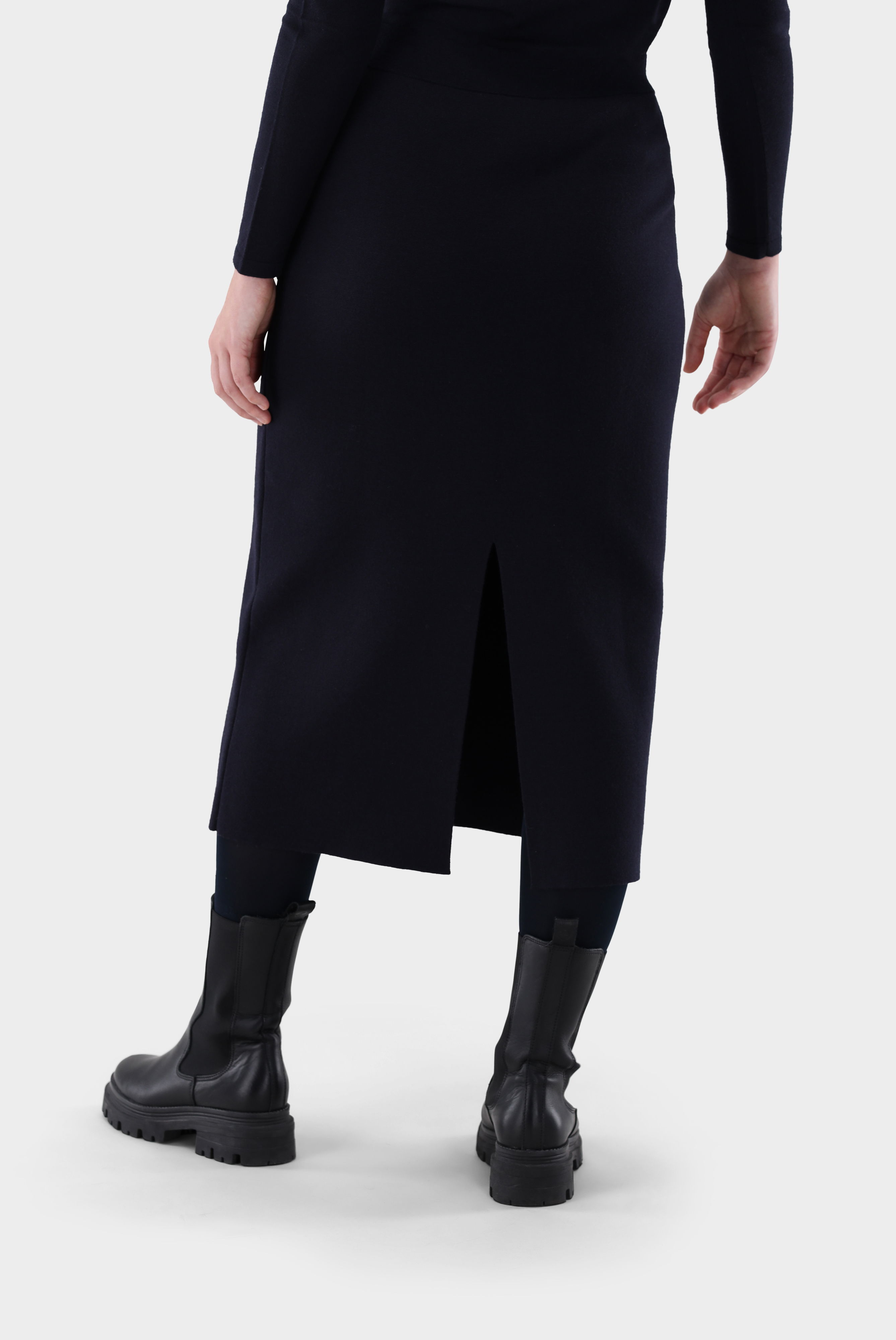 Der Slim Fit Strick Rock aus schlichtem Milano-Strick und ultra-feiner Merinowolle mit Stretchanteil ist ein elegantes und vielseitiges Kleidungsstück. Hergestellt aus hochwertiger Merinowolle, bietet dieser Rock eine schmeichelhafte Passform und hervorragenden Tragekomfort. Der Rückenschlitz sorgt für zusätzliche Bewegungsfreiheit und verleiht dem Design eine raffinierte Note. Perfekt für formelle Anlässe oder stilvolle Alltagslooks, ist dieser Bleistiftrock ein unverzichtbares Basic in jeder Garderobe.