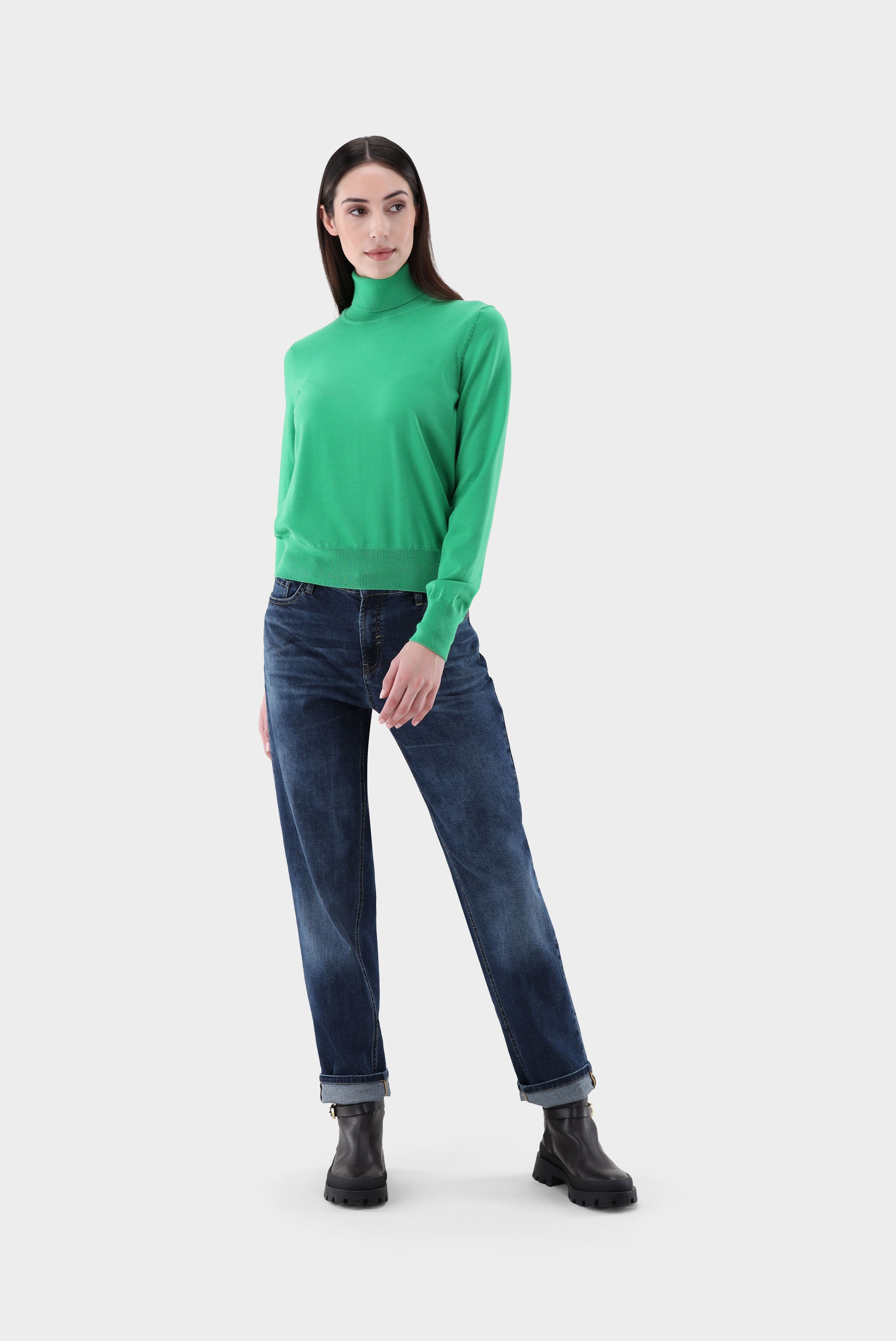 Look aus Rollkragenpullover aus Merzerisierter Merinowolle