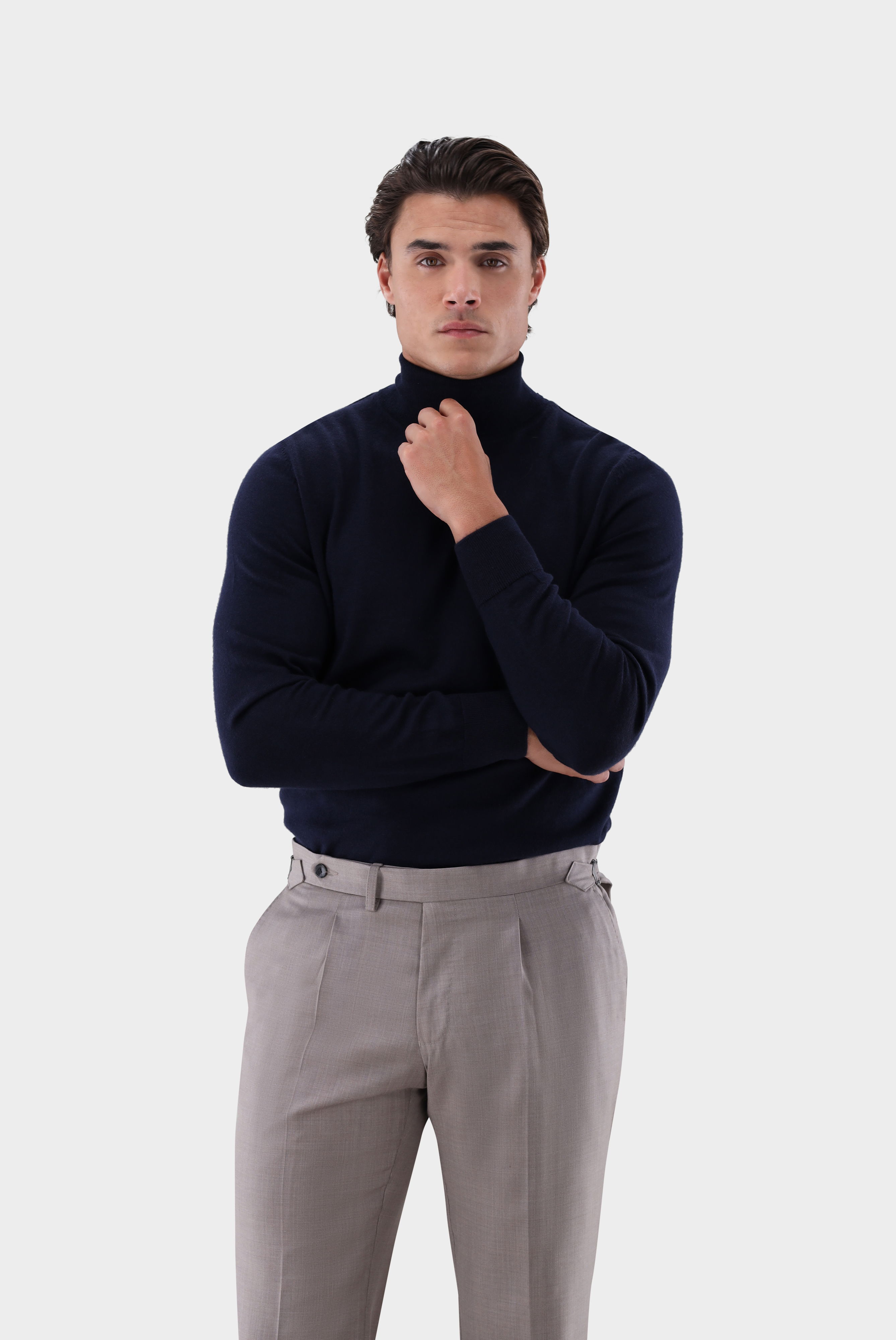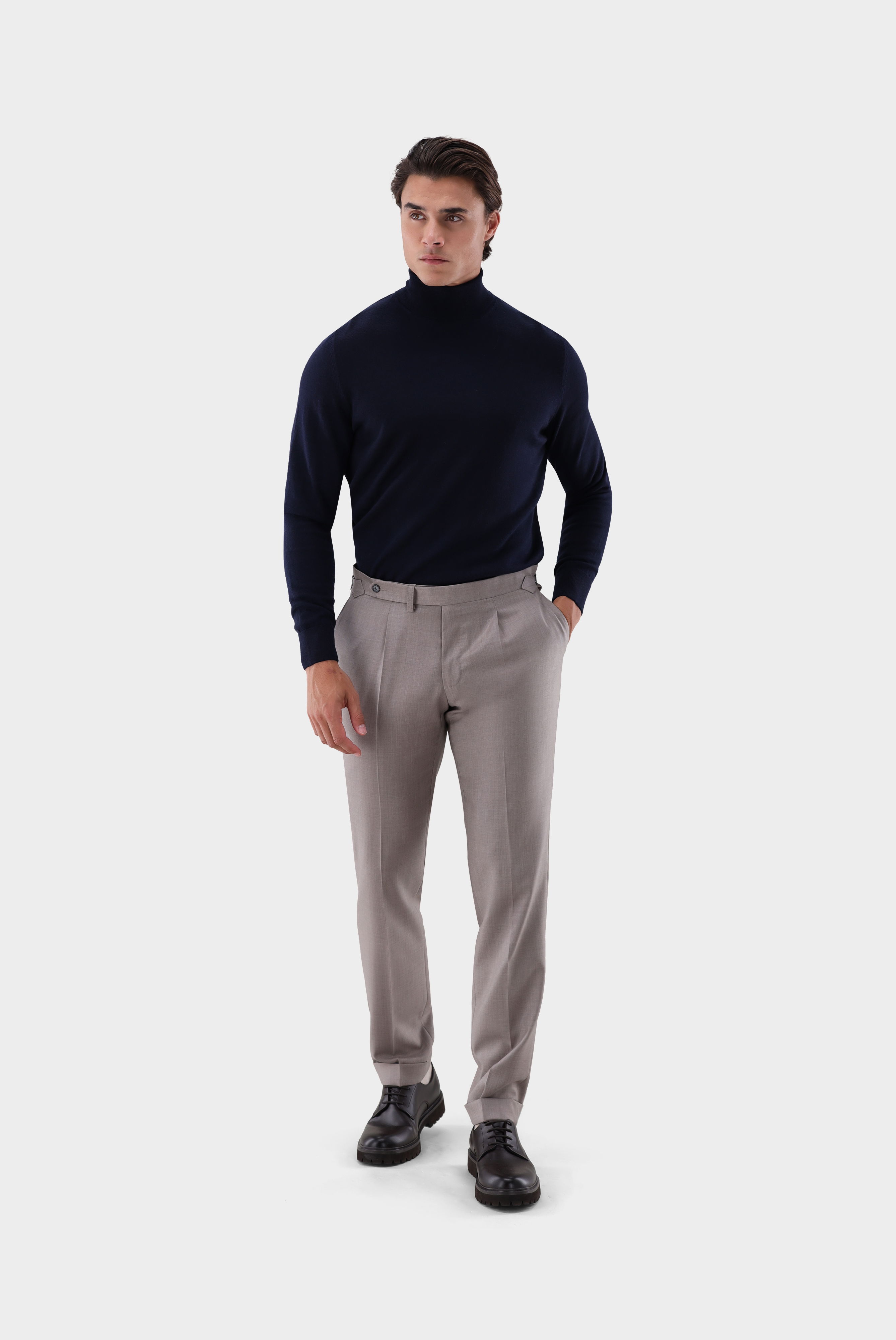 Look aus Rollkragenpullover aus Merzerisierter Merinowolle