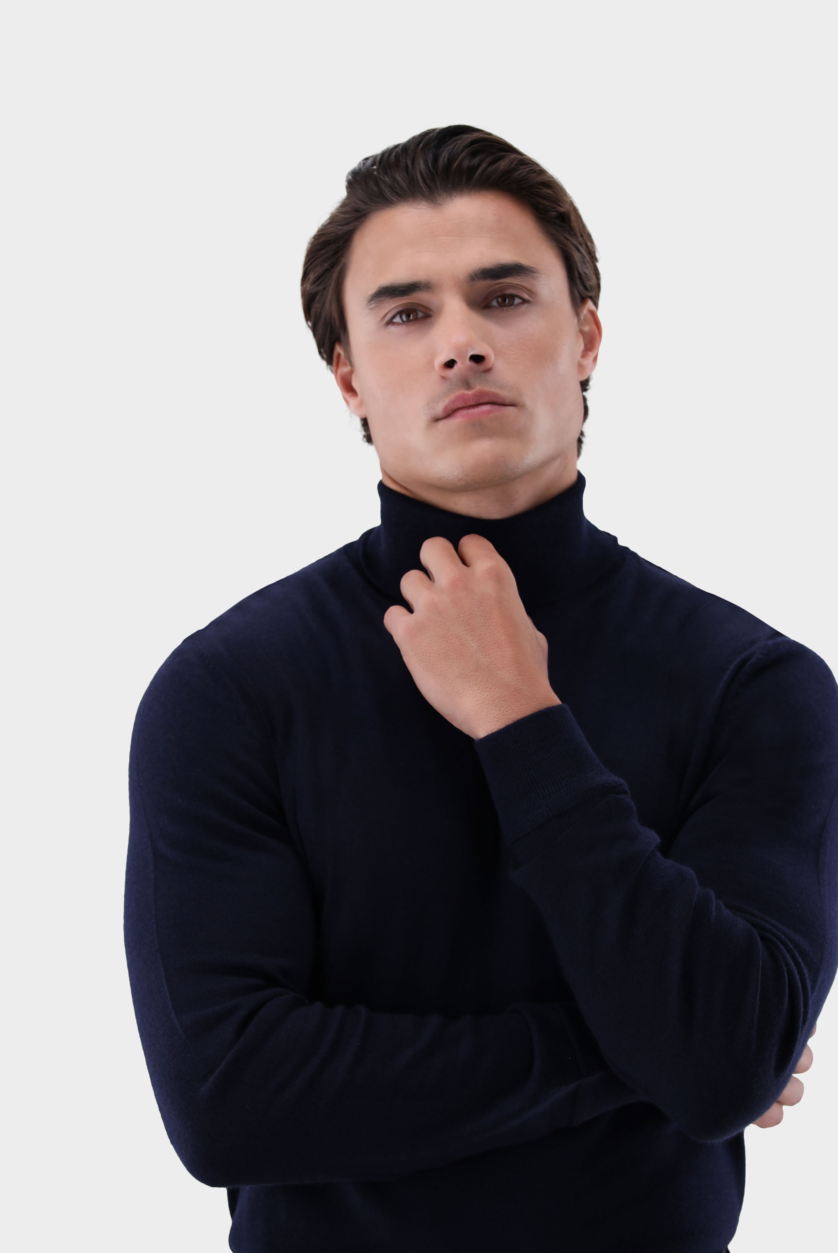 Look aus Rollkragenpullover aus Merzerisierter Merinowolle