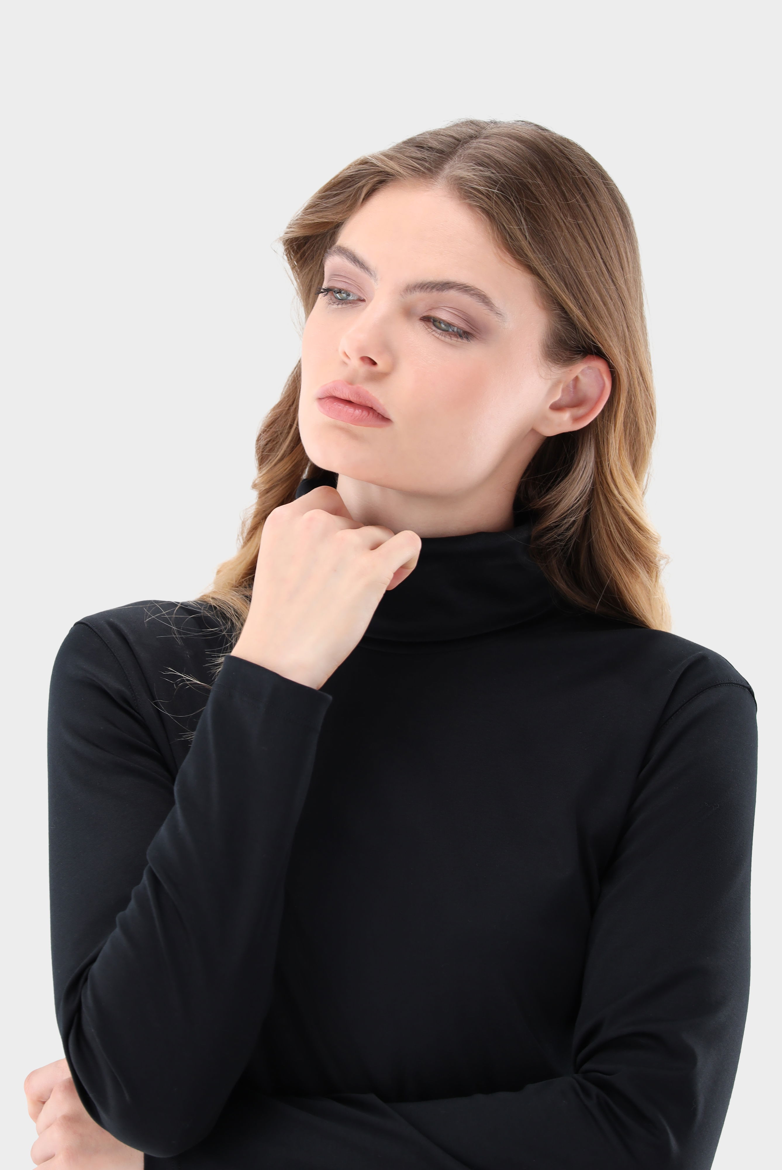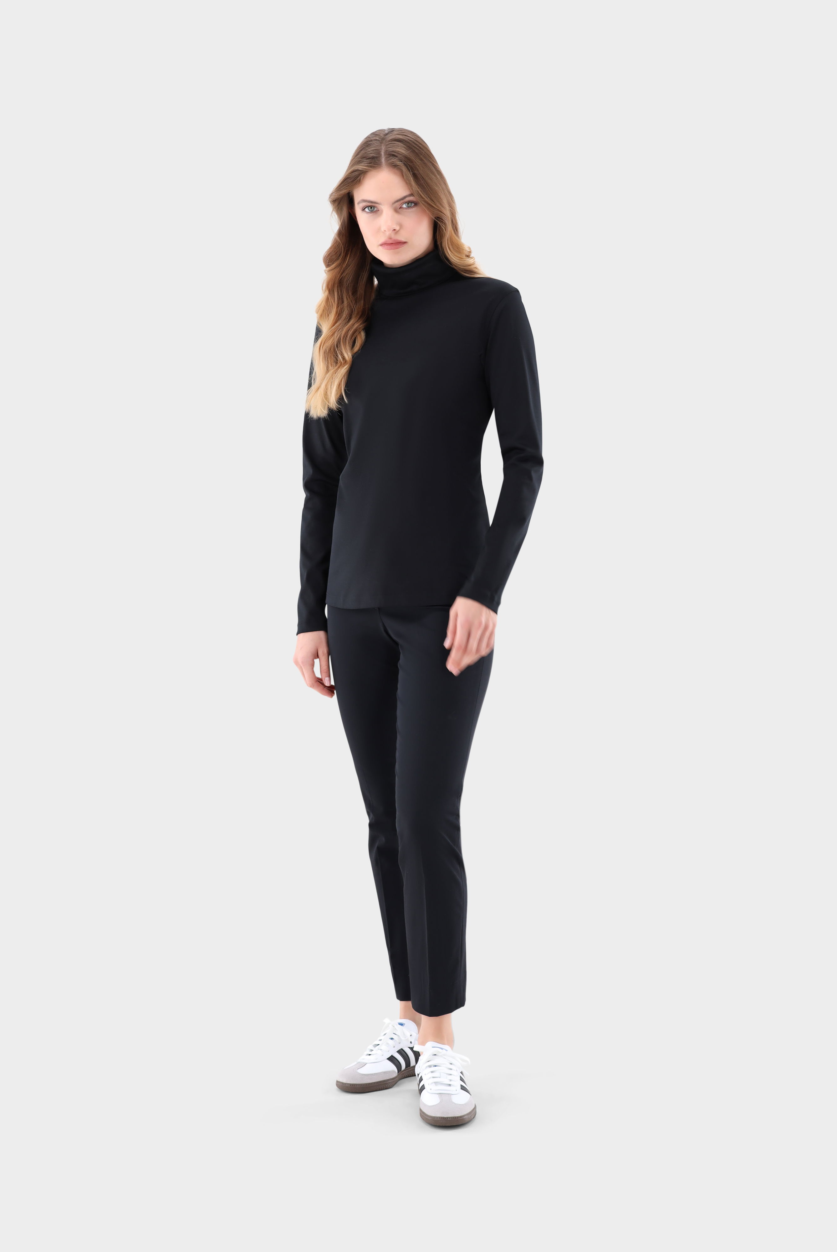 Look aus Rollkragenpullover aus Schweizer Baumwolljersey