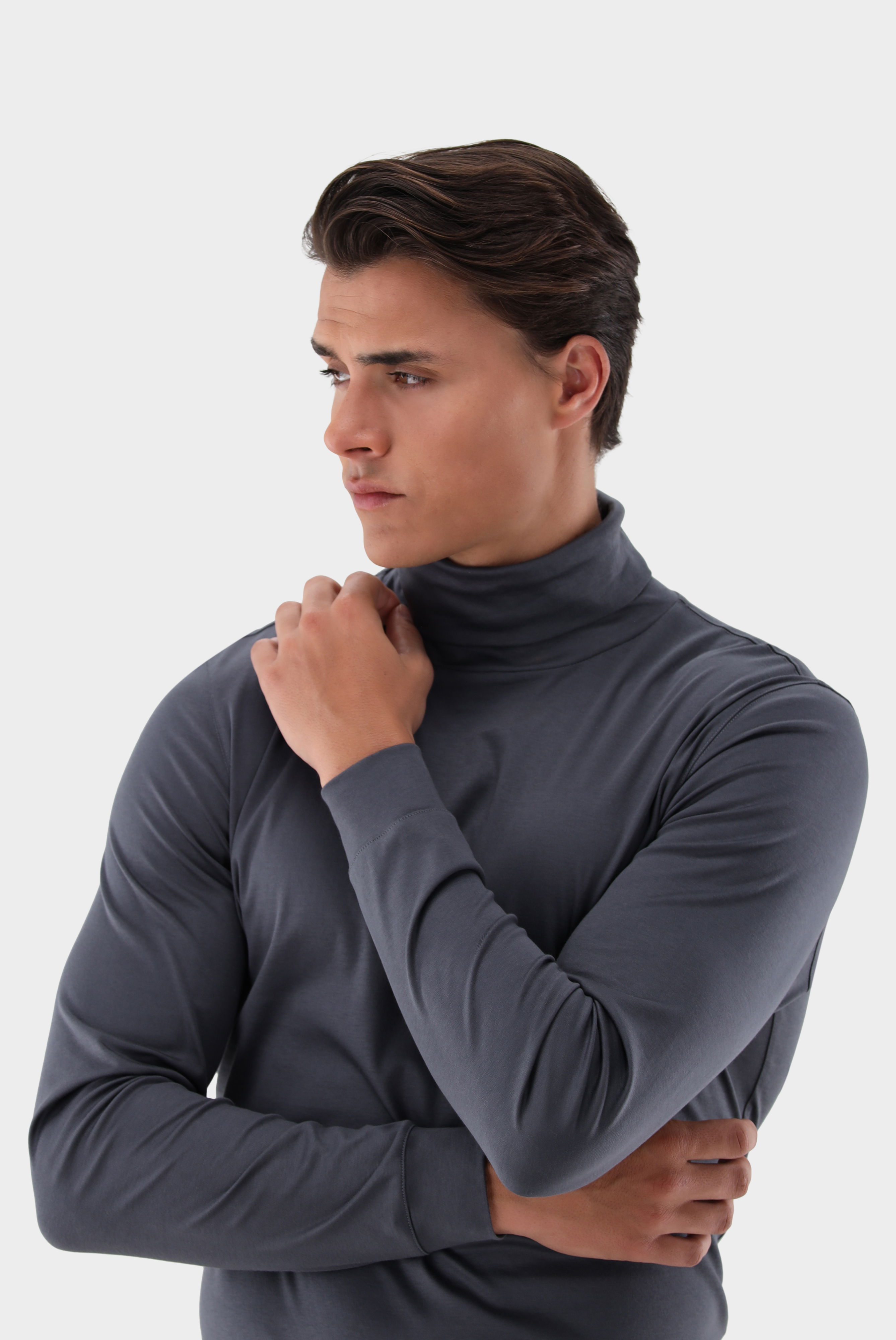 Der schlichte Swiss Cotton Meisterwerk Jersey Rollkragenpullover vereint hochwertigen, langstapeligen Schweizer Baumwollstoff mit einem schlichten Design. Dieser Pullover im Rollkragenstil ist ideal für einen smarten Casual-Look. Er zeichnet sich durch seine hochwertige Verarbeitung aus und bietet höchsten Tragekomfort. Perfekt geeignet für verschiedene Anlässe.
