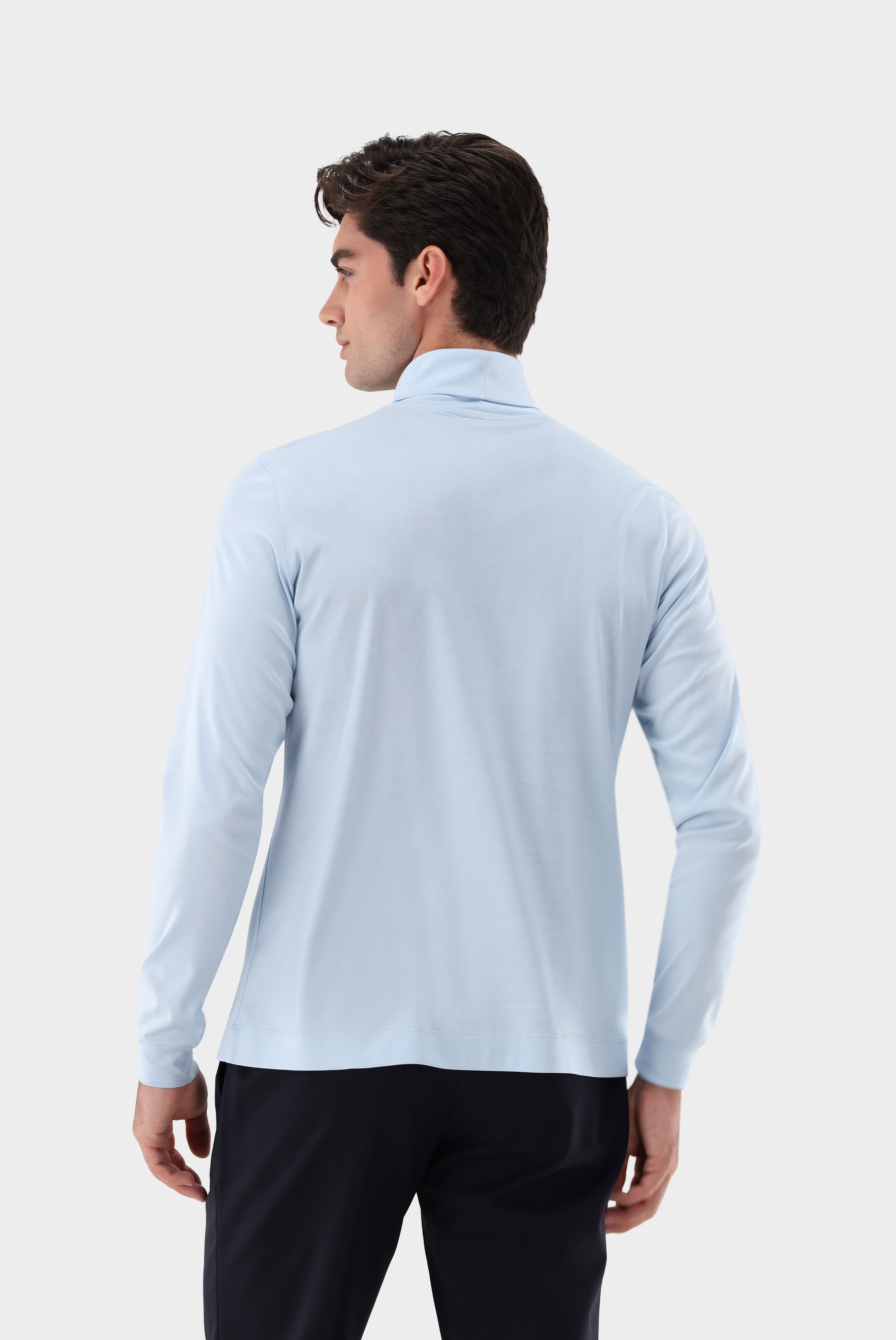 Rollkragenshirt aus Swiss Cotton Jersey. Die Swiss Cotton Jersey Qualität, gefertigt aus besonders hochwertigem und weichem Interlock-Jersey mit Natural-Stretch, sorgt für ein luxuriöses Tragegefühl. Die glänzende Optik verkörpert einen edlen Look.