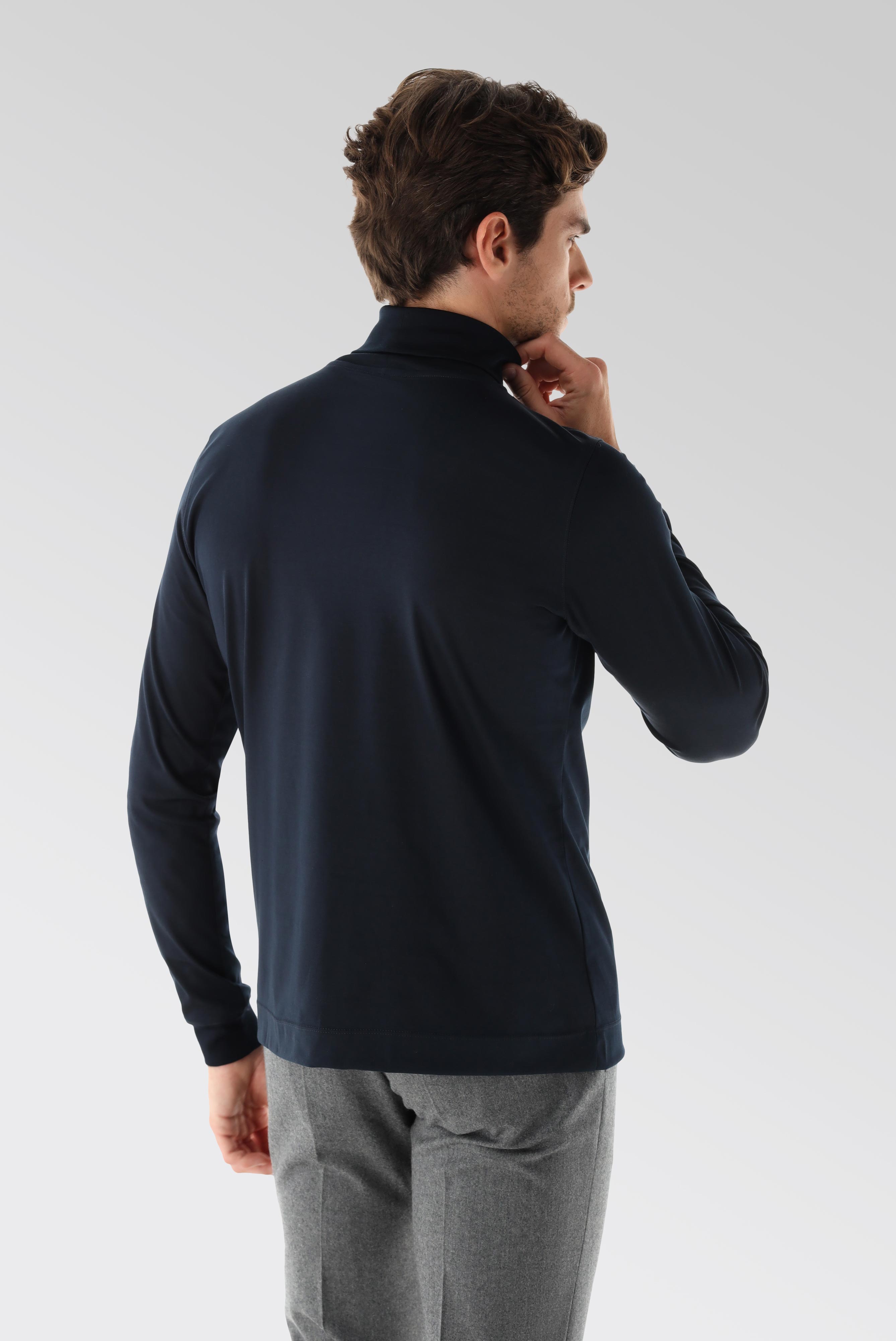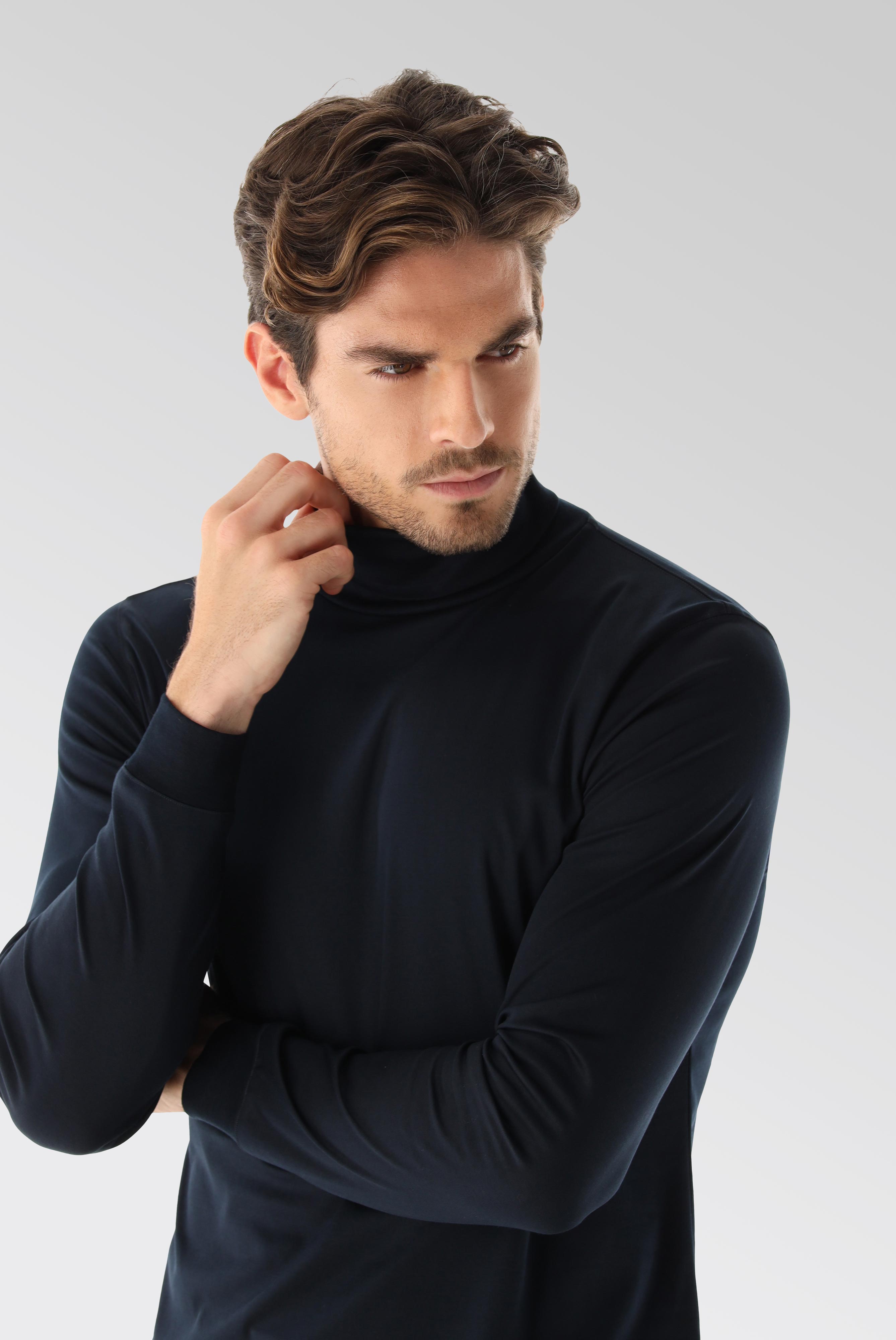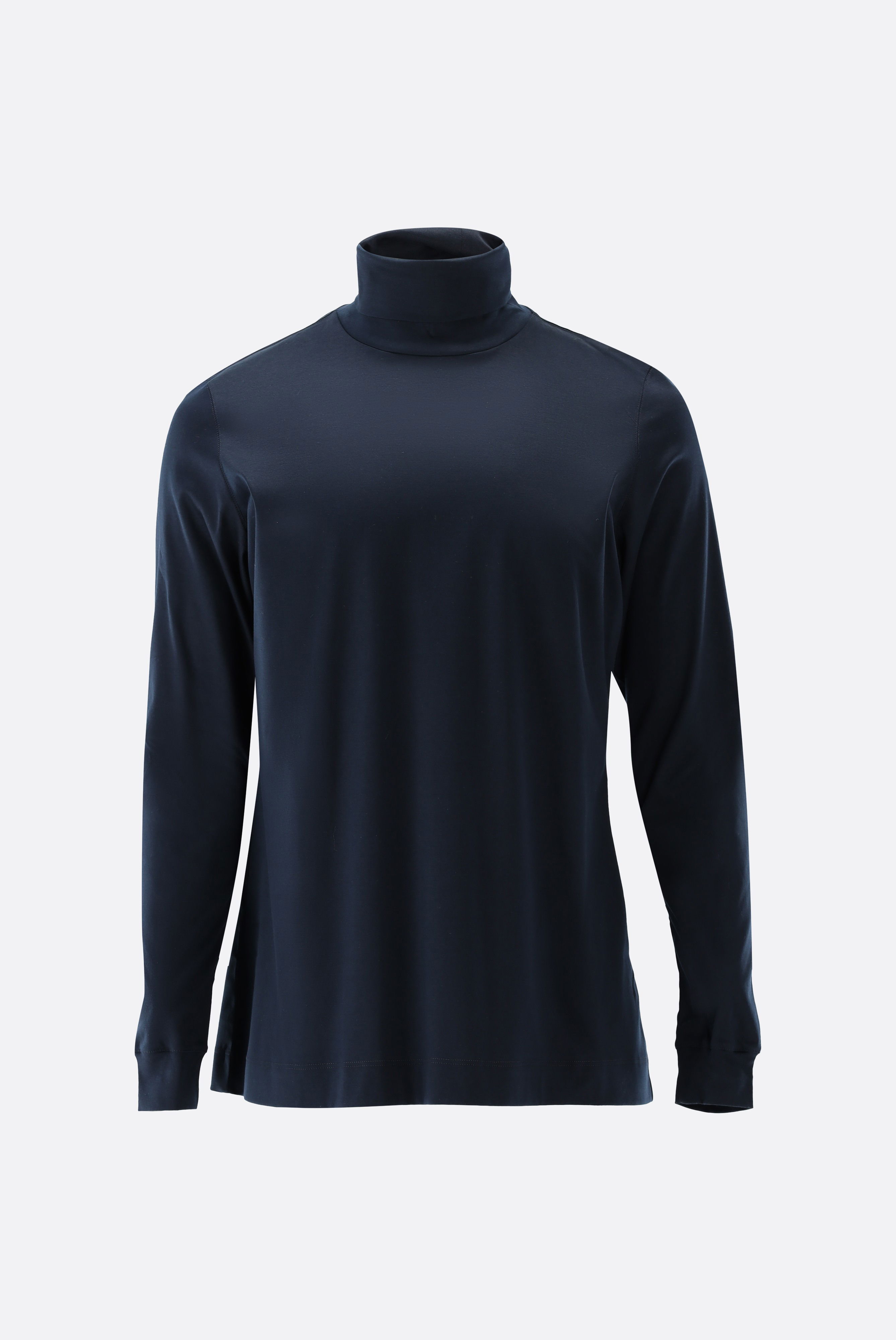 Rollkragenshirt aus Swiss Cotton Jersey. Die Swiss Cotton Jersey Qualität, gefertigt aus besonders hochwertigem und weichem Interlock-Jersey mit Natural-Stretch, sorgt für ein luxuriöses Tragegefühl. Die glänzende Optik verkörpert einen edlen Look.